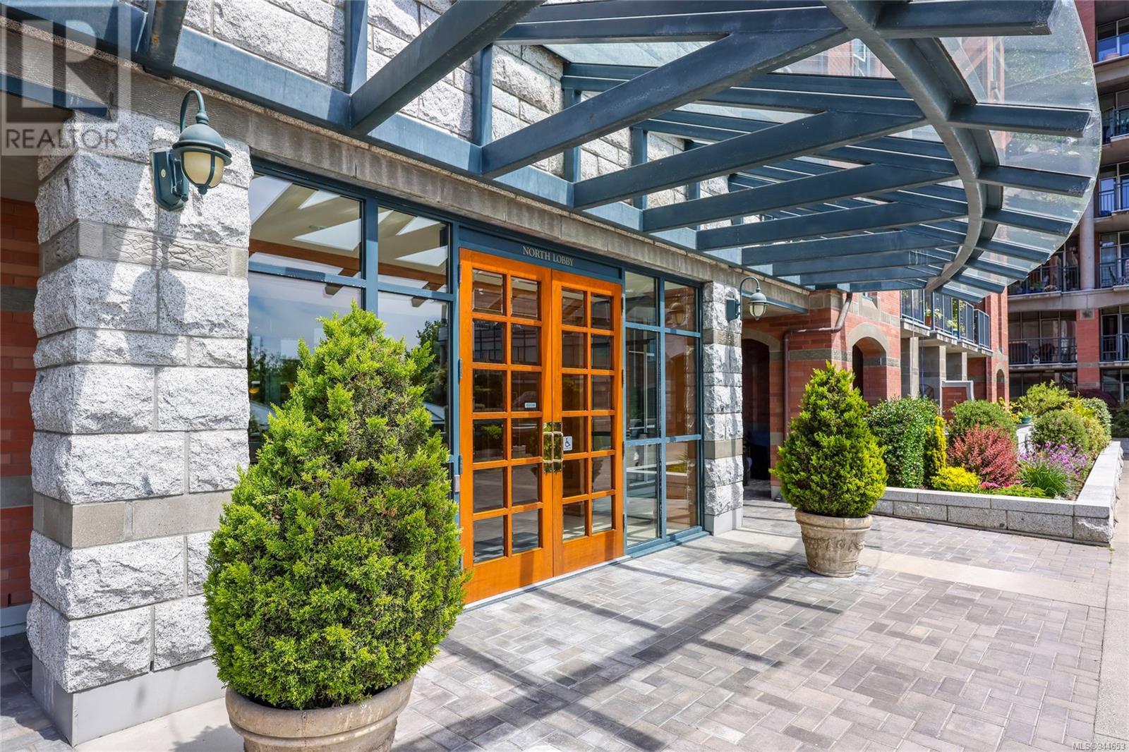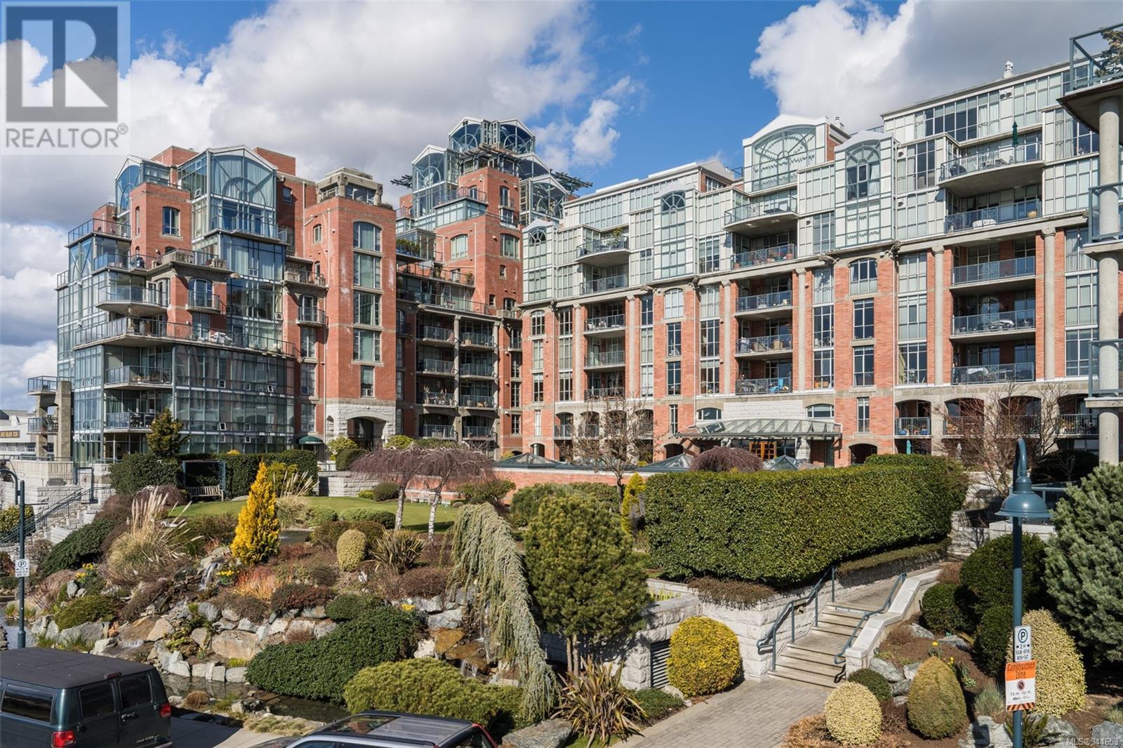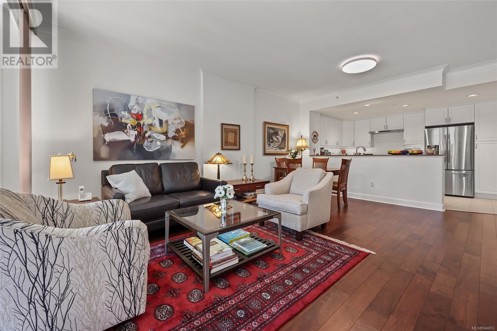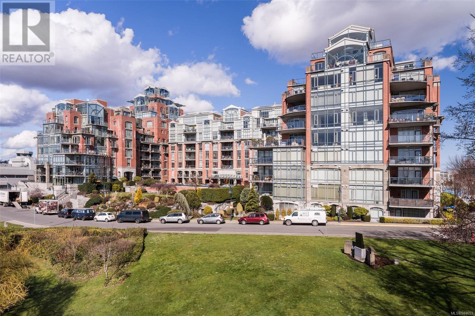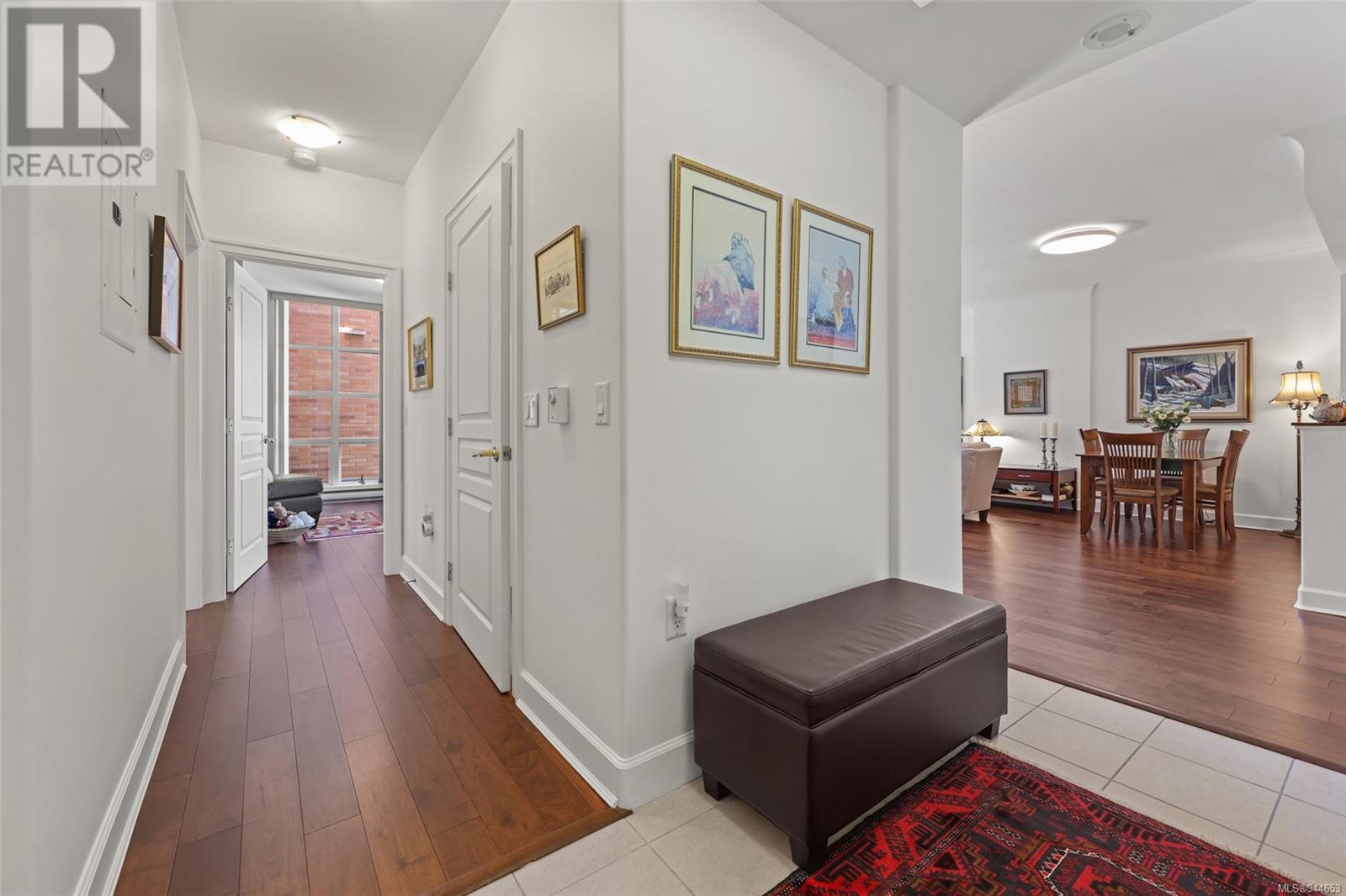 Welcome to this 2-bed plus den condo, offering a coastal urban lifestyle with glimpses of the ocean & mountains. With over 1200sqft of living space, this customized condo is well-suited for senior living with live-in assistance & designed with accessibility in mind. This unit features extra-wide doors & unique sliding doors onto the balcony, providing ease of movement, a parking space & separate storage conveniently located close to points of entries. Recent updates to both bathrooms, fresh paint, new carpet, high-end engineered hardwood flooring throughout & newer appliances have been installed within the last two years. The in-suite storage has been updated into a small office space for added functionality. As a resident, you'll have access to numerous luxury amenities, including concierge services, fitness facilities, an outdoor putting green, an indoor pool/sauna & more! You are steps from Fisherman's Wharf, Dallas Rd waterfront trail & everything downtown Victoria has to offer! (id:22211)