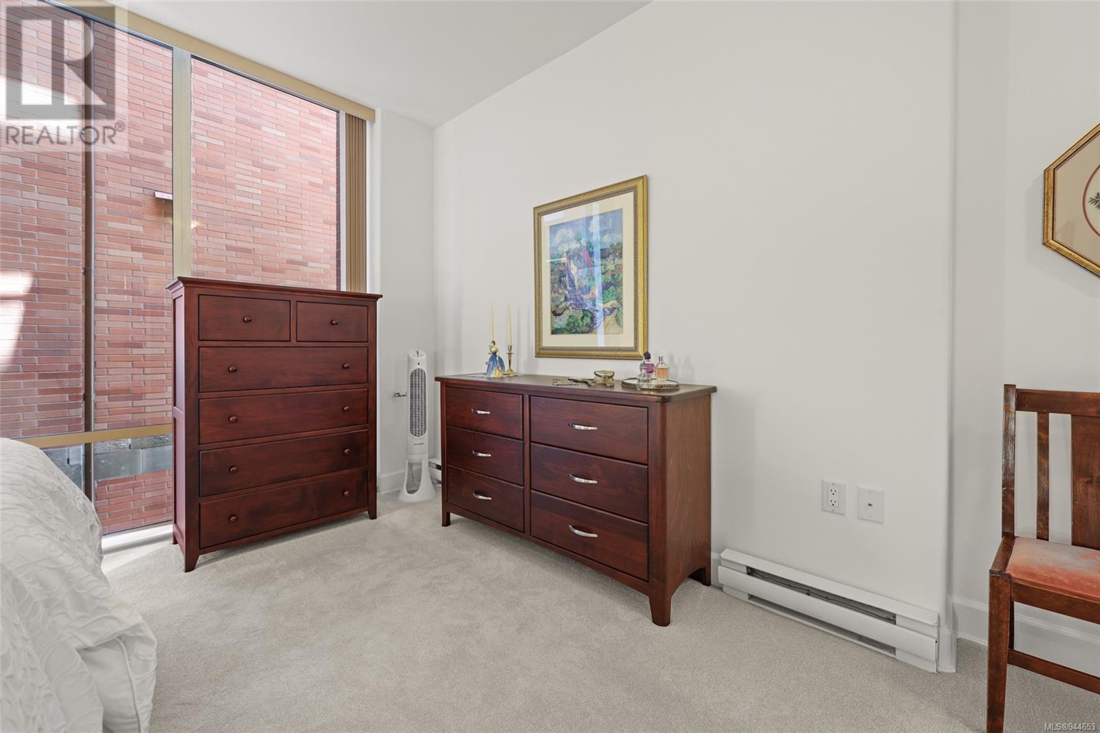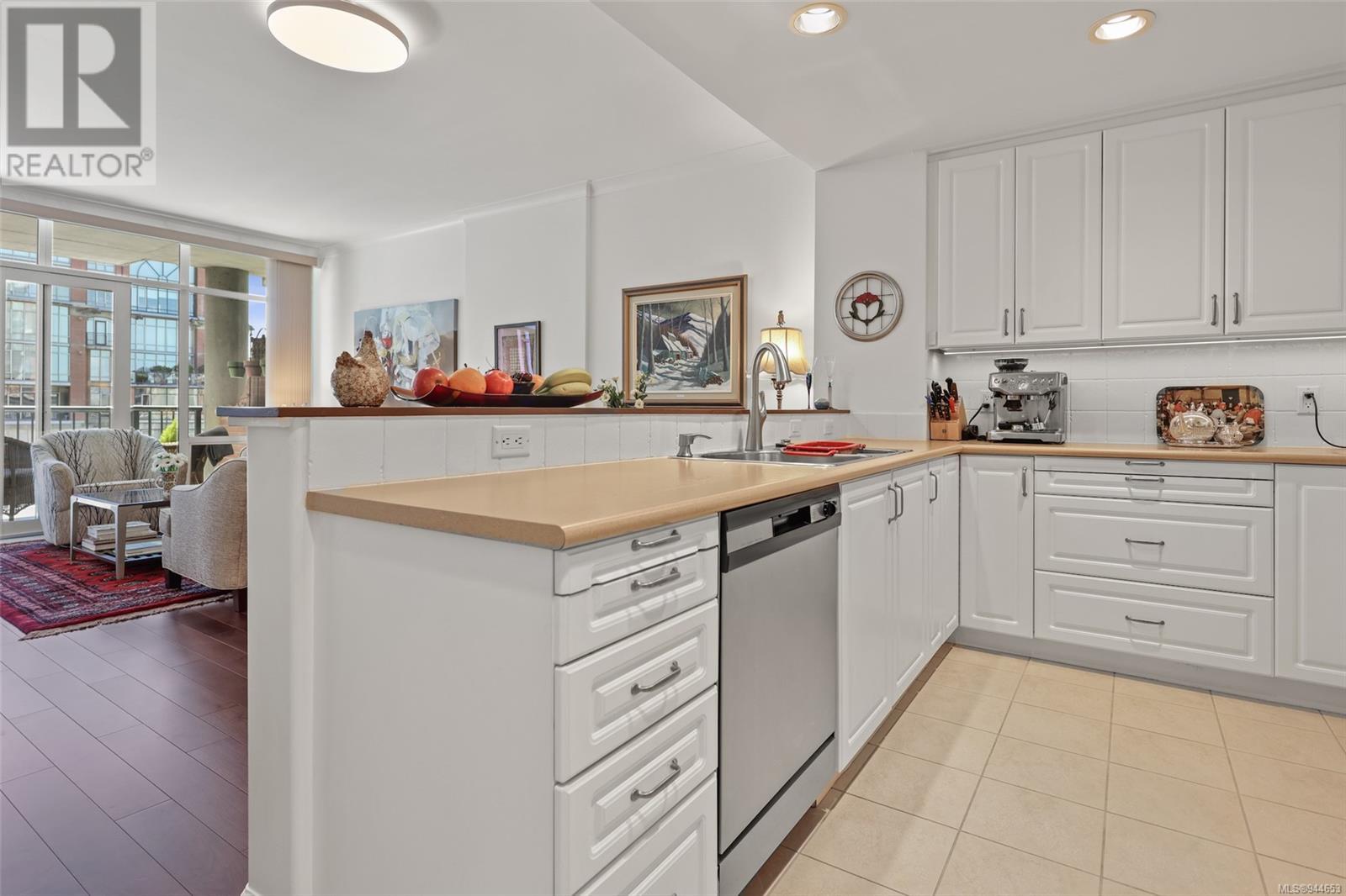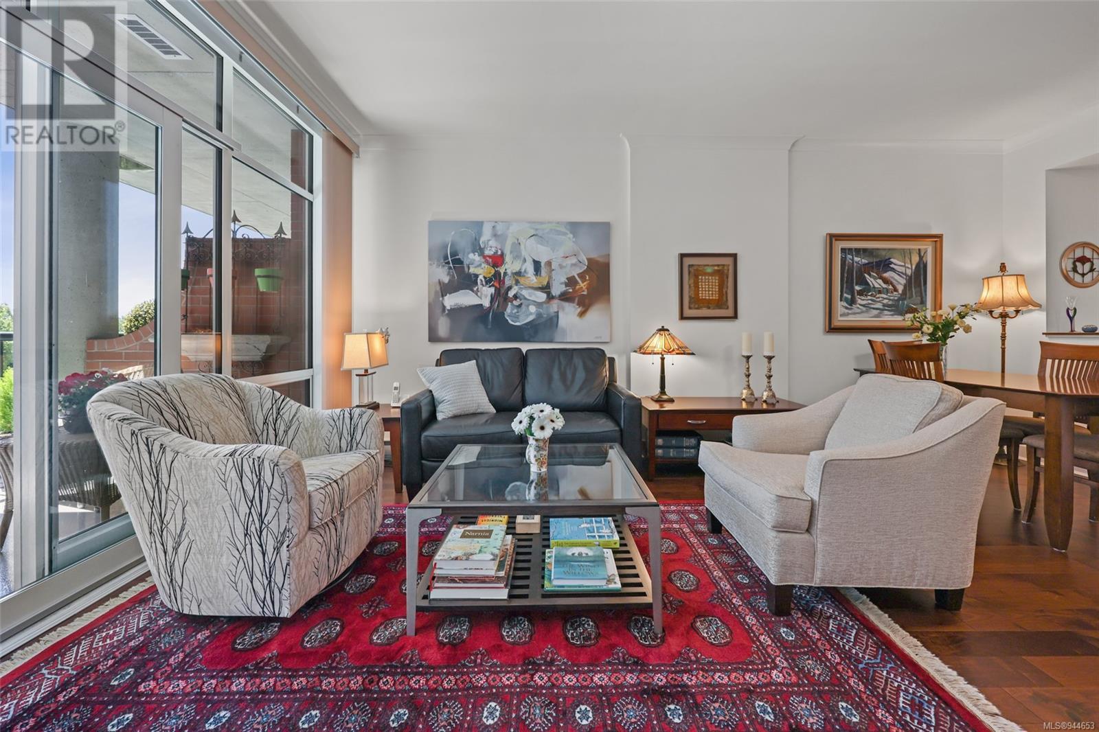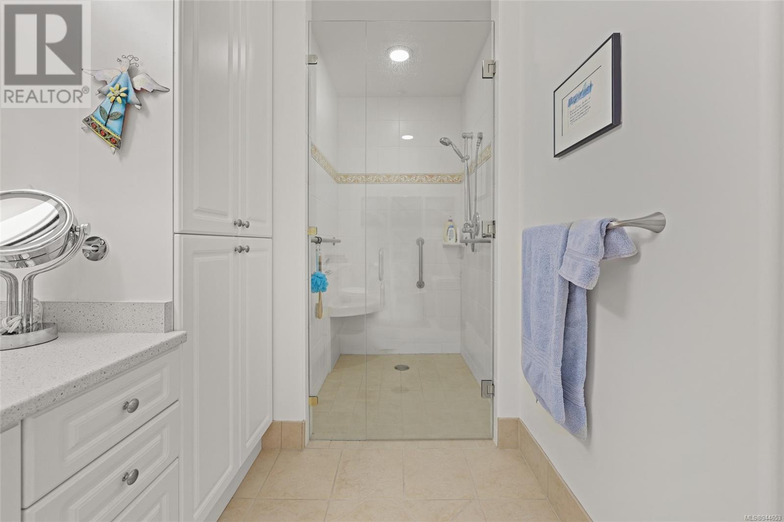 Welcome to this 2-bed plus den condo, offering a coastal urban lifestyle with glimpses of the ocean & mountains. With over 1200sqft of living space, this customized condo is well-suited for senior living with live-in assistance & designed with accessibility in mind. This unit features extra-wide doors & unique sliding doors onto the balcony, providing ease of movement, a parking space & separate storage conveniently located close to points of entries. Recent updates to both bathrooms, fresh paint, new carpet, high-end engineered hardwood flooring throughout & newer appliances have been installed within the last two years. The in-suite storage has been updated into a small office space for added functionality. As a resident, you'll have access to numerous luxury amenities, including concierge services, fitness facilities, an outdoor putting green, an indoor pool/sauna & more! You are steps from Fisherman's Wharf, Dallas Rd waterfront trail & everything downtown Victoria has to offer! (id:22211)