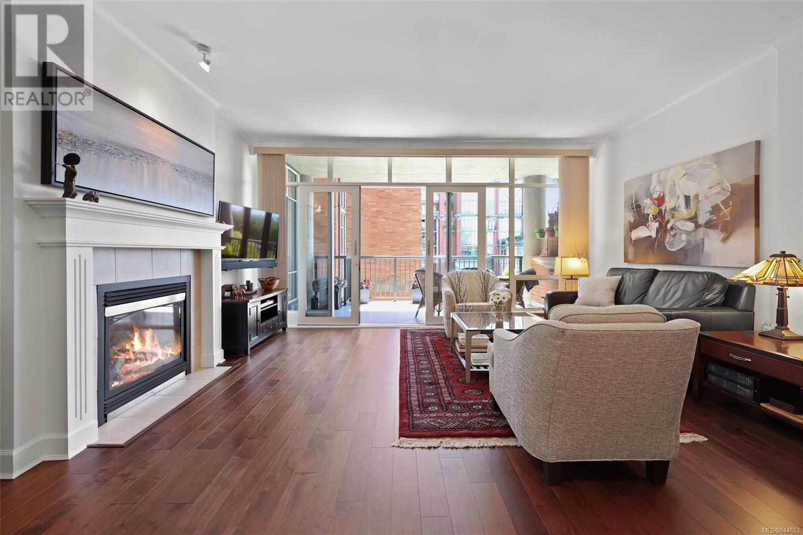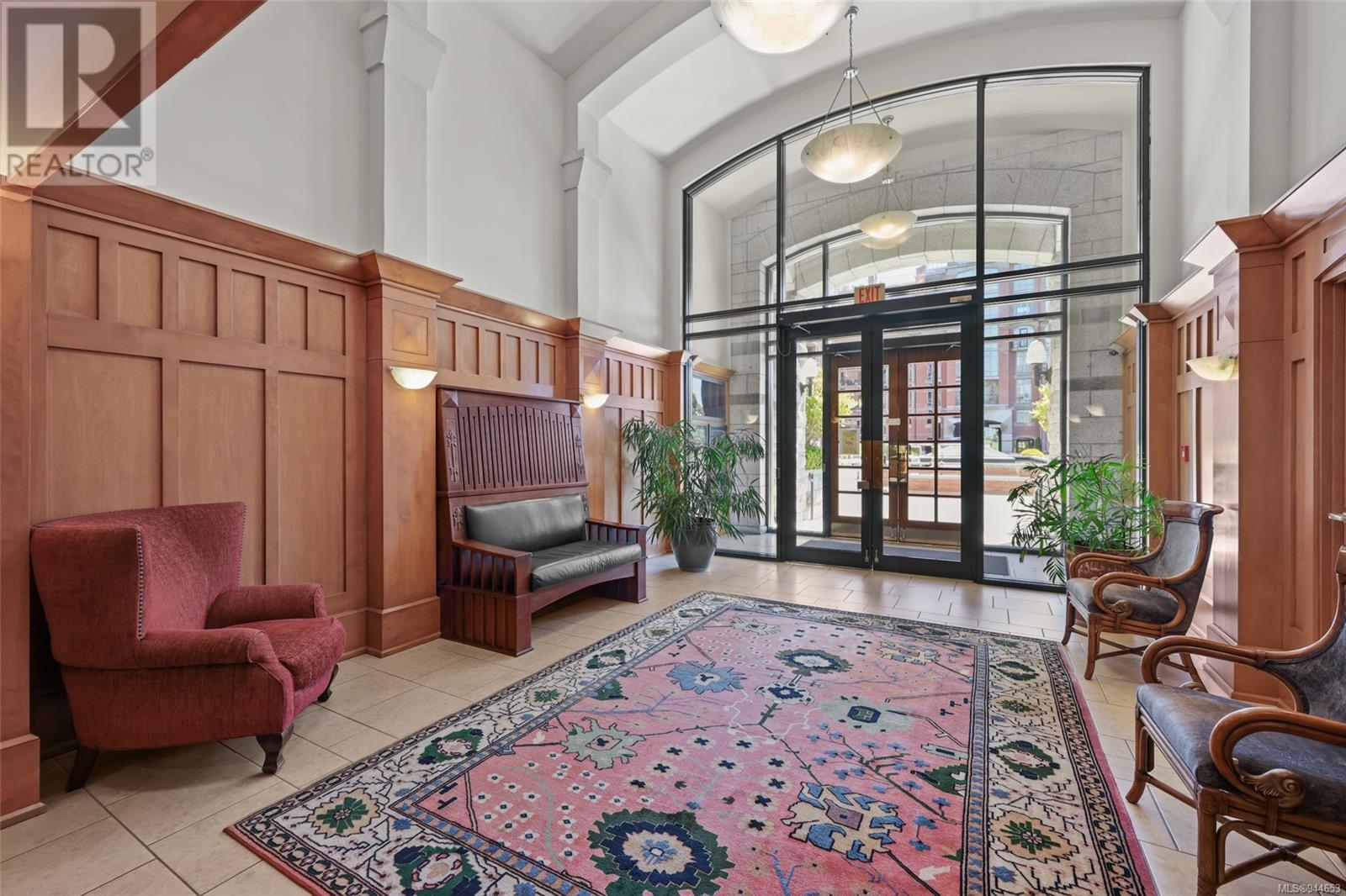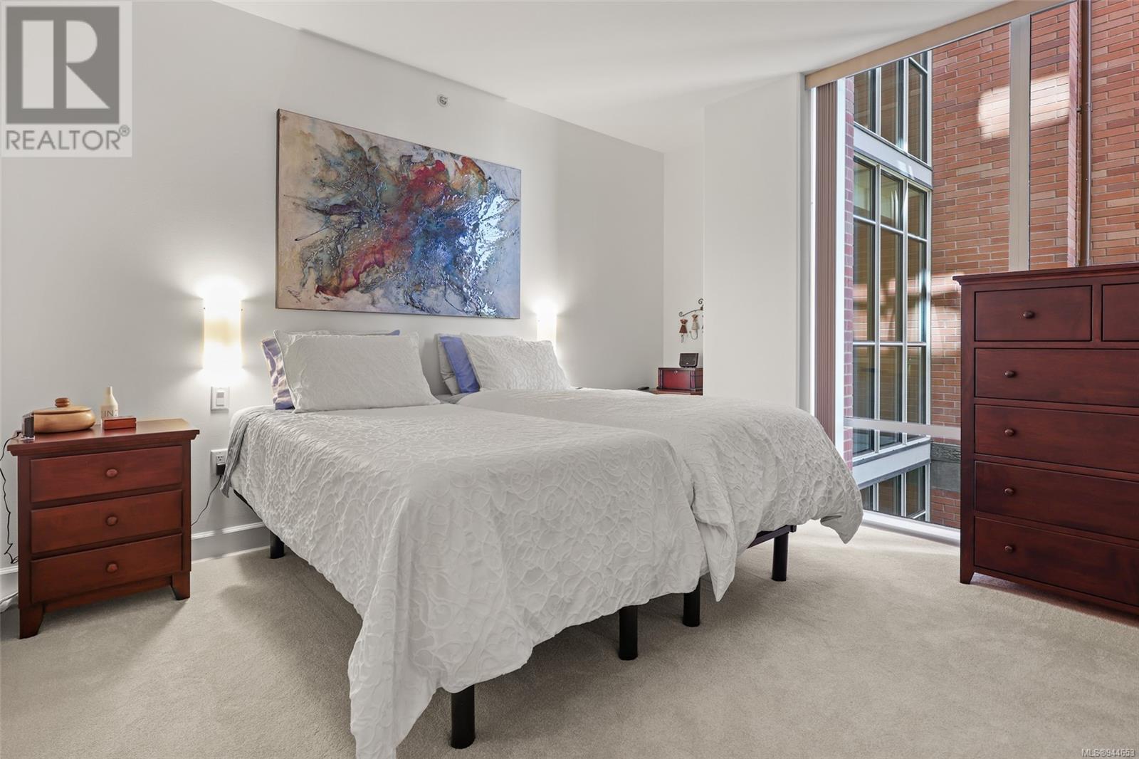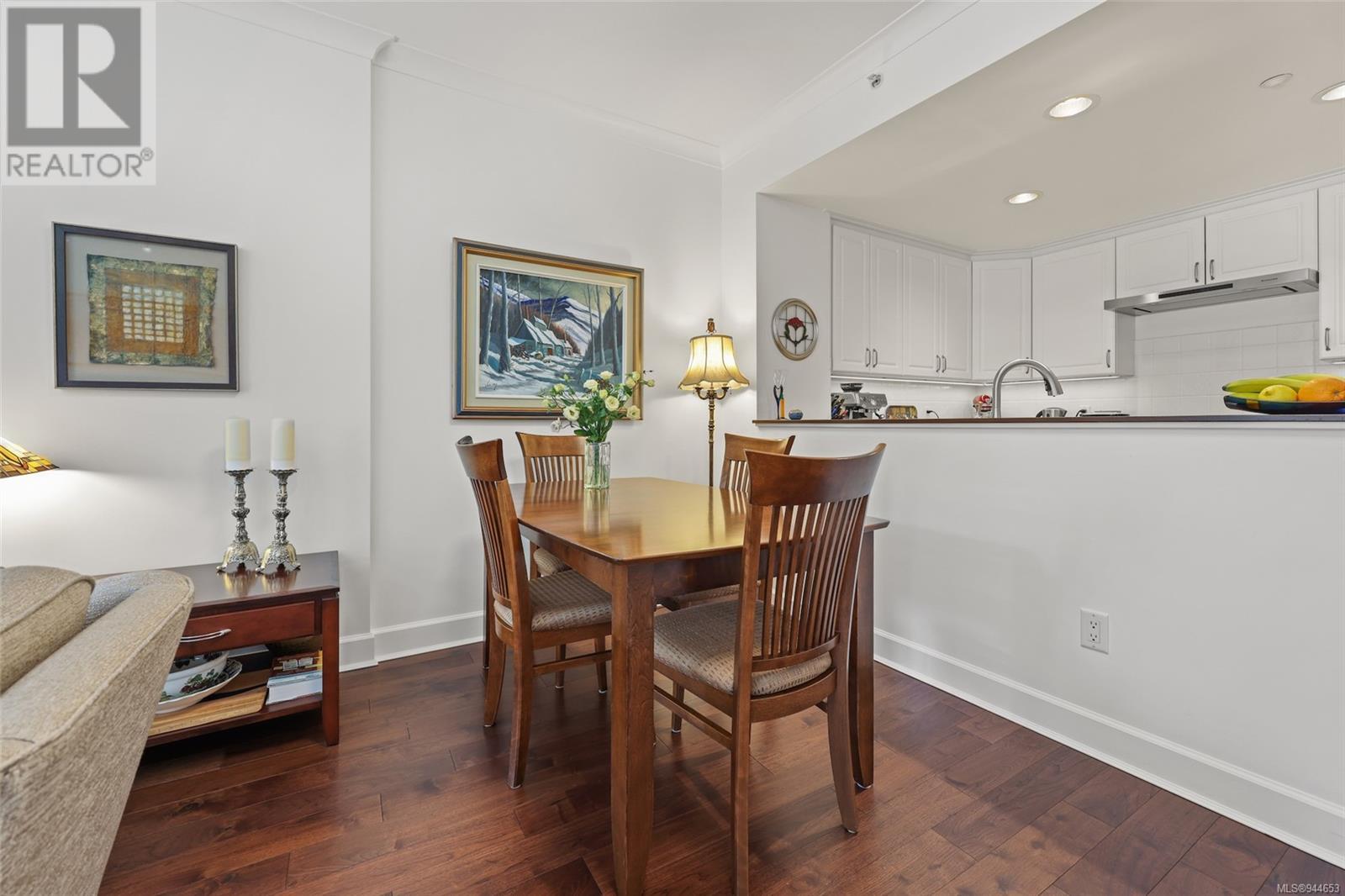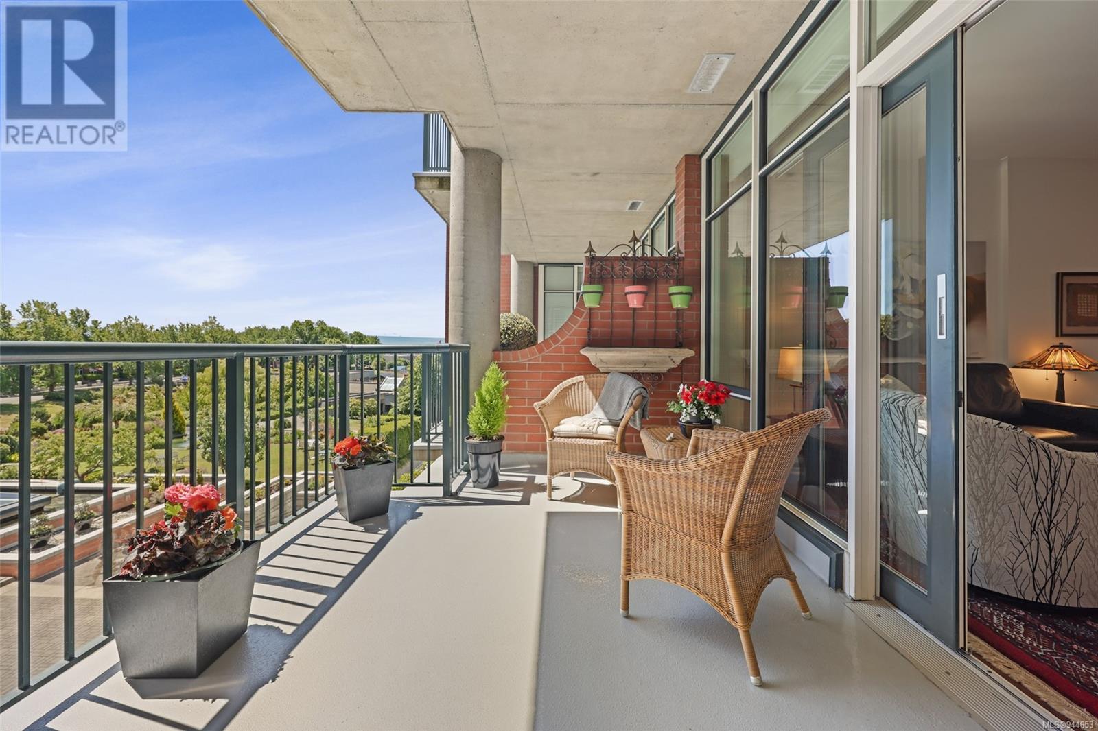 Welcome to this 2-bed plus den condo, offering a coastal urban lifestyle with glimpses of the ocean & mountains. With over 1200sqft of living space, this customized condo is well-suited for senior living with live-in assistance & designed with accessibility in mind. This unit features extra-wide doors & unique sliding doors onto the balcony, providing ease of movement, a parking space & separate storage conveniently located close to points of entries. Recent updates to both bathrooms, fresh paint, new carpet, high-end engineered hardwood flooring throughout & newer appliances have been installed within the last two years. The in-suite storage has been updated into a small office space for added functionality. As a resident, you'll have access to numerous luxury amenities, including concierge services, fitness facilities, an outdoor putting green, an indoor pool/sauna & more! You are steps from Fisherman's Wharf, Dallas Rd waterfront trail & everything downtown Victoria has to offer! (id:22211)