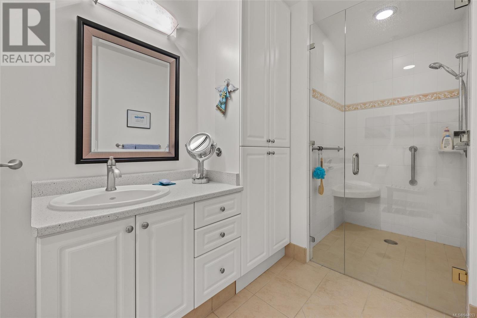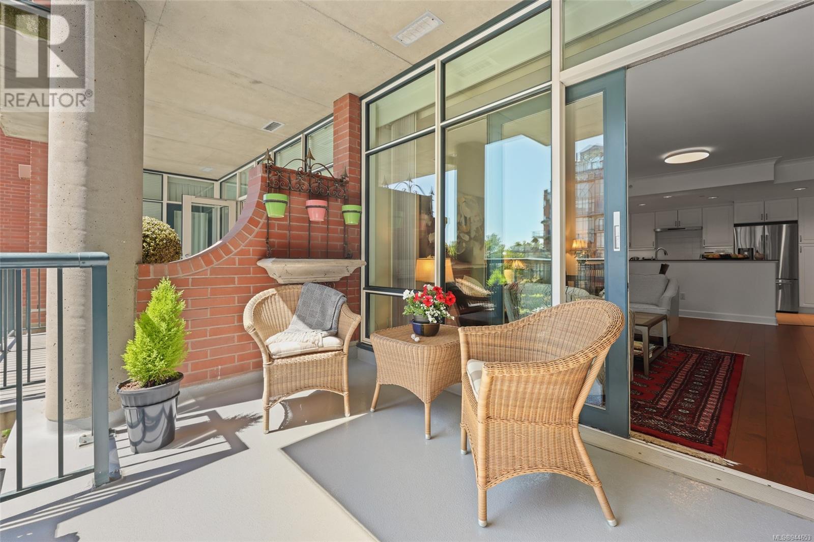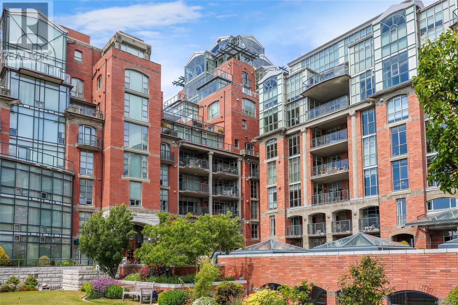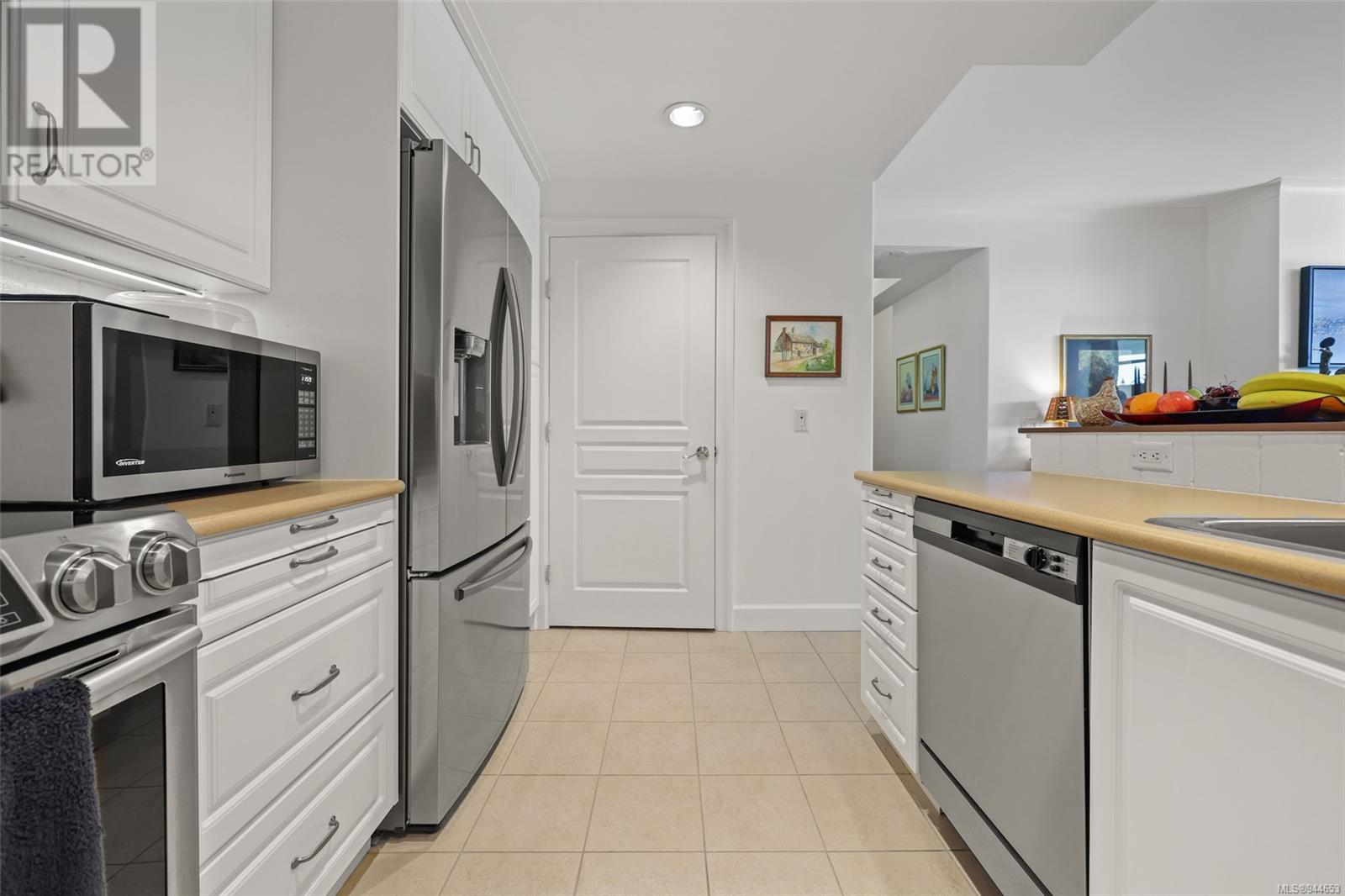 Welcome to this 2-bed plus den condo, offering a coastal urban lifestyle with glimpses of the ocean & mountains. With over 1200sqft of living space, this customized condo is well-suited for senior living with live-in assistance & designed with accessibility in mind. This unit features extra-wide doors & unique sliding doors onto the balcony, providing ease of movement, a parking space & separate storage conveniently located close to points of entries. Recent updates to both bathrooms, fresh paint, new carpet, high-end engineered hardwood flooring throughout & newer appliances have been installed within the last two years. The in-suite storage has been updated into a small office space for added functionality. As a resident, you'll have access to numerous luxury amenities, including concierge services, fitness facilities, an outdoor putting green, an indoor pool/sauna & more! You are steps from Fisherman's Wharf, Dallas Rd waterfront trail & everything downtown Victoria has to offer! (id:22211)