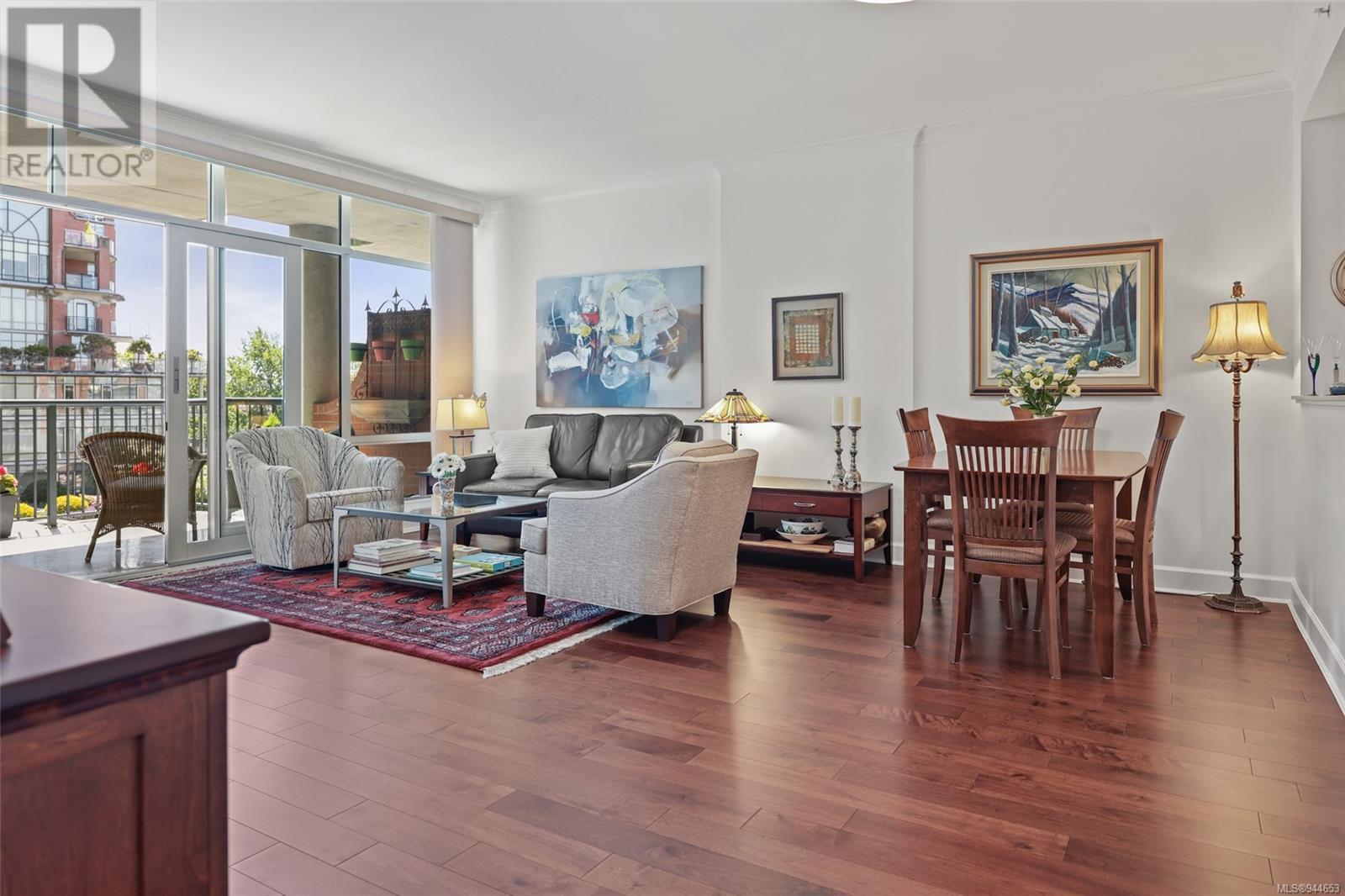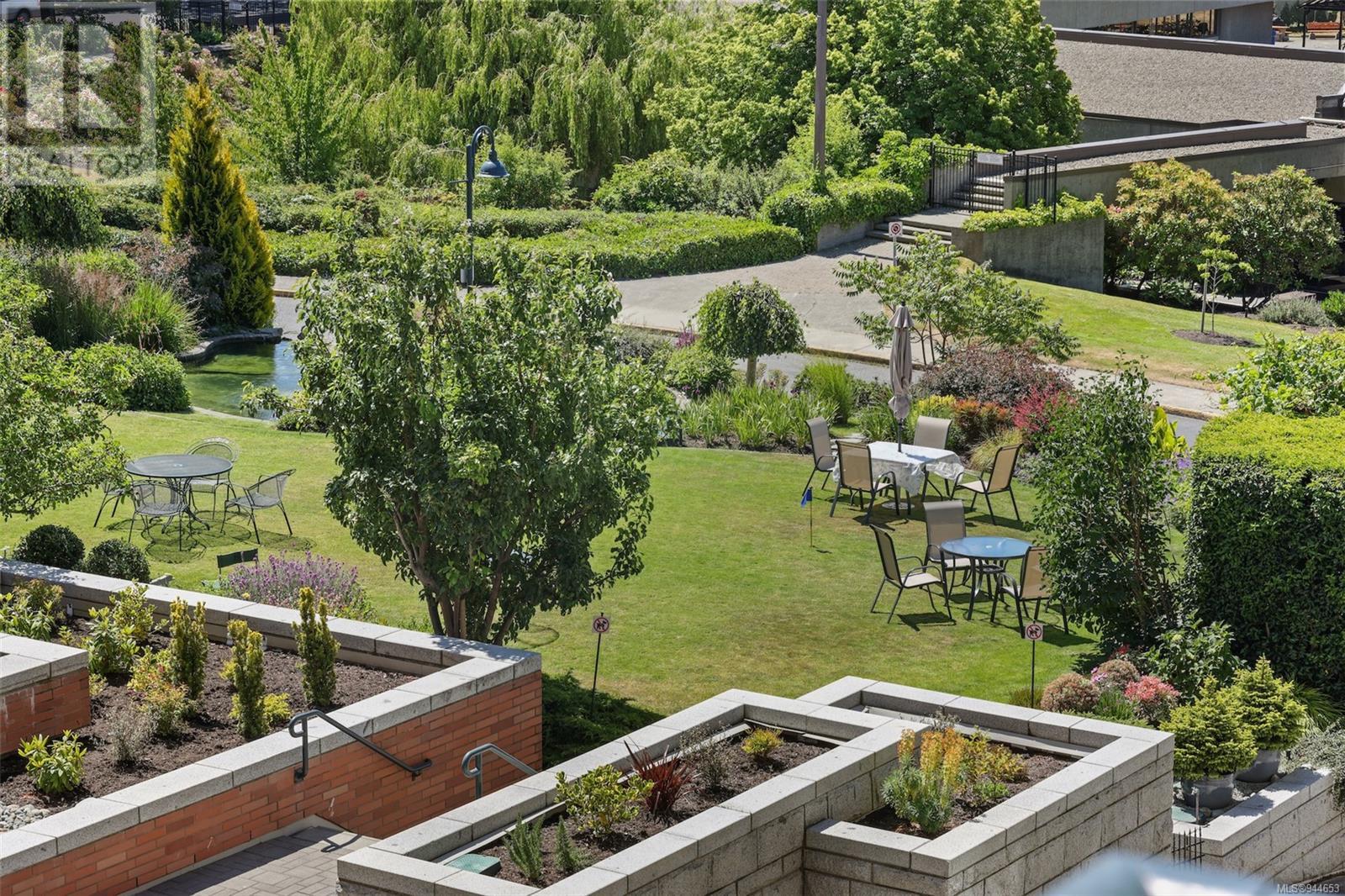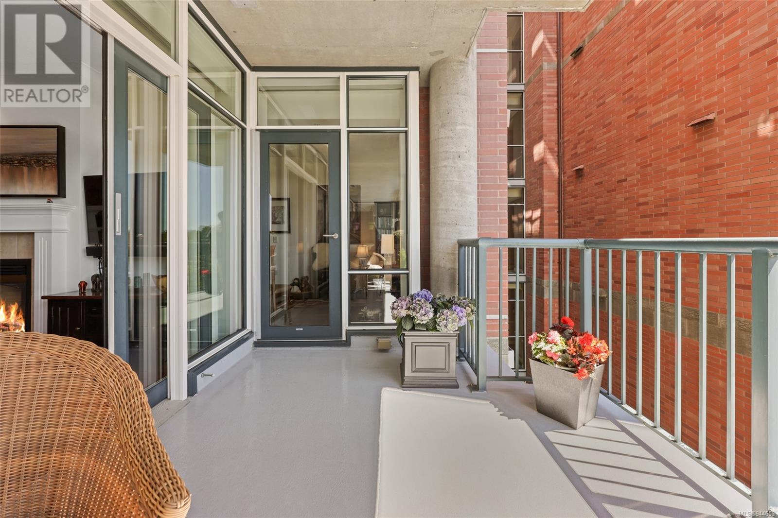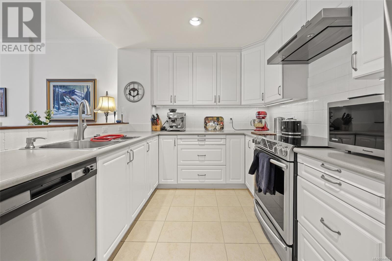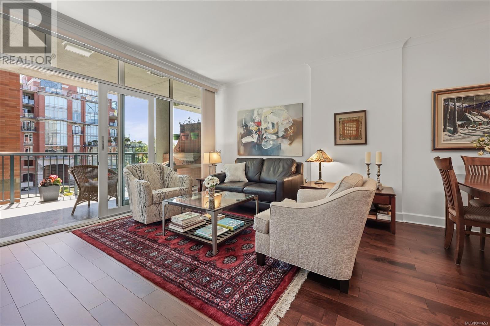 Welcome to this 2-bed plus den condo, offering a coastal urban lifestyle with glimpses of the ocean & mountains. With over 1200sqft of living space, this customized condo is well-suited for senior living with live-in assistance & designed with accessibility in mind. This unit features extra-wide doors & unique sliding doors onto the balcony, providing ease of movement, a parking space & separate storage conveniently located close to points of entries. Recent updates to both bathrooms, fresh paint, new carpet, high-end engineered hardwood flooring throughout & newer appliances have been installed within the last two years. The in-suite storage has been updated into a small office space for added functionality. As a resident, you'll have access to numerous luxury amenities, including concierge services, fitness facilities, an outdoor putting green, an indoor pool/sauna & more! You are steps from Fisherman's Wharf, Dallas Rd waterfront trail & everything downtown Victoria has to offer! (id:22211)