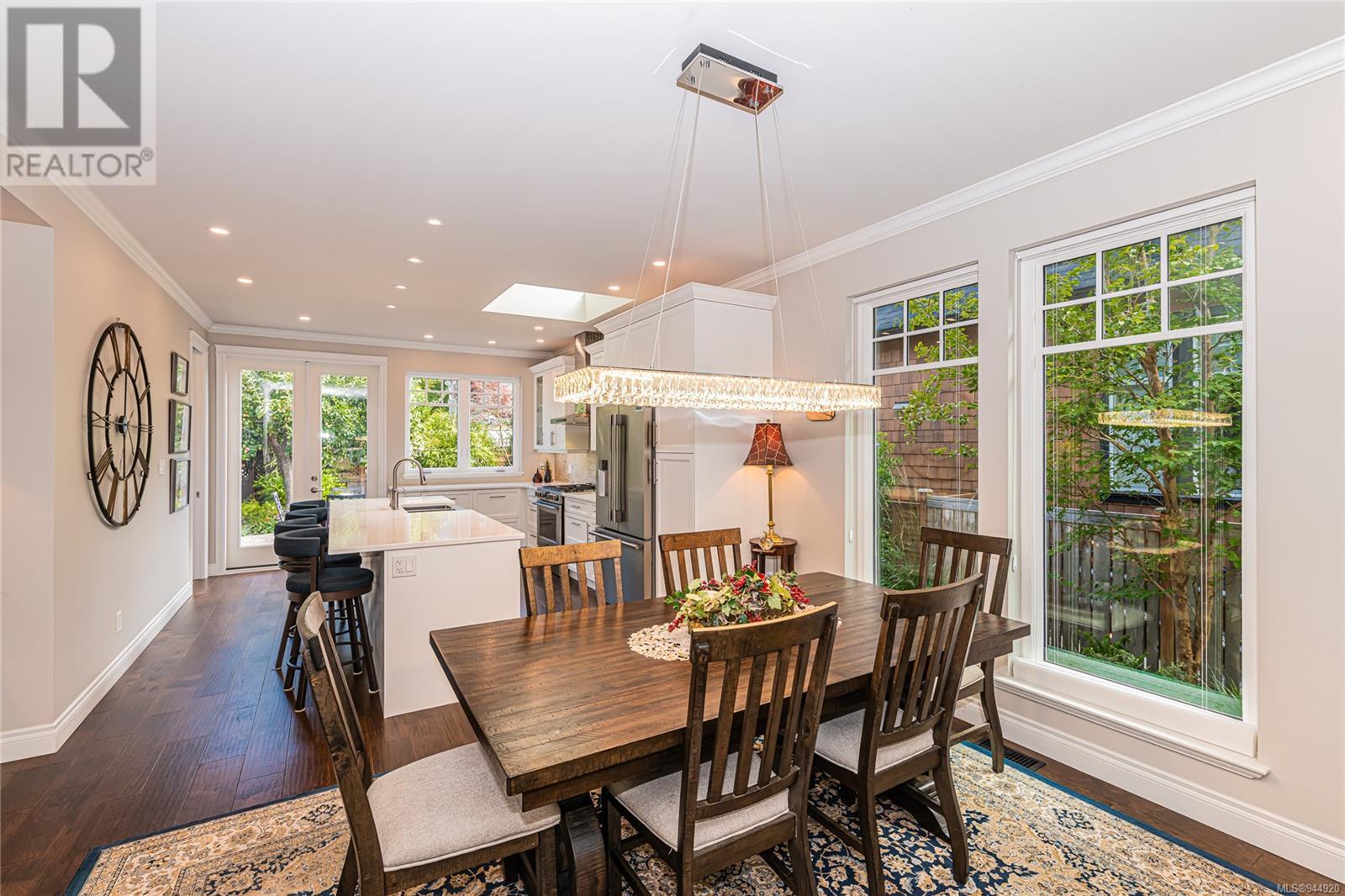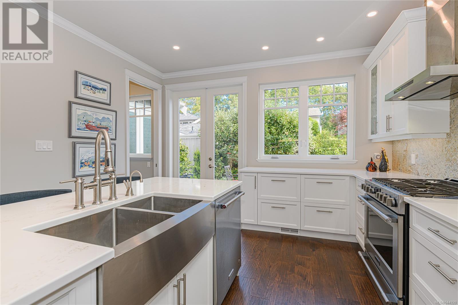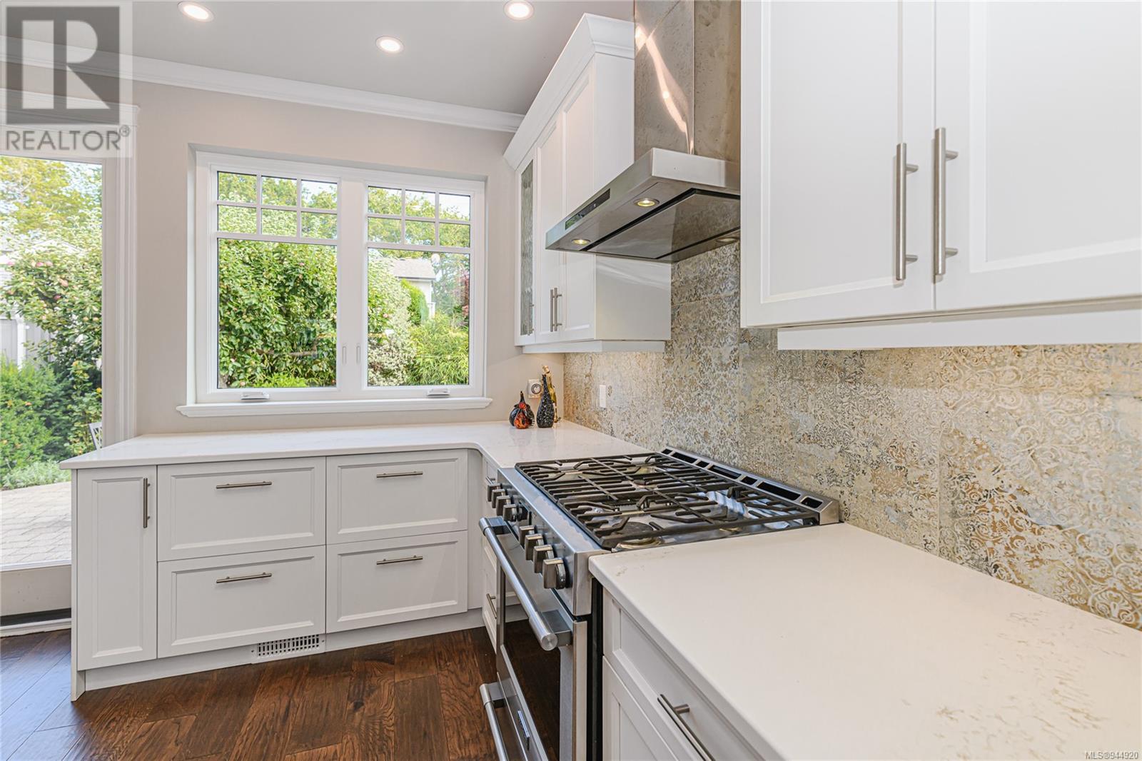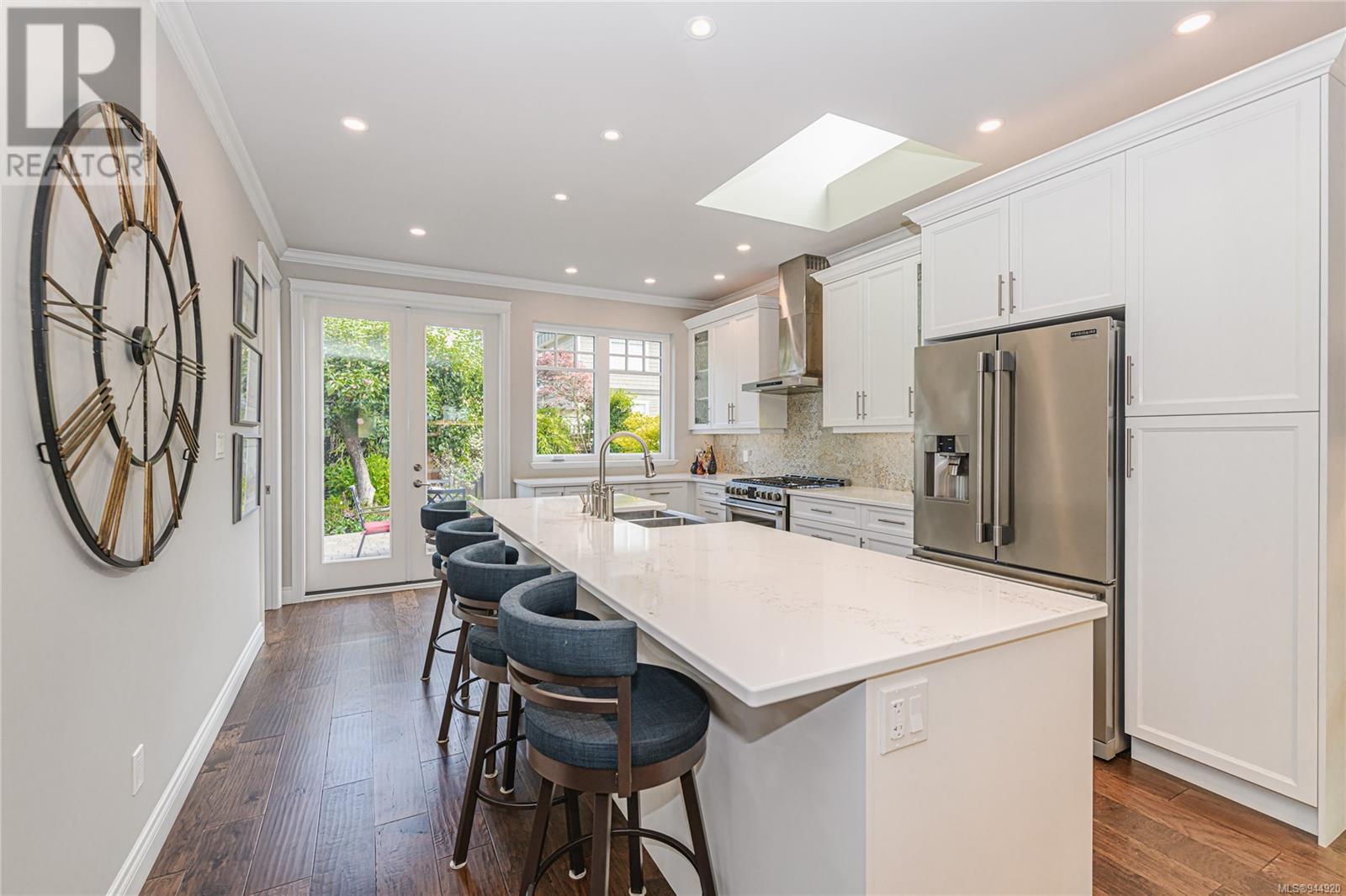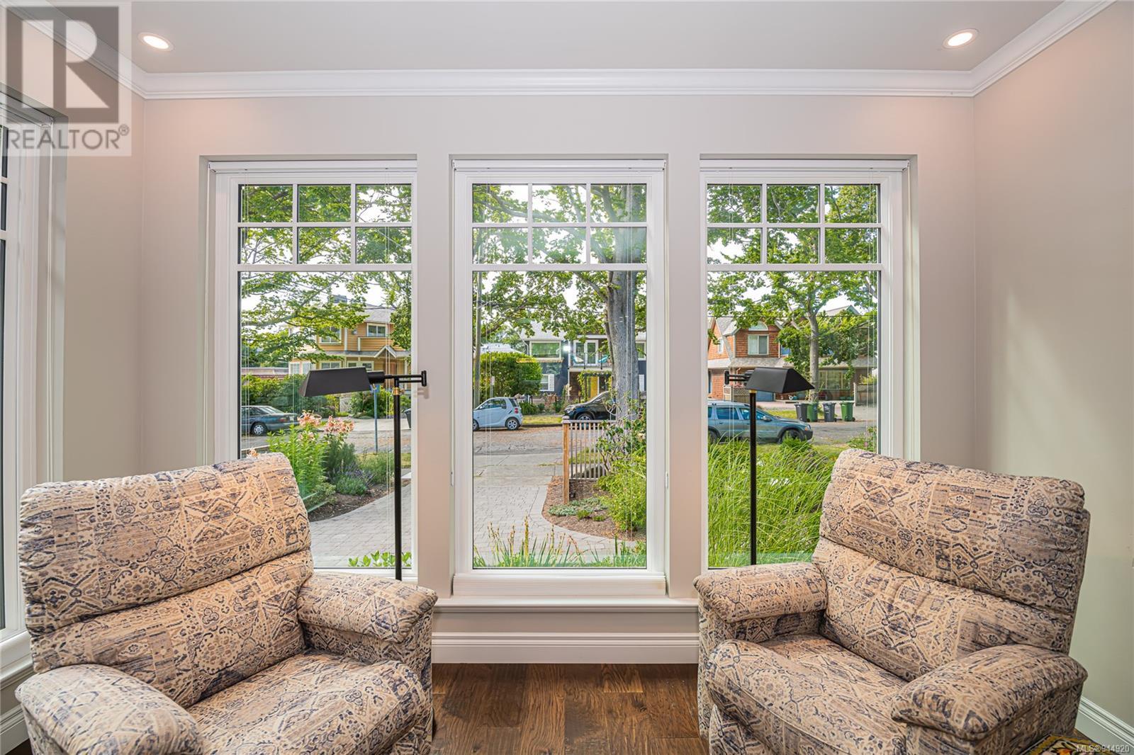 Open house cancelled! Nestled in a world-class James Bay location, this exquisite zebra designed, 2020 built property offers breathtaking ocean views and an accessible floor plan designed to perfection. As you step inside, you'll be captivated by the abundance of natural light that floods every corner of this residence, creating an inviting and cheerful ambiance. The spacious layout allows for seamless entertaining and comfortable everyday living, making it an ideal space for families and those who love to host gatherings. The main floor includes a 9' ceilings, a generous sized primary bedroom and ensuite, den or office space, laundry, and powder room. The heart of this home is the expansive main floor living area, strategically positioned to maximize the mesmerizing ocean views. For the culinary enthusiast, the well-appointed kitchen is a dream come true. Equipped with ample counter space and a butlers pantry, preparing delightful meals will be an absolute pleasure. Upstairs you will find three generous sized bedrooms, and Abundant storage options throughout. The home provides ample room for your belongings, ensuring a clutter-free living experience. A beautifully appointed self contained detached garden suite awaits in the lush backyard. Perfect for accommodating guests, family, or offering additional income, this separate unit offers versatility and endless possibilities - even includes its own laundry! The exterior is just as impressive as the interior. A beautiful low maintenance garden, generous sized patio, beautiful stonework throughout, and an amazing apple tree! You'll be close to top-notch amenities, renowned schools, vibrant dining, and shopping options. Embrace the coastal lifestyle, where beach access and outdoor recreation opportunities are only steps away. Don't miss this opportunity to own a slice of paradise in an unparalleled location. Schedule a private tour today and discover the beauty of coastal living at its finest. (id:22211)