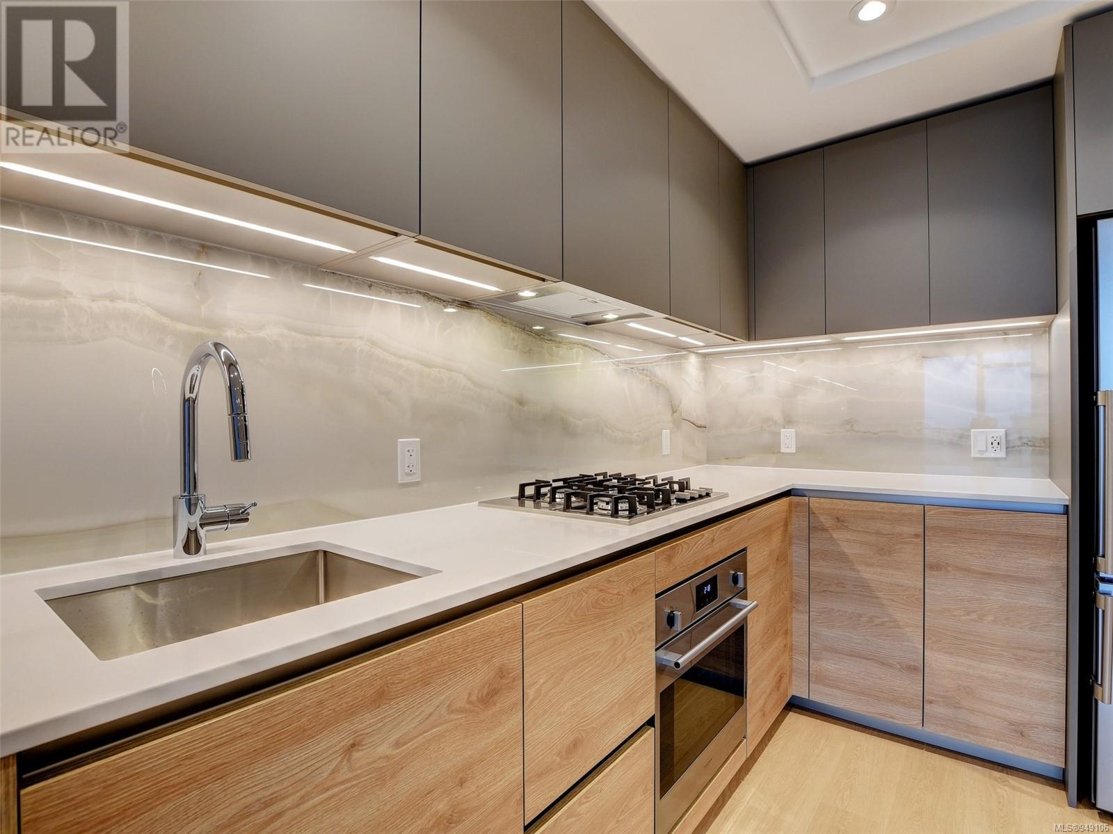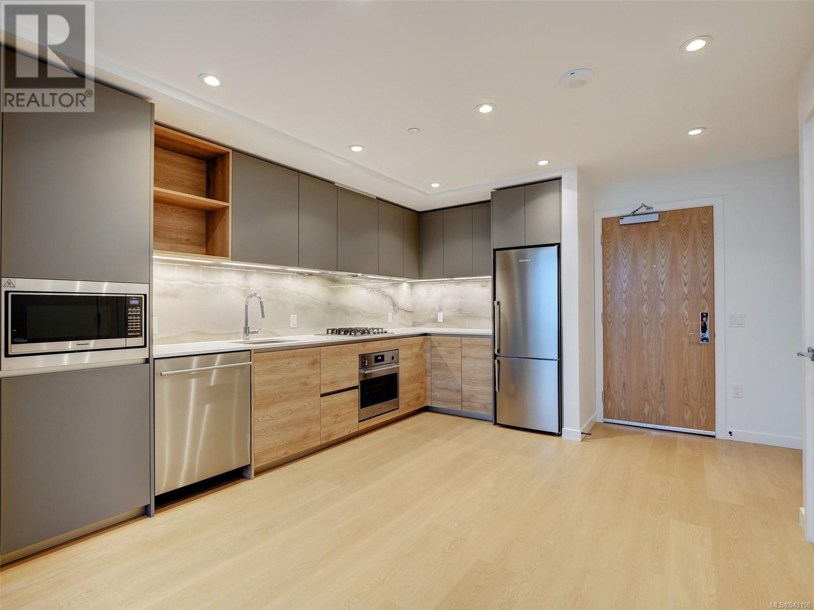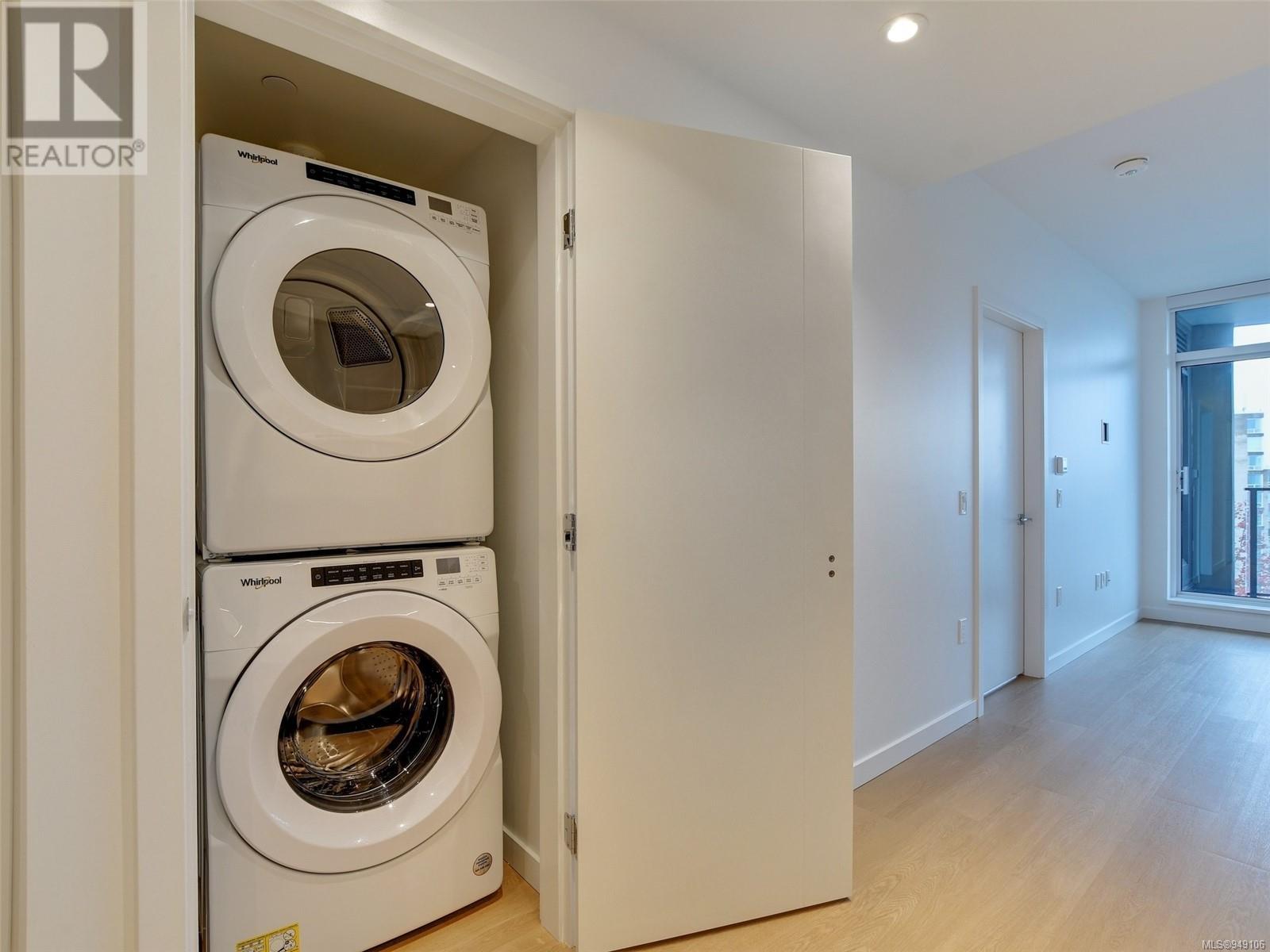 Welcome to Bosa’s newest eco-friendly steel and concrete condominium in Dockside Green, Tower One, perfectly designed for a “small footprint” lifestyle. This sub penthouse offers 1 bedroom with spa bath and enjoys fabulous ocean and mountain views with spectacular sunsets! The spacious kitchen is equipped with SS appliances, Stosa Italian cabinetry & quartz counter tops. The amenities in this complex are beyond compare! The common Roof top Terrace offers 360-degree views from the Inner to Outer harbours incl. Gorge waterway. There is a chill zone with firepit, two BBQs and dining areas. The large fitness centre is fully equipped with state-of-the-art equipment. The spacious multipurpose social lounge is an option for private gatherings. As pet friendly building it includes a doggy wash. A great benefit of this suite is the underground parking spot with dedicated EV charger. The location is superb, with shopping, restaurants & the Galloping Goose Trail at your door! (id:22211)