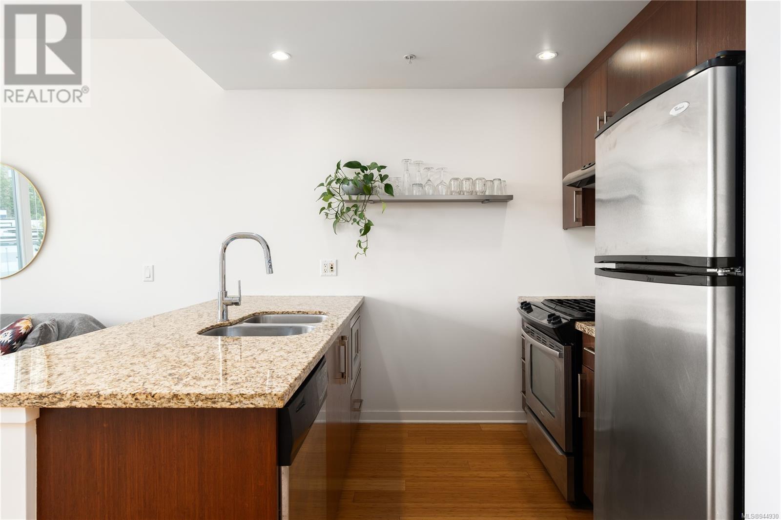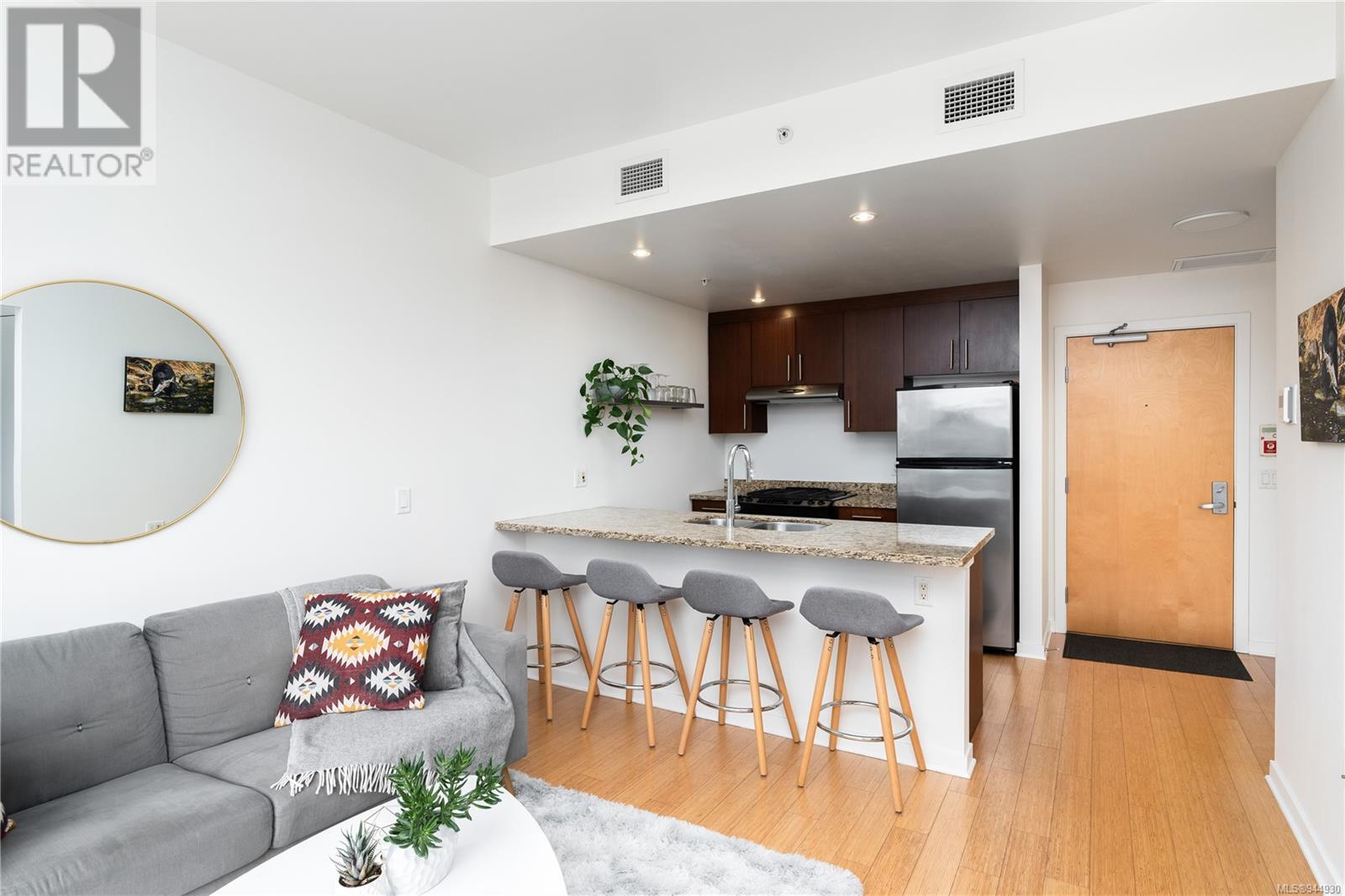 Seize the fantastic chance to step into home ownership at the environmentally conscious Balance Building. Situated on the 6th floor, this one-bedroom, one-bathroom condo is flooded with natural light, thanks to the floor-to-ceiling windows that open up to a balcony, offering stunning views of the ocean and mountains. With features like granite countertops, bamboo flooring, in-suite laundry, a gas stove, a full-sized fridge, and a dishwasher, this condo is designed to provide both comfort and style. Age is no barrier, and furry companions are welcome in this residence. Additionally, the building offers practical amenities such as separate storage and a designated space for bicycles. Its strategic location near the Galloping Goose, Westside Village, scenic oceanfront trails, and just a quick trip across the Johnson Street bridge to downtown Victoria, make it an enticing choice. Crafted for affordability, this housing unit does come with specific eligibility requirements. (id:22211)