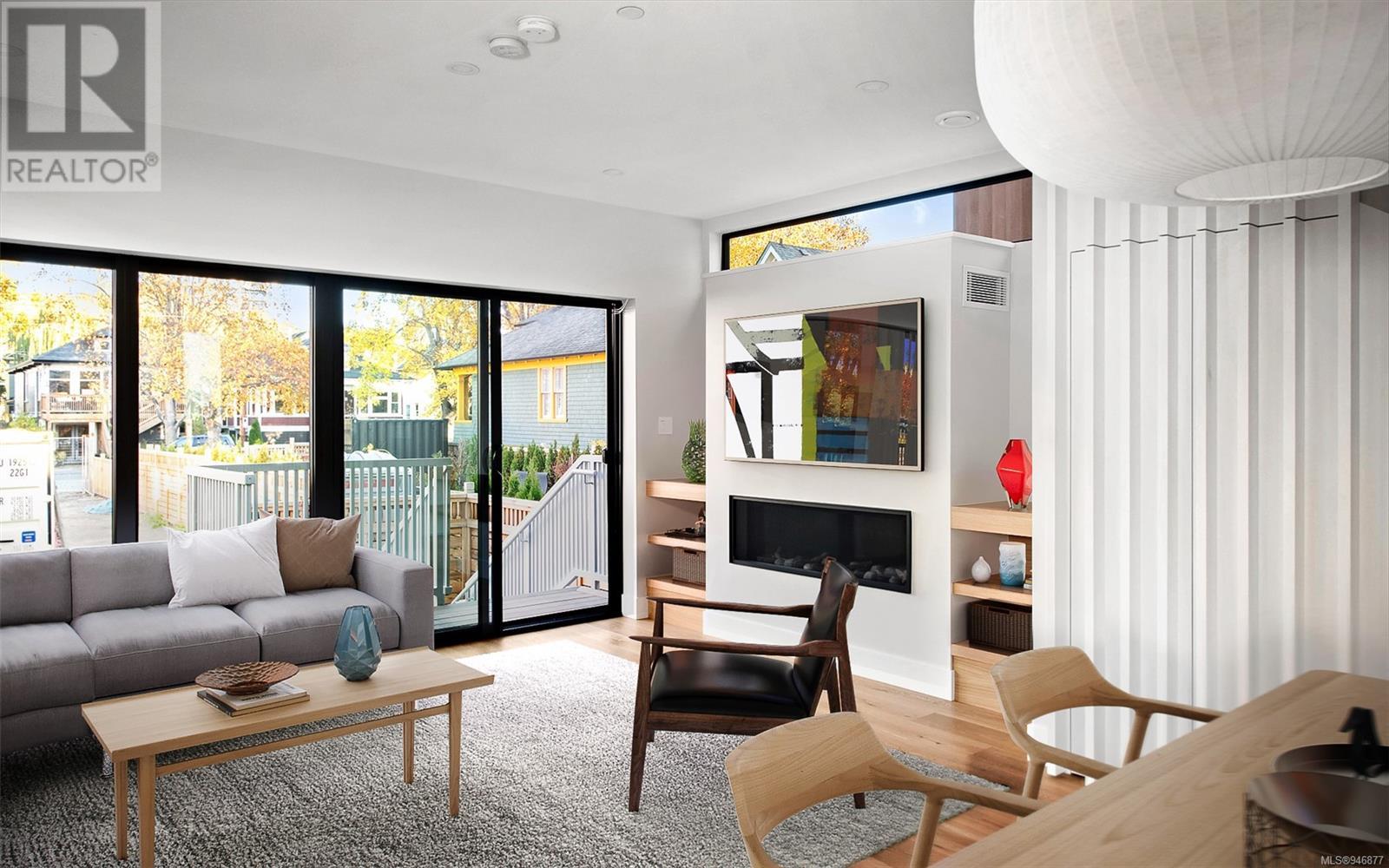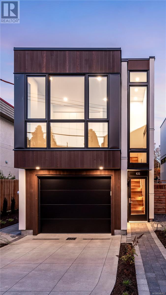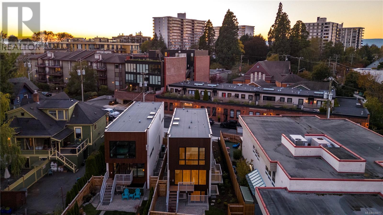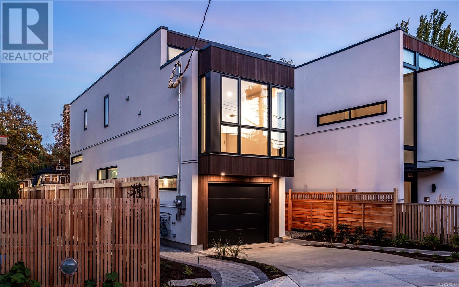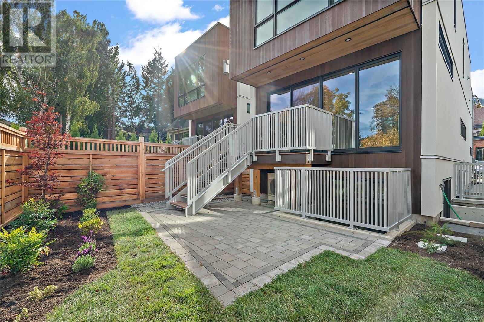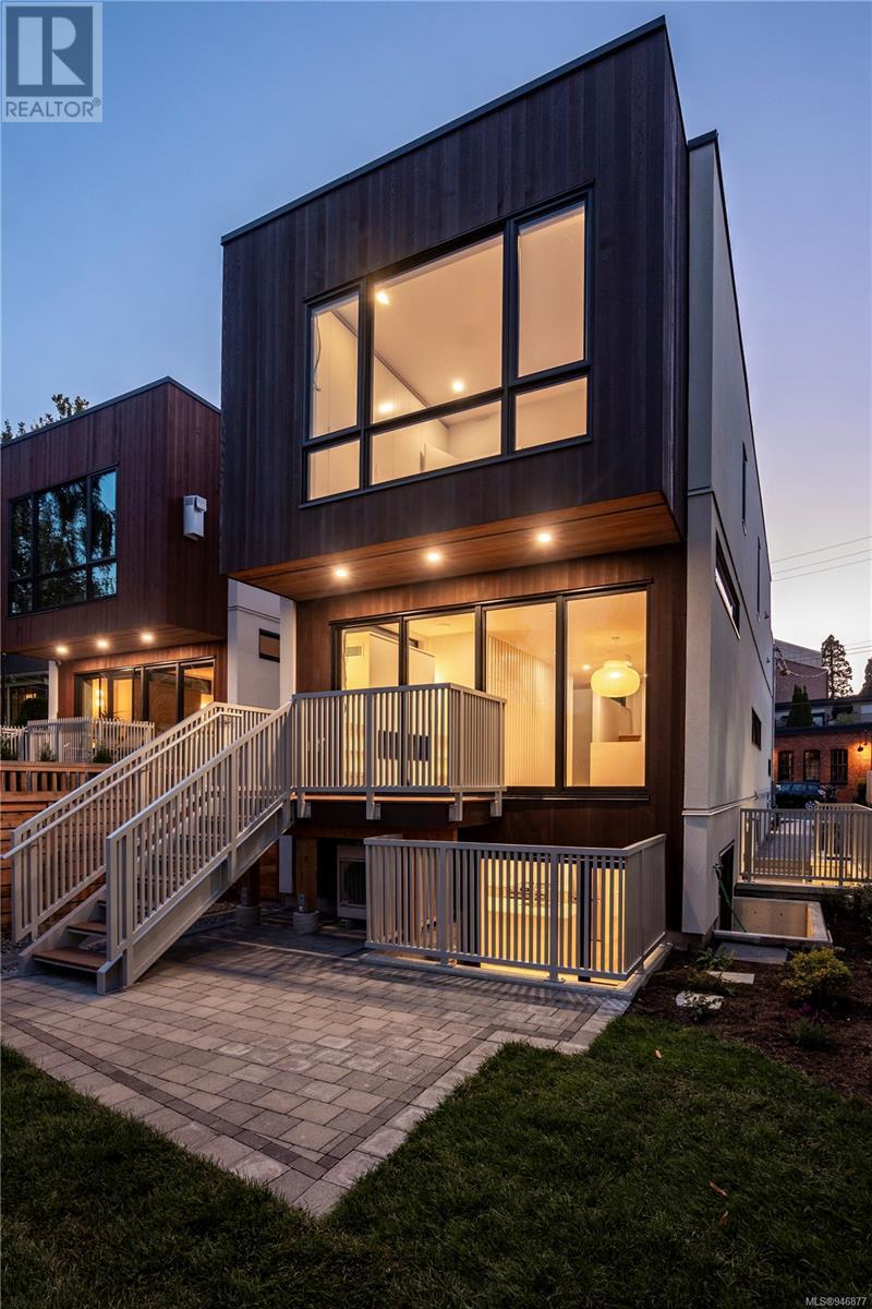 One of two unique urban houses located steps to the amenity rich James Bay village. Walk to the Legislative buildings and inner harbour two blocks away, the Dallas Rd waterfront and Beacon Hill Park. Location is perfect for neighbourhood walking, cycling and living ‘car light’. Design is by Arcata Architecture with a strong reference to Danish Contemporary Architecture which emphasizes a comfortable environment, energy efficient systems, and use of sustainable building materials and products - with a distinct Scandinavian design aesthetic. Interiors are designed by award winning interior design firm Bidgood & Co and are a testament to detail employing a restrained colour palate and Danish inspired forms with unique fittings and fixtures. The kitchen and bathroom cabinetry are rift sawn white oak, stone counters tops and Fisher Paykel appliances. The bedrooms feature custom built in wardrobes with drawers and shelving in white oak. Flooring is engineered white oak and heated tile floors for beauty, comfort and durability. Built to the latest ‘Step 3’ code, the homes have been engineered and modelled to ensure energy efficiency. The heat and air conditioning is provided by electric heat pump and efficient convectair wall hung heaters (in the legal suite) for low energy costs and HRV for constant fresh clean air. The homes are fully sprinklered for fire safety. Exteriors are western red cedar and acrylic panels with triple glazed windows for beauty and low maintenance. Floor plans have been created for comfort and efficiency and offer three bedrooms up, ensuite and second bathroom. Media room/office and powder room on split level and full lower-level legal suite with laundry and private entry. Fully landscaped grounds by LADR landscape architects, is fully sprinklered and custom fenced with easy maintenance yard, for easy outside living. GST additional to price. Suite is perfect for Short Term rentals with the imminent shut-down of hundreds of STR condos. (id:22211)