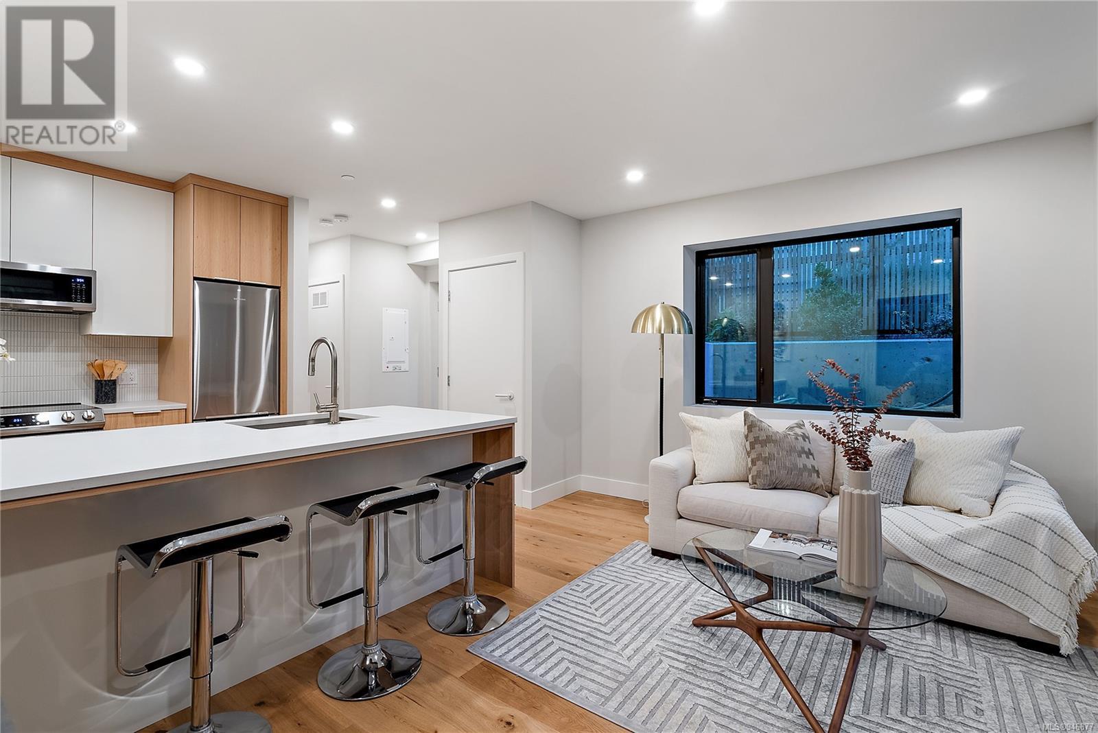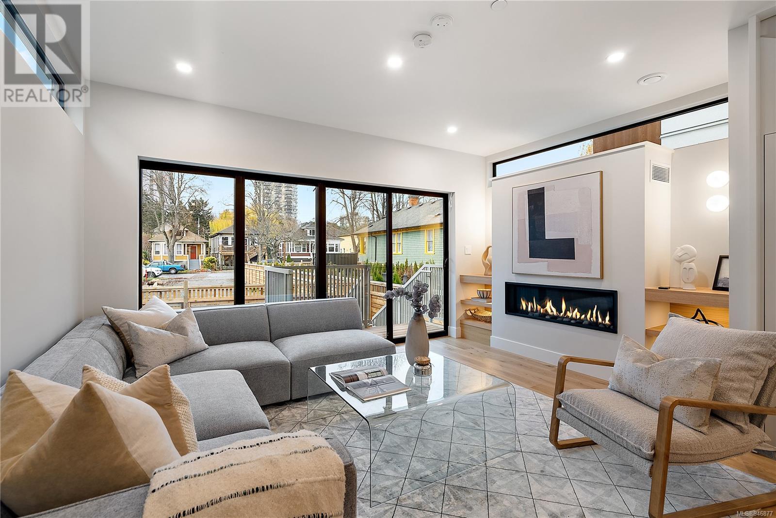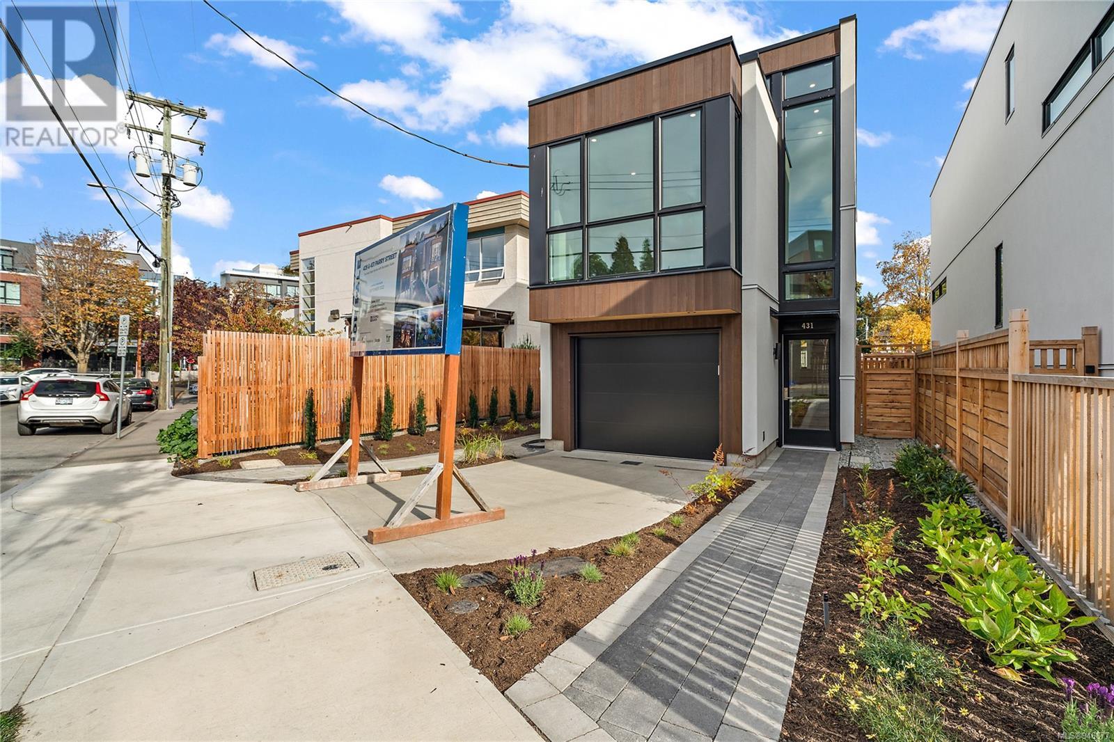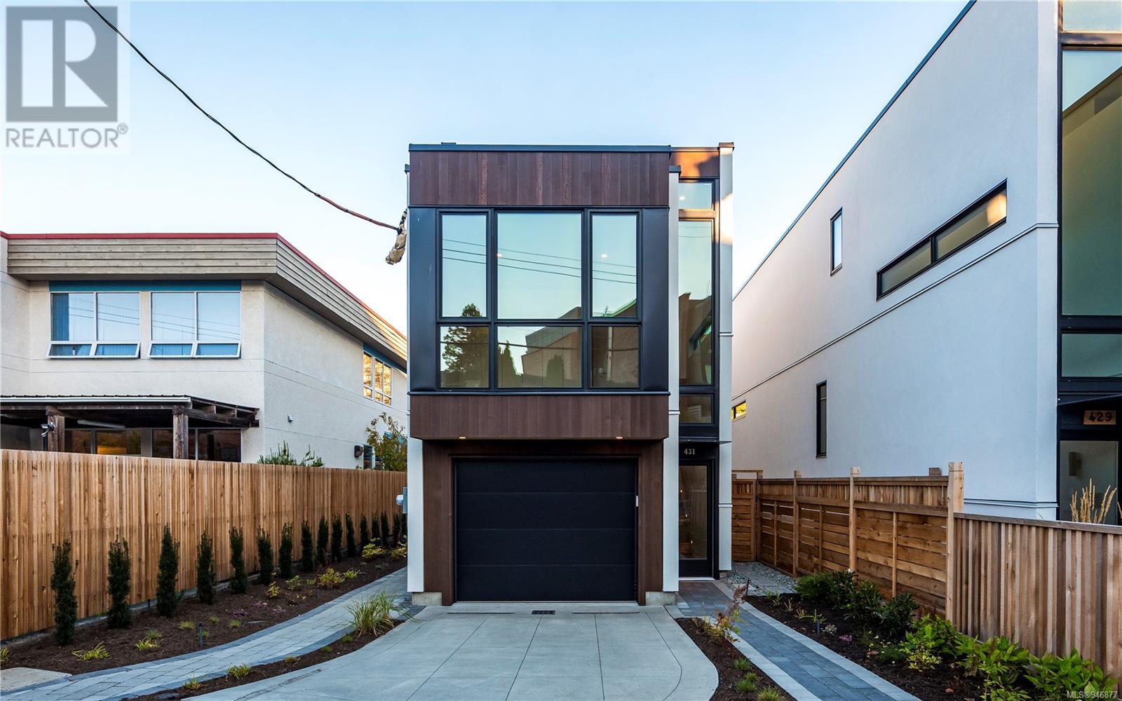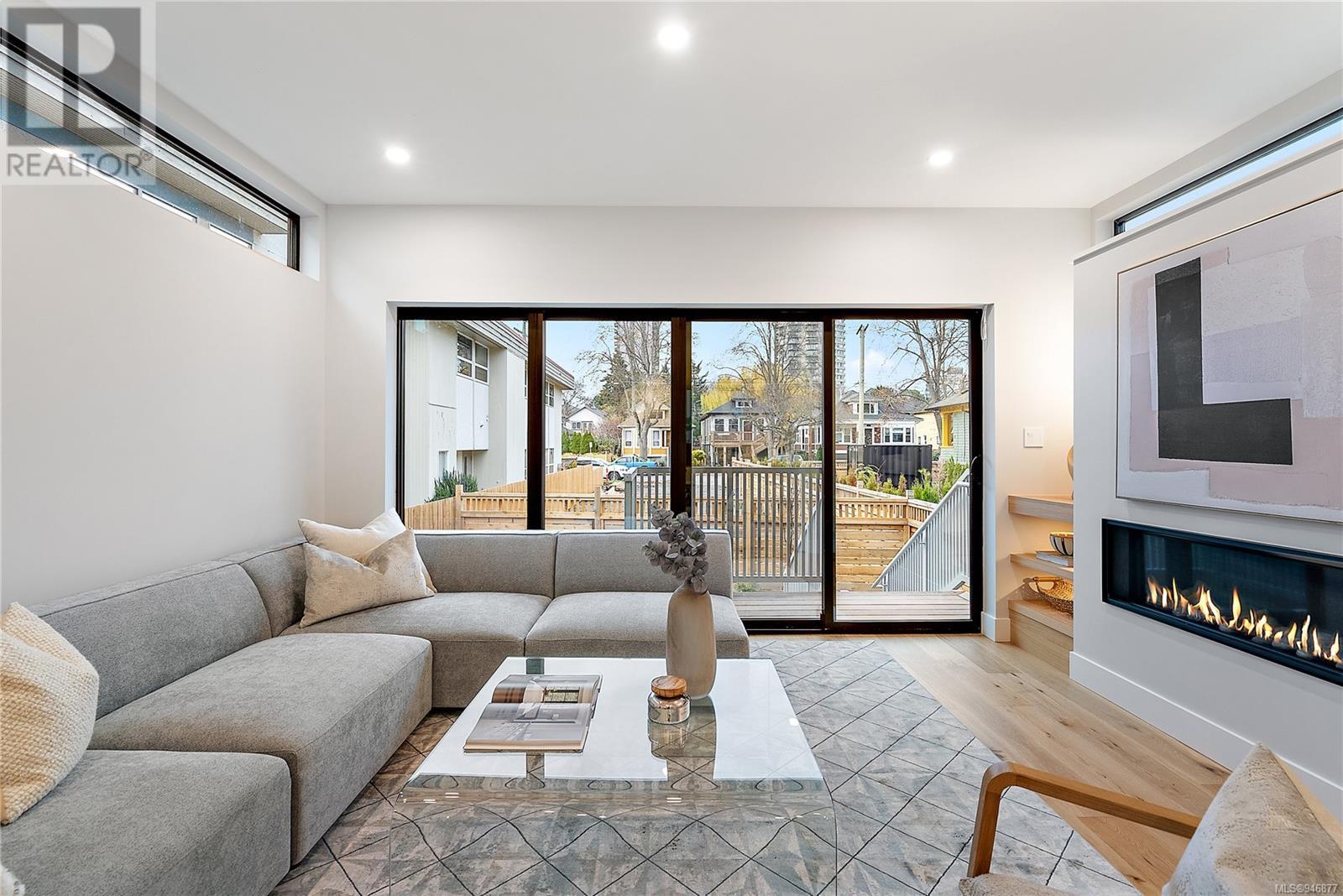 One of two unique urban houses located steps to the amenity rich James Bay village. Walk to the Legislative buildings and inner harbour two blocks away, the Dallas Rd waterfront and Beacon Hill Park. Location is perfect for neighbourhood walking, cycling and living ‘car light’. Design is by Arcata Architecture with a strong reference to Danish Contemporary Architecture which emphasizes a comfortable environment, energy efficient systems, and use of sustainable building materials and products - with a distinct Scandinavian design aesthetic. Interiors are designed by award winning interior design firm Bidgood & Co and are a testament to detail employing a restrained colour palate and Danish inspired forms with unique fittings and fixtures. The kitchen and bathroom cabinetry are rift sawn white oak, stone counters tops and Fisher Paykel appliances. The bedrooms feature custom built in wardrobes with drawers and shelving in white oak. Flooring is engineered white oak and heated tile floors for beauty, comfort and durability. Built to the latest ‘Step 3’ code, the homes have been engineered and modelled to ensure energy efficiency. The heat and air conditioning is provided by electric heat pump and efficient convectair wall hung heaters (in the legal suite) for low energy costs and HRV for constant fresh clean air. The homes are fully sprinklered for fire safety. Exteriors are western red cedar and acrylic panels with triple glazed windows for beauty and low maintenance. Floor plans have been created for comfort and efficiency and offer three bedrooms up, ensuite and second bathroom. Media room/office and powder room on split level and full lower-level legal suite with laundry and private entry. Fully landscaped grounds by LADR landscape architects, is fully sprinklered and custom fenced with easy maintenance yard, for easy outside living. GST additional to price. Suite is perfect for Short Term rentals with the imminent shut-down of hundreds of STR condos. (id:22211)
