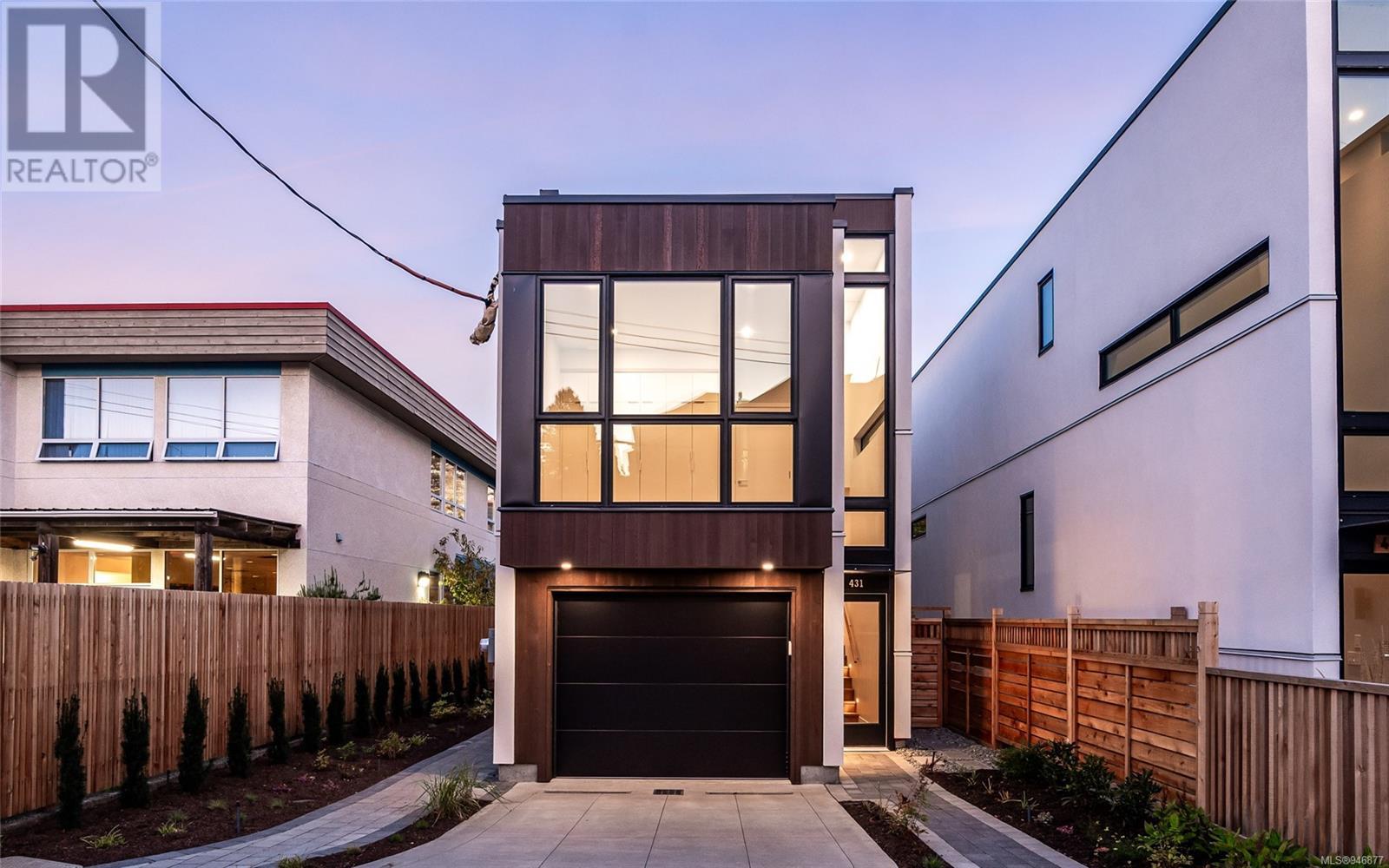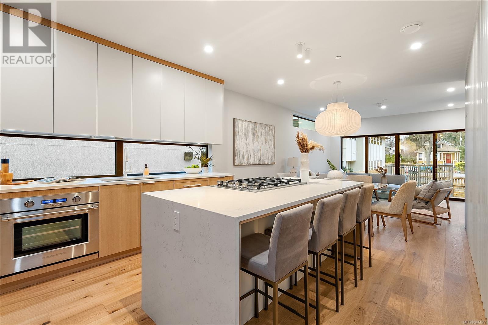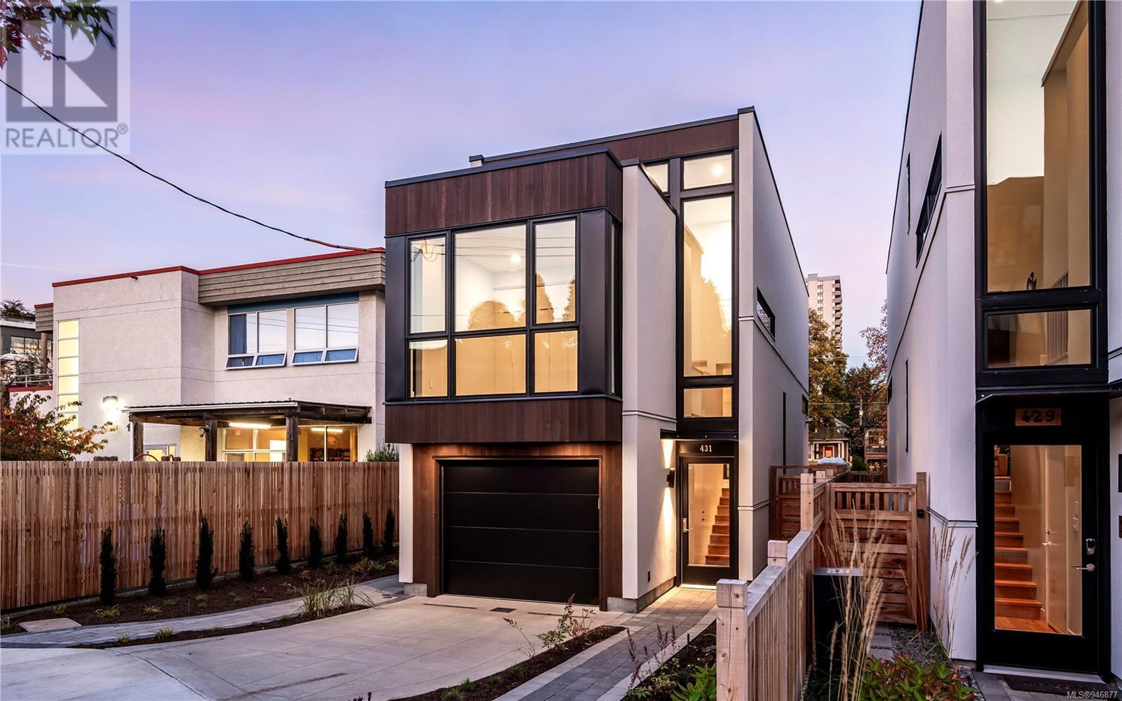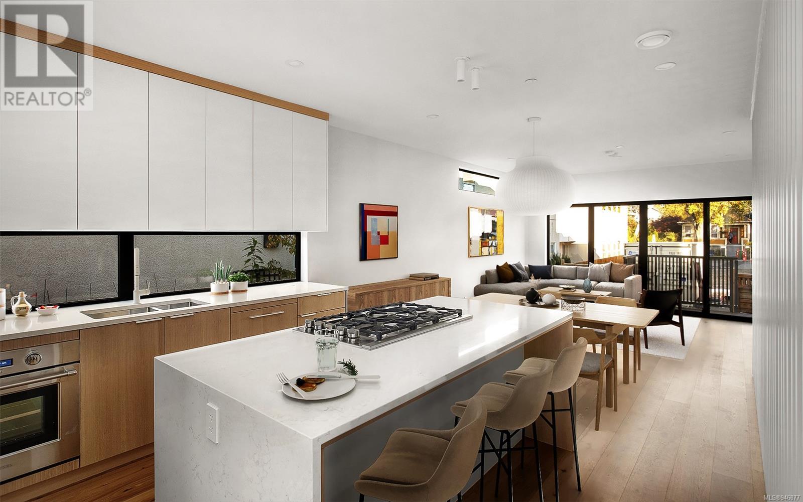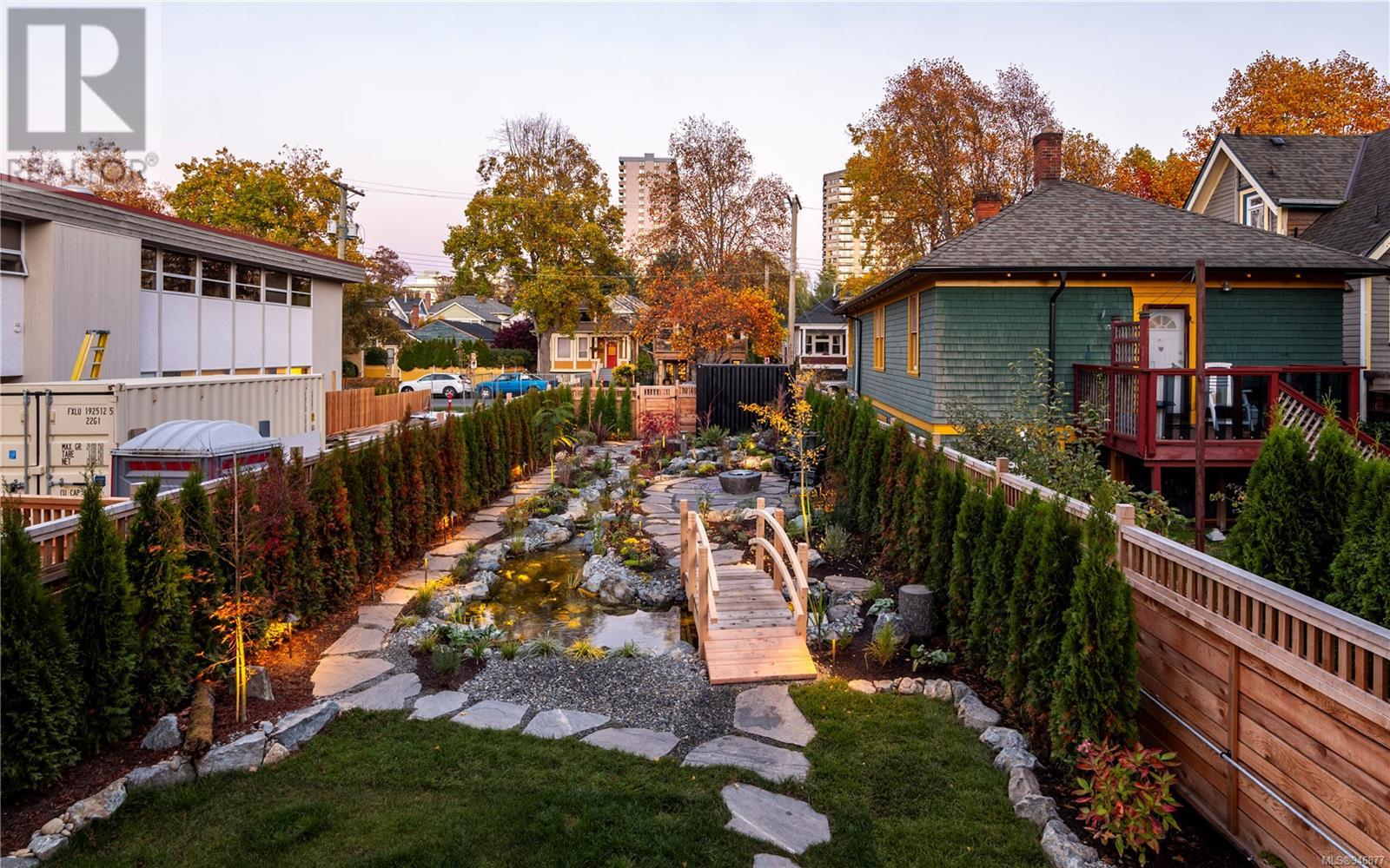 One of two unique urban houses located steps to the amenity rich James Bay village. Walk to the Legislative buildings and inner harbour two blocks away, the Dallas Rd waterfront and Beacon Hill Park. Location is perfect for neighbourhood walking, cycling and living ‘car light’. Design is by Arcata Architecture with a strong reference to Danish Contemporary Architecture which emphasizes a comfortable environment, energy efficient systems, and use of sustainable building materials and products - with a distinct Scandinavian design aesthetic. Interiors are designed by award winning interior design firm Bidgood & Co and are a testament to detail employing a restrained colour palate and Danish inspired forms with unique fittings and fixtures. The kitchen and bathroom cabinetry are rift sawn white oak, stone counters tops and Fisher Paykel appliances. The bedrooms feature custom built in wardrobes with drawers and shelving in white oak. Flooring is engineered white oak and heated tile floors for beauty, comfort and durability. Built to the latest ‘Step 3’ code, the homes have been engineered and modelled to ensure energy efficiency. The heat and air conditioning is provided by electric heat pump and efficient convectair wall hung heaters (in the legal suite) for low energy costs and HRV for constant fresh clean air. The homes are fully sprinklered for fire safety. Exteriors are western red cedar and acrylic panels with triple glazed windows for beauty and low maintenance. Floor plans have been created for comfort and efficiency and offer three bedrooms up, ensuite and second bathroom. Media room/office and powder room on split level and full lower-level legal suite with laundry and private entry. Fully landscaped grounds by LADR landscape architects, is fully sprinklered and custom fenced with easy maintenance yard, for easy outside living. GST additional to price. Suite is perfect for Short Term rentals with the imminent shut-down of hundreds of STR condos. (id:22211)