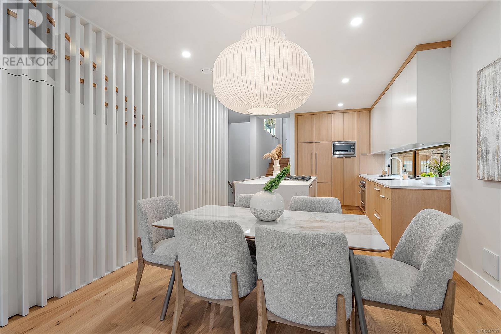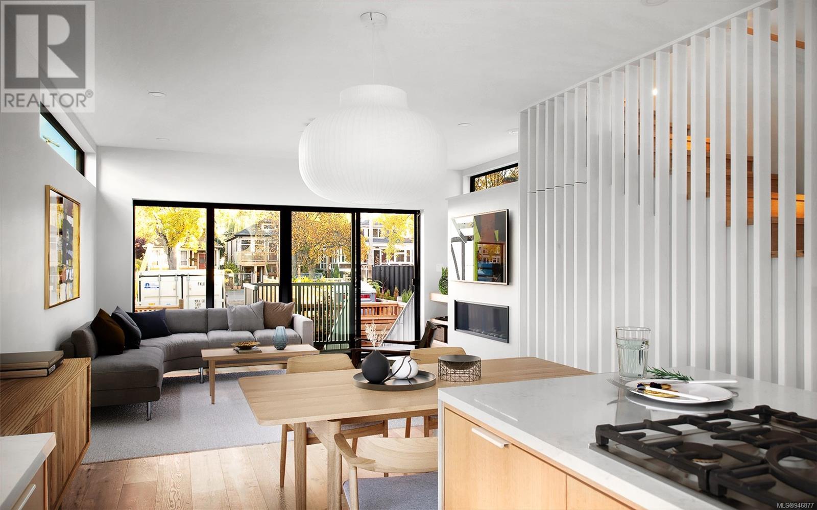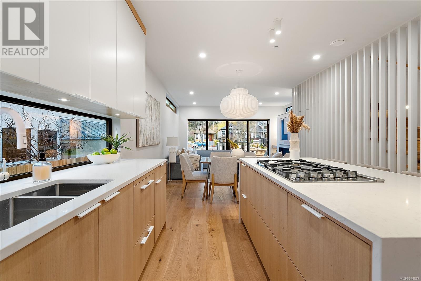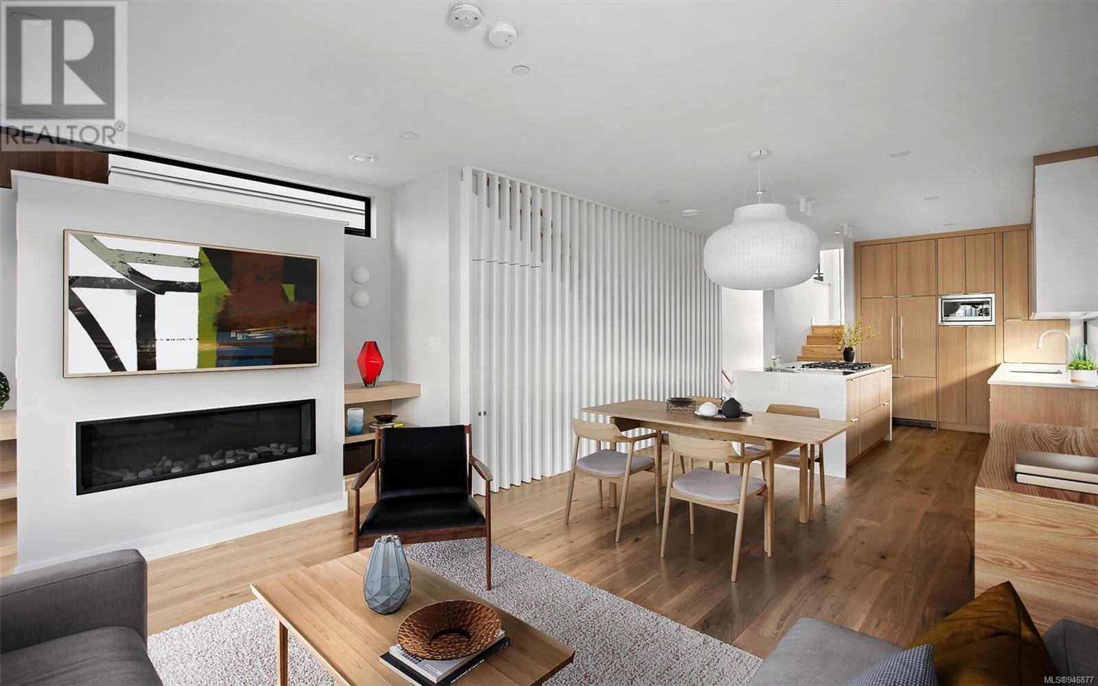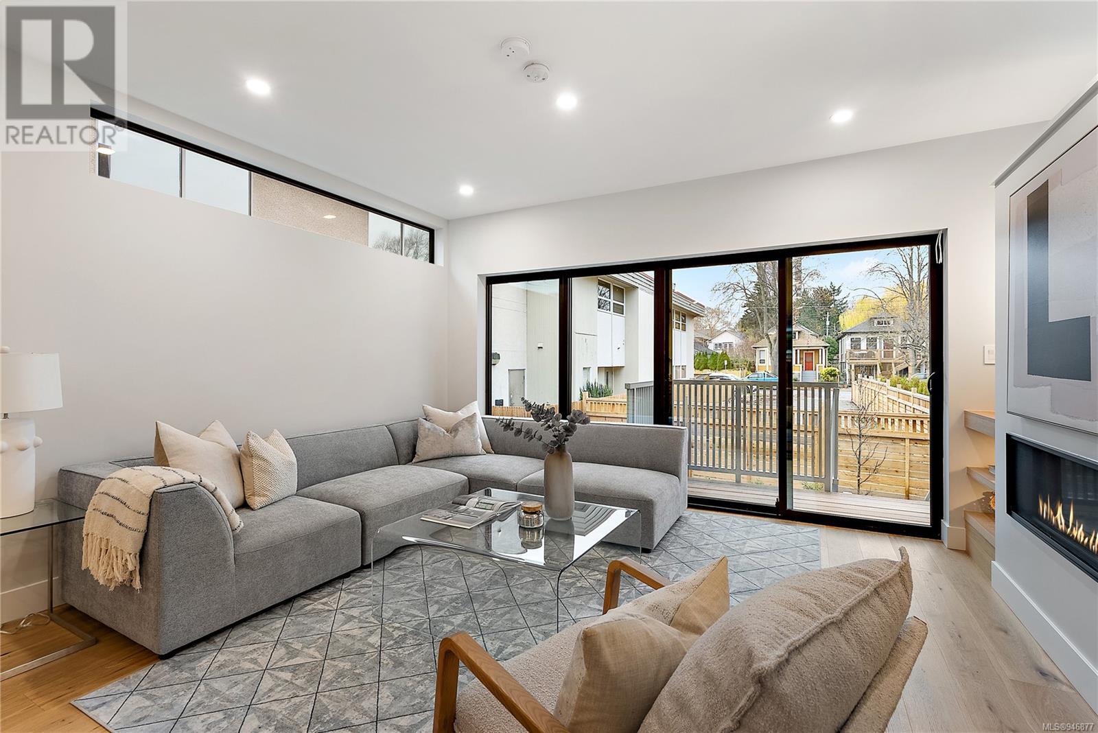 One of two unique urban houses located steps to the amenity rich James Bay village. Walk to the Legislative buildings and inner harbour two blocks away, the Dallas Rd waterfront and Beacon Hill Park. Location is perfect for neighbourhood walking, cycling and living ‘car light’. Design is by Arcata Architecture with a strong reference to Danish Contemporary Architecture which emphasizes a comfortable environment, energy efficient systems, and use of sustainable building materials and products - with a distinct Scandinavian design aesthetic. Interiors are designed by award winning interior design firm Bidgood & Co and are a testament to detail employing a restrained colour palate and Danish inspired forms with unique fittings and fixtures. The kitchen and bathroom cabinetry are rift sawn white oak, stone counters tops and Fisher Paykel appliances. The bedrooms feature custom built in wardrobes with drawers and shelving in white oak. Flooring is engineered white oak and heated tile floors for beauty, comfort and durability. Built to the latest ‘Step 3’ code, the homes have been engineered and modelled to ensure energy efficiency. The heat and air conditioning is provided by electric heat pump and efficient convectair wall hung heaters (in the legal suite) for low energy costs and HRV for constant fresh clean air. The homes are fully sprinklered for fire safety. Exteriors are western red cedar and acrylic panels with triple glazed windows for beauty and low maintenance. Floor plans have been created for comfort and efficiency and offer three bedrooms up, ensuite and second bathroom. Media room/office and powder room on split level and full lower-level legal suite with laundry and private entry. Fully landscaped grounds by LADR landscape architects, is fully sprinklered and custom fenced with easy maintenance yard, for easy outside living. GST additional to price. Suite is perfect for Short Term rentals with the imminent shut-down of hundreds of STR condos. (id:22211)