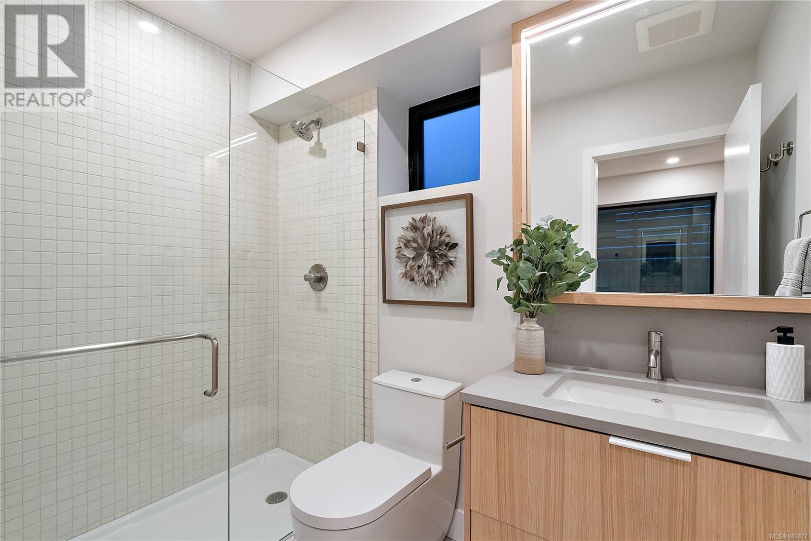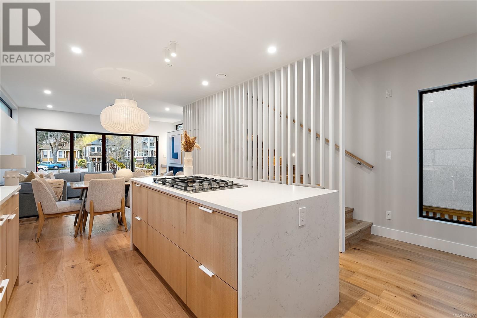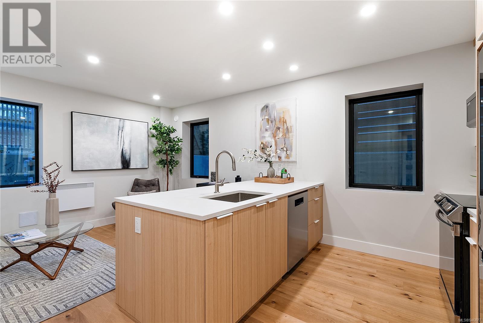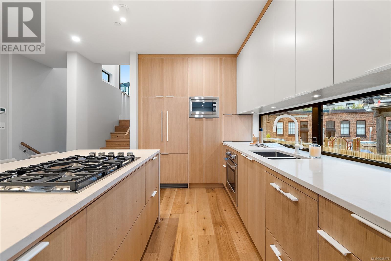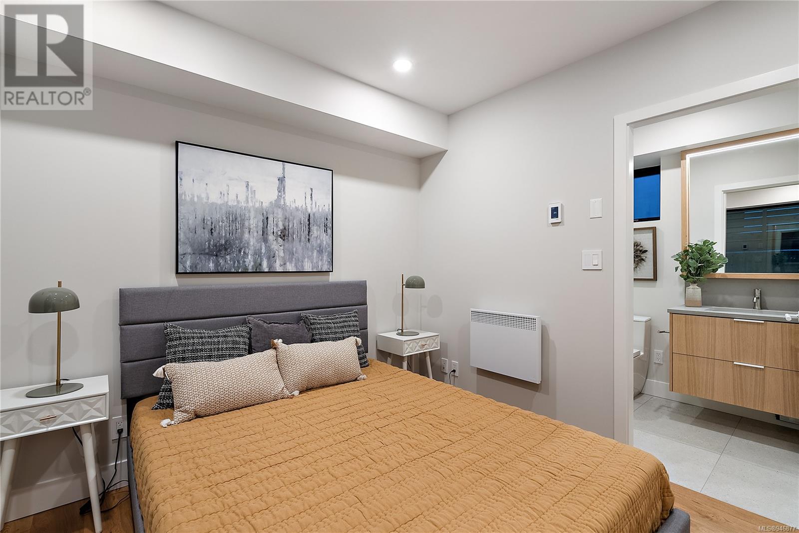 One of two unique urban houses located steps to the amenity rich James Bay village. Walk to the Legislative buildings and inner harbour two blocks away, the Dallas Rd waterfront and Beacon Hill Park. Location is perfect for neighbourhood walking, cycling and living ‘car light’. Design is by Arcata Architecture with a strong reference to Danish Contemporary Architecture which emphasizes a comfortable environment, energy efficient systems, and use of sustainable building materials and products - with a distinct Scandinavian design aesthetic. Interiors are designed by award winning interior design firm Bidgood & Co and are a testament to detail employing a restrained colour palate and Danish inspired forms with unique fittings and fixtures. The kitchen and bathroom cabinetry are rift sawn white oak, stone counters tops and Fisher Paykel appliances. The bedrooms feature custom built in wardrobes with drawers and shelving in white oak. Flooring is engineered white oak and heated tile floors for beauty, comfort and durability. Built to the latest ‘Step 3’ code, the homes have been engineered and modelled to ensure energy efficiency. The heat and air conditioning is provided by electric heat pump and efficient convectair wall hung heaters (in the legal suite) for low energy costs and HRV for constant fresh clean air. The homes are fully sprinklered for fire safety. Exteriors are western red cedar and acrylic panels with triple glazed windows for beauty and low maintenance. Floor plans have been created for comfort and efficiency and offer three bedrooms up, ensuite and second bathroom. Media room/office and powder room on split level and full lower-level legal suite with laundry and private entry. Fully landscaped grounds by LADR landscape architects, is fully sprinklered and custom fenced with easy maintenance yard, for easy outside living. GST additional to price. Suite is perfect for Short Term rentals with the imminent shut-down of hundreds of STR condos. (id:22211)