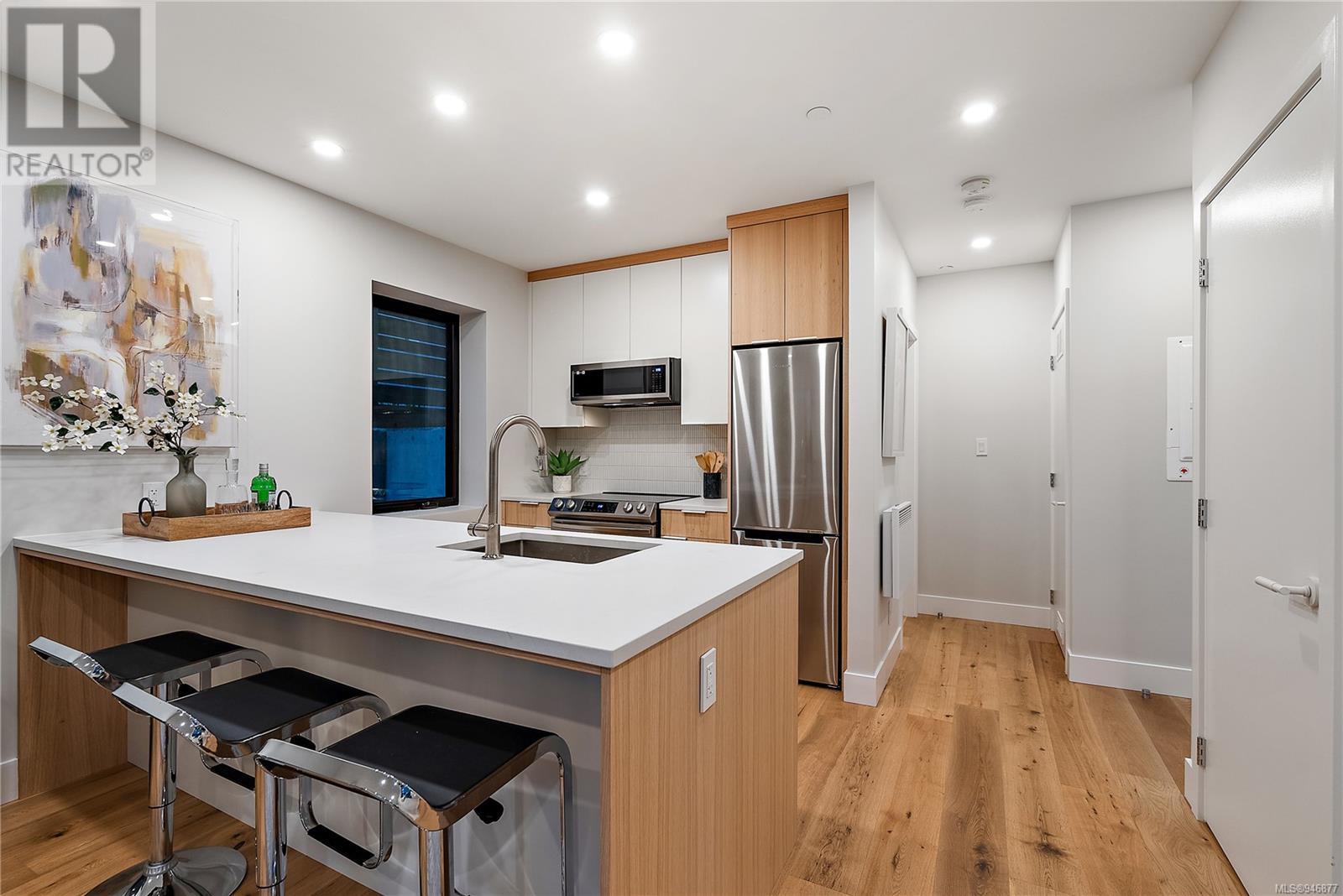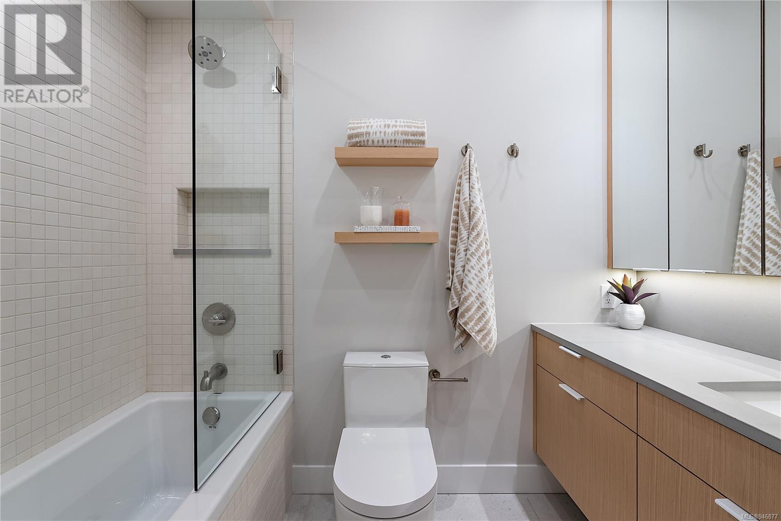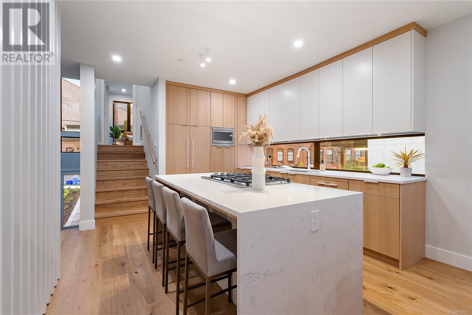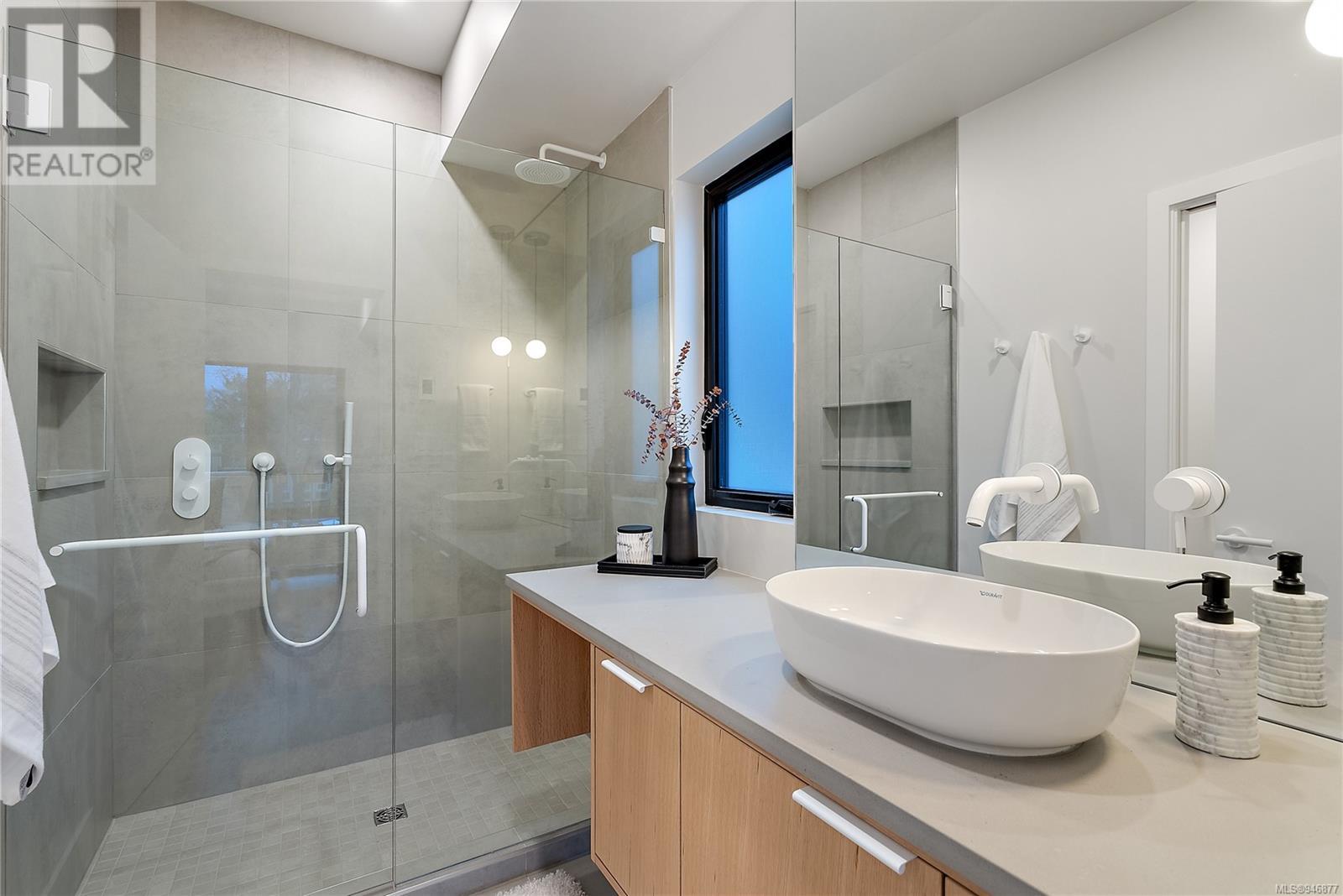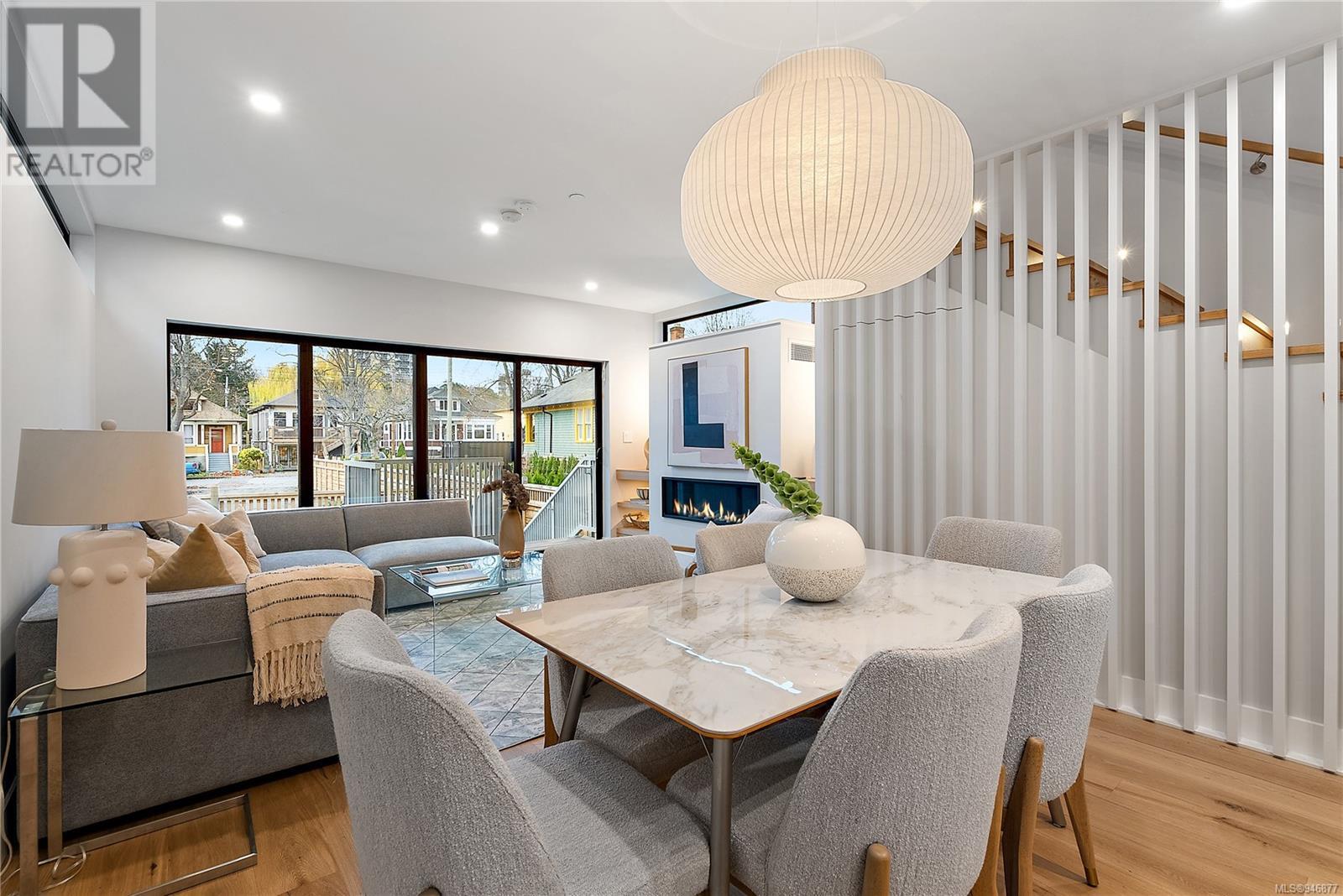 One of two unique urban houses located steps to the amenity rich James Bay village. Walk to the Legislative buildings and inner harbour two blocks away, the Dallas Rd waterfront and Beacon Hill Park. Location is perfect for neighbourhood walking, cycling and living ‘car light’. Design is by Arcata Architecture with a strong reference to Danish Contemporary Architecture which emphasizes a comfortable environment, energy efficient systems, and use of sustainable building materials and products - with a distinct Scandinavian design aesthetic. Interiors are designed by award winning interior design firm Bidgood & Co and are a testament to detail employing a restrained colour palate and Danish inspired forms with unique fittings and fixtures. The kitchen and bathroom cabinetry are rift sawn white oak, stone counters tops and Fisher Paykel appliances. The bedrooms feature custom built in wardrobes with drawers and shelving in white oak. Flooring is engineered white oak and heated tile floors for beauty, comfort and durability. Built to the latest ‘Step 3’ code, the homes have been engineered and modelled to ensure energy efficiency. The heat and air conditioning is provided by electric heat pump and efficient convectair wall hung heaters (in the legal suite) for low energy costs and HRV for constant fresh clean air. The homes are fully sprinklered for fire safety. Exteriors are western red cedar and acrylic panels with triple glazed windows for beauty and low maintenance. Floor plans have been created for comfort and efficiency and offer three bedrooms up, ensuite and second bathroom. Media room/office and powder room on split level and full lower-level legal suite with laundry and private entry. Fully landscaped grounds by LADR landscape architects, is fully sprinklered and custom fenced with easy maintenance yard, for easy outside living. GST additional to price. Suite is perfect for Short Term rentals with the imminent shut-down of hundreds of STR condos. (id:22211)