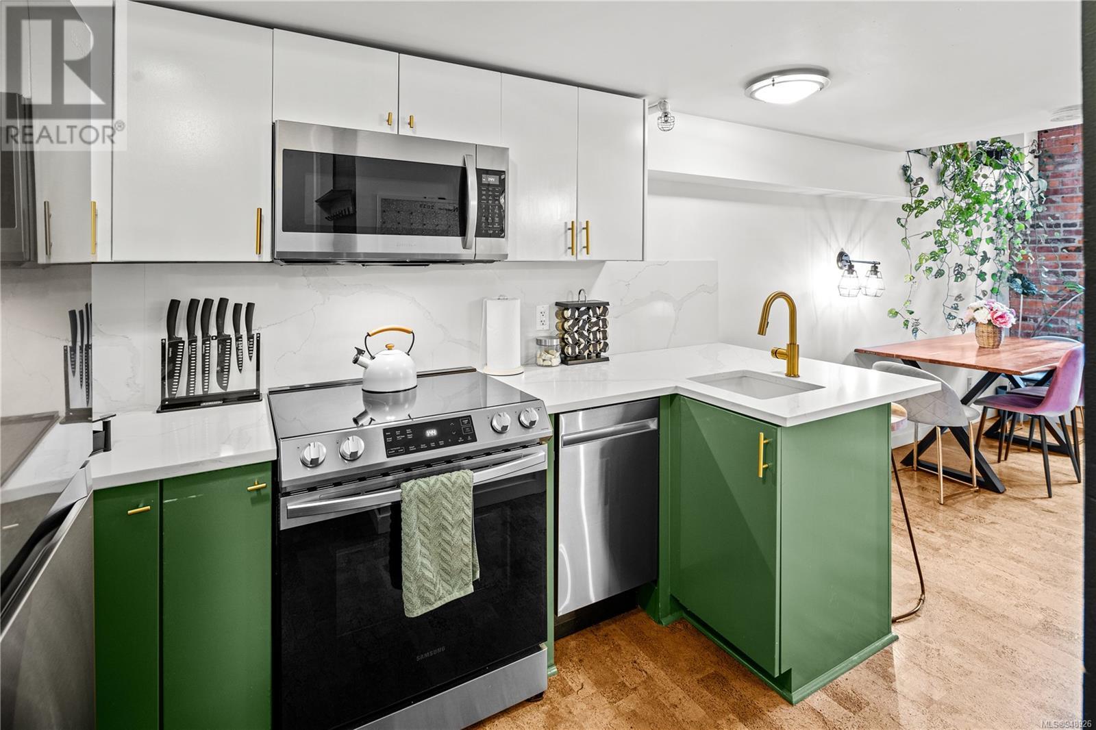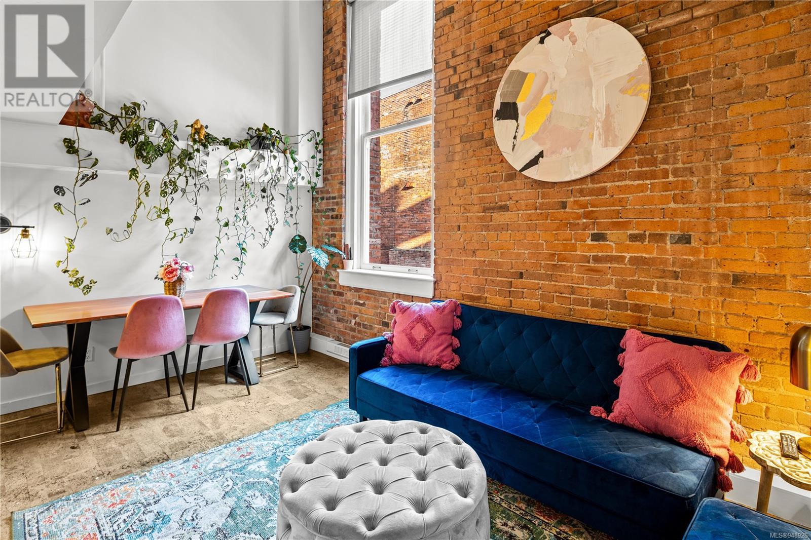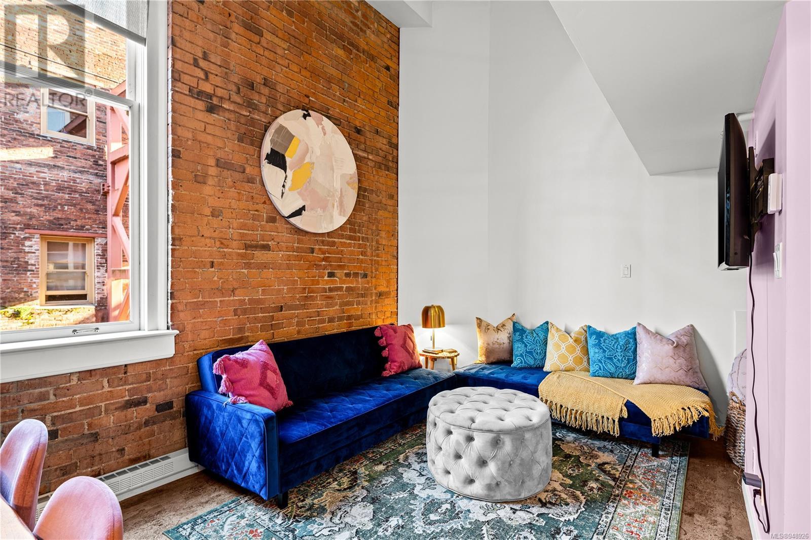 Welcome to The Leiser, a historic brick building nestled in the heart of Downtown Victoria! Originally constructed in 1896, this iconic structure underwent a transformation in 2008, evolving into loft-style condos that seamlessly blend architectural heritage with modern finishes. The RENOVATED suite boasts 14 ft. ceilings adorned with soaring original windows framed in restored wood casings, as well as meticulously restored brickwork. Inside, discover chic design, in-suite laundry, & a stylish kitchen with quartz countertops. Building amenities include bike storage, a separate storage locker, & a ROOFTOP patio offering breathtaking 360-degree OCEAN and CITY VIEWS. Pets are welcome! Just steps away from the stunning waterfront walkway, vibrant Chinatown, & all the downtown shops, restaurants, & attractions, this property invites you to embrace the quintessential biking/walking lifestyle while owning a piece of the city's rich history. (id:22211)