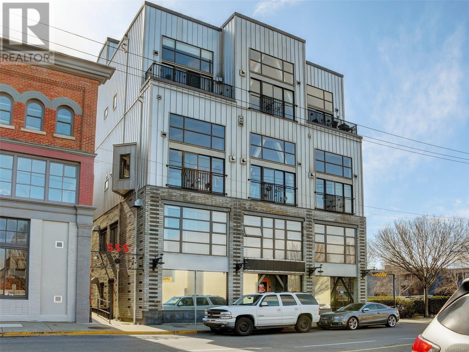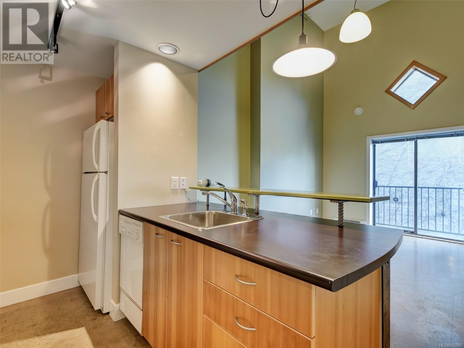 A very cool loft styled condo located in Victoria's historic Chinatown within minutes to the water. With a live/work zoning, this great open concept unit provides large windows, concrete floors and a great floor plan. The living room has a gas fireplace, polished concrete floors, 16' ceilings, large windows and a Juliet balcony. There is a spacious upper loft bedroom with ample closets. This is one of the rare units that comes with a parking space. The suite has in-suite laundry & the building provides separate storage, secured parking, pets (no size restriction), no rental nor age restrictions and a roof top deck with fireplace & ocean views. The surrounding vibrant area provides great restaurants, shopping, pubs, kayak rentals, galleries and easy city walking and biking. (id:22211)