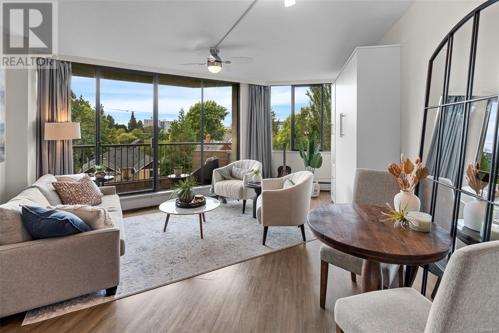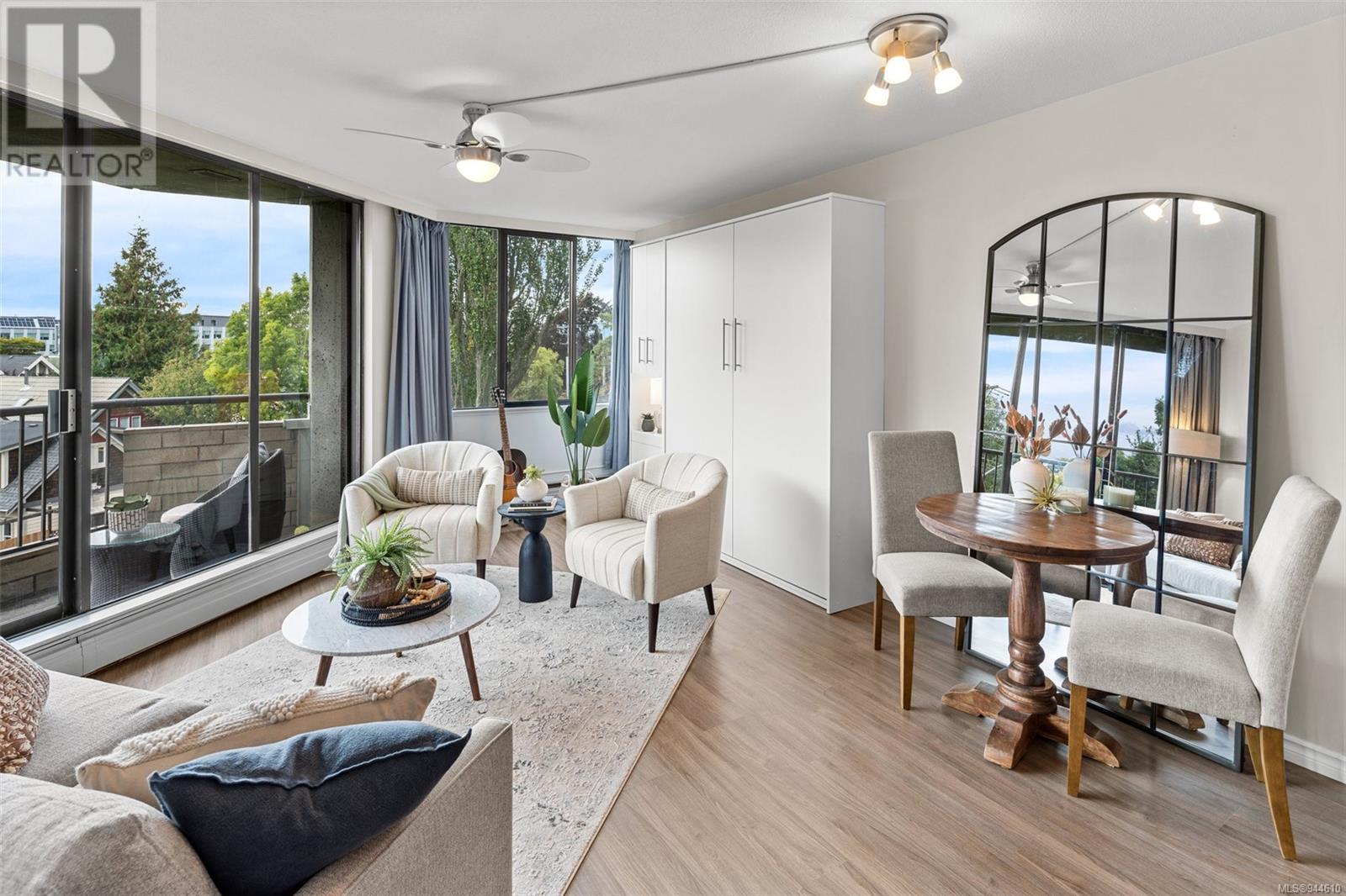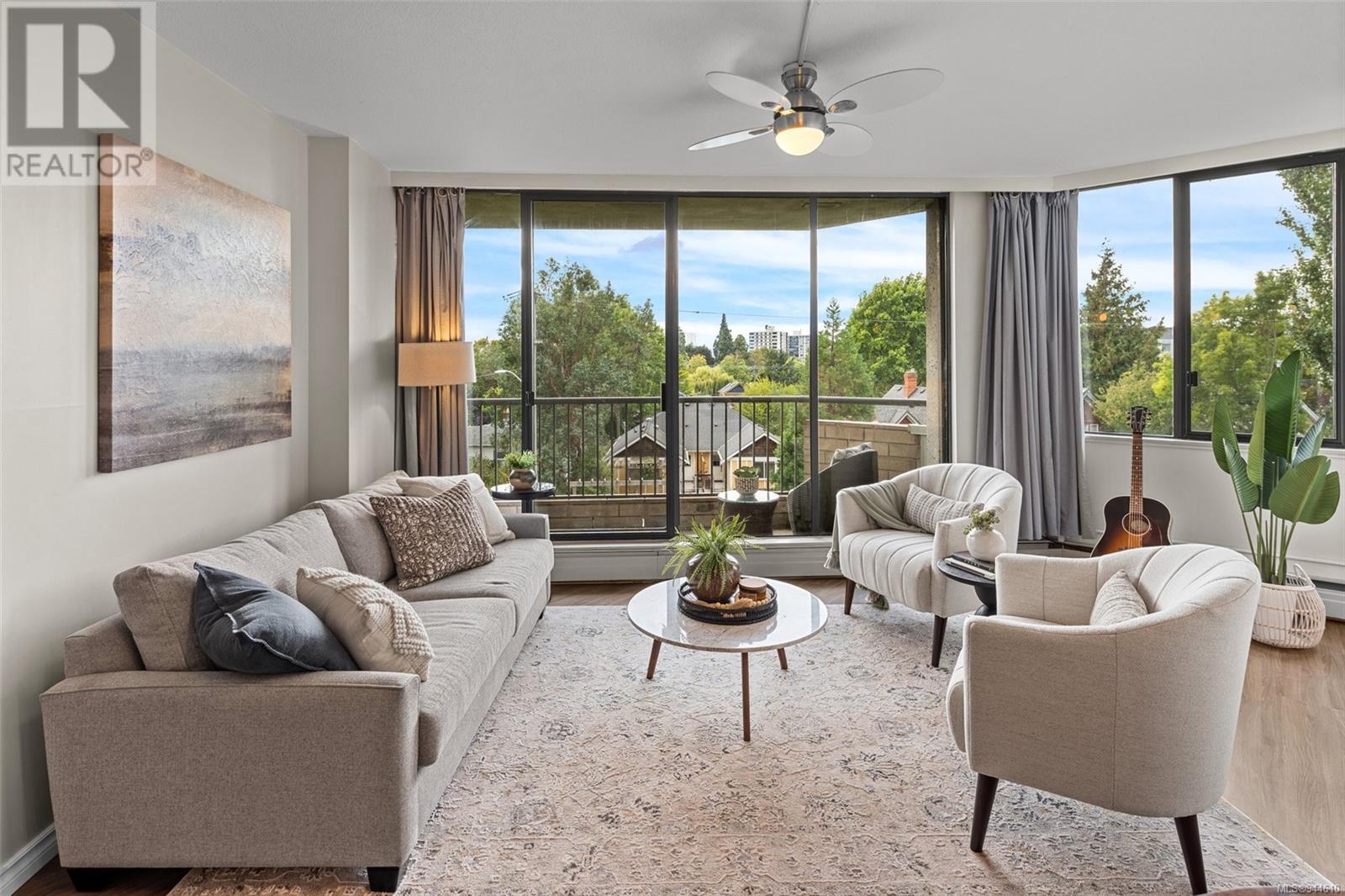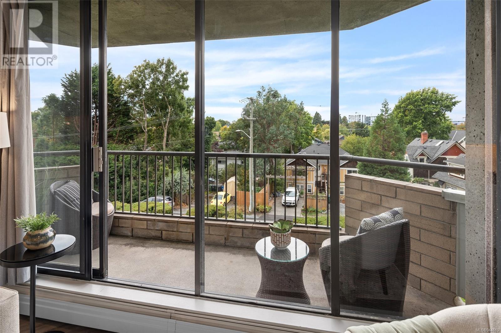 Welcome to the Roberts House Condominiums in beautiful James Bay where you’ll find this lovely west-facing one-bedroom condo that overlooks beautiful lush green space & heritage homes. Only steps away from the iconic Beacon Hill Park, tree-lined streets & quaint restaurants, this charming home awaits. Beautiful waterfront viewing areas are also just a short walk away along with the best shopping & amenities Victoria has to offer. This charming one-bedroom is open & airy with large floor-to-ceiling windows that have sliders from both the living room & bedroom, as well as a Murphy bed for guests included in the unit. Enjoy an indoor pool, hot tub, sauna, fitness studio, common room/entertainment space, guest suites, workshop, garden plots, and access to an on-site manager. Plus a private storage locker and underground parking for one vehicle are also included! A location that can only be described as ideal for its convenience to embracing the downtown lifestyle with the added benefit of a tranquil living space. A great place to call home! (id:22211)