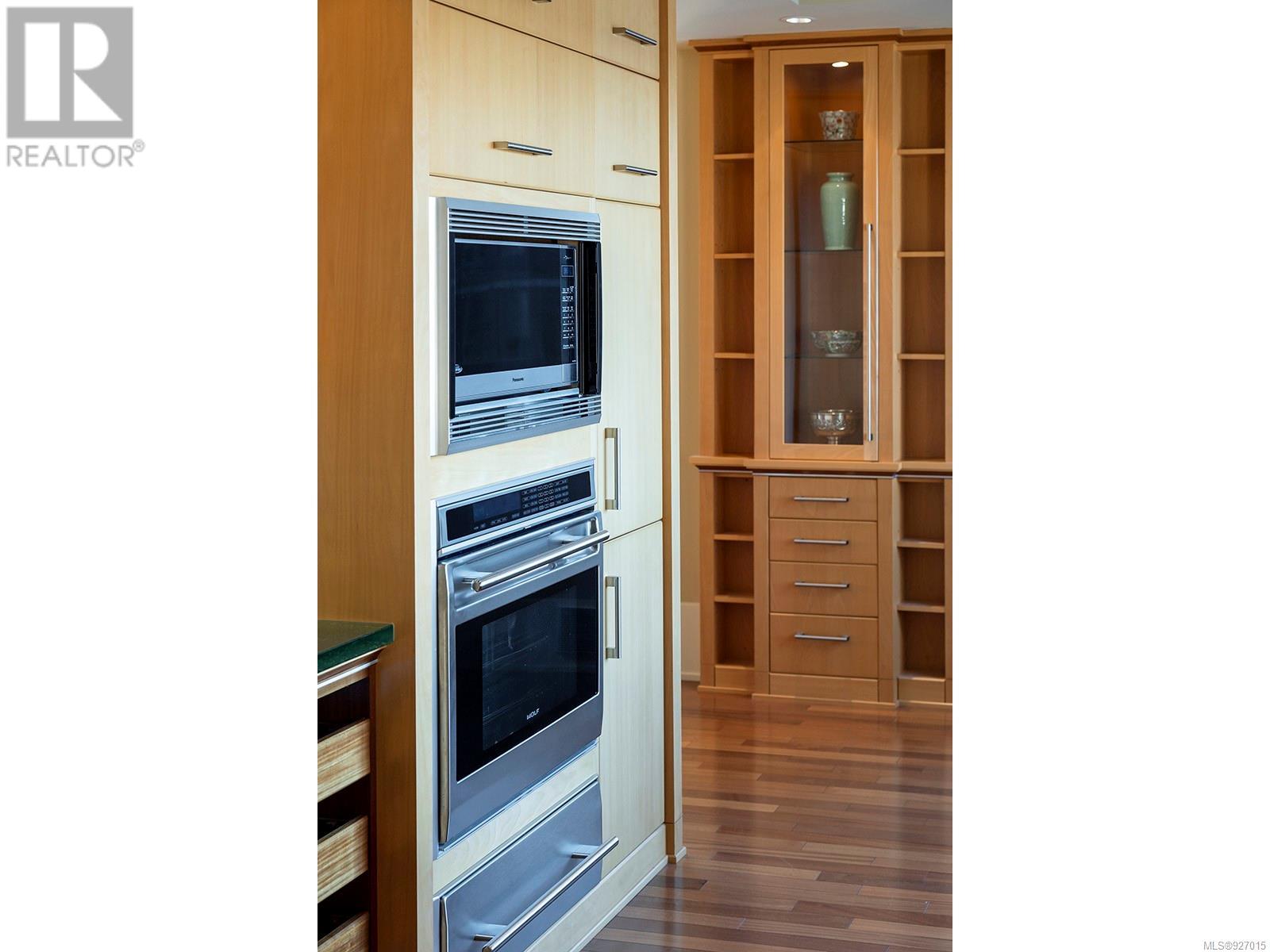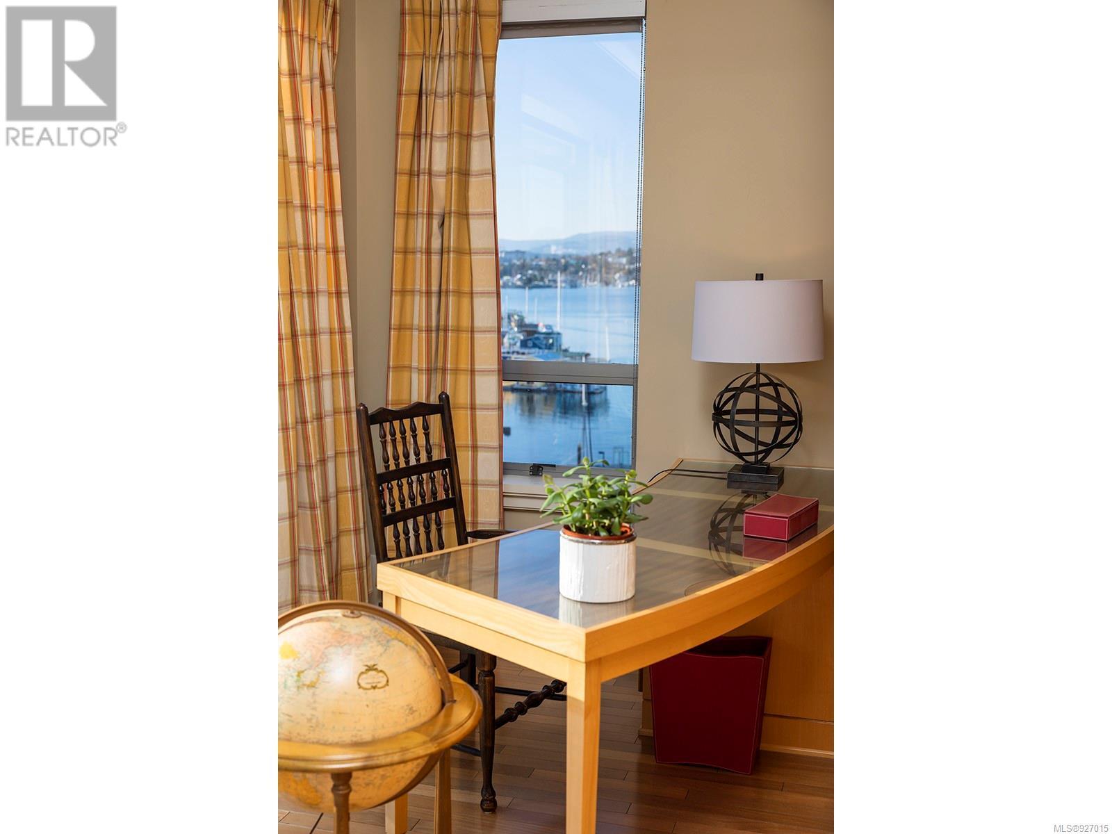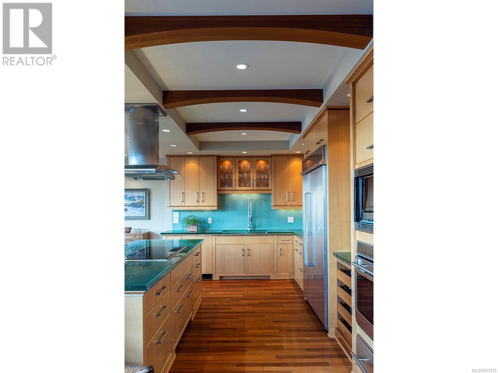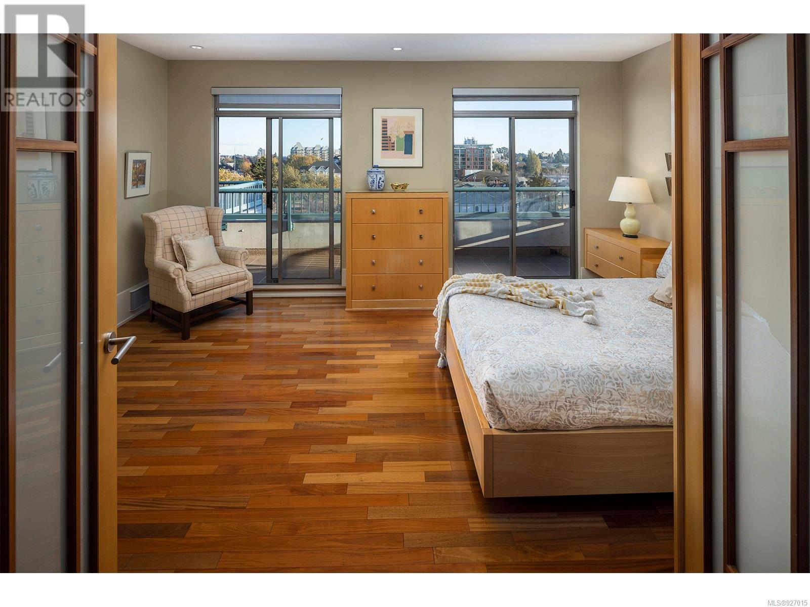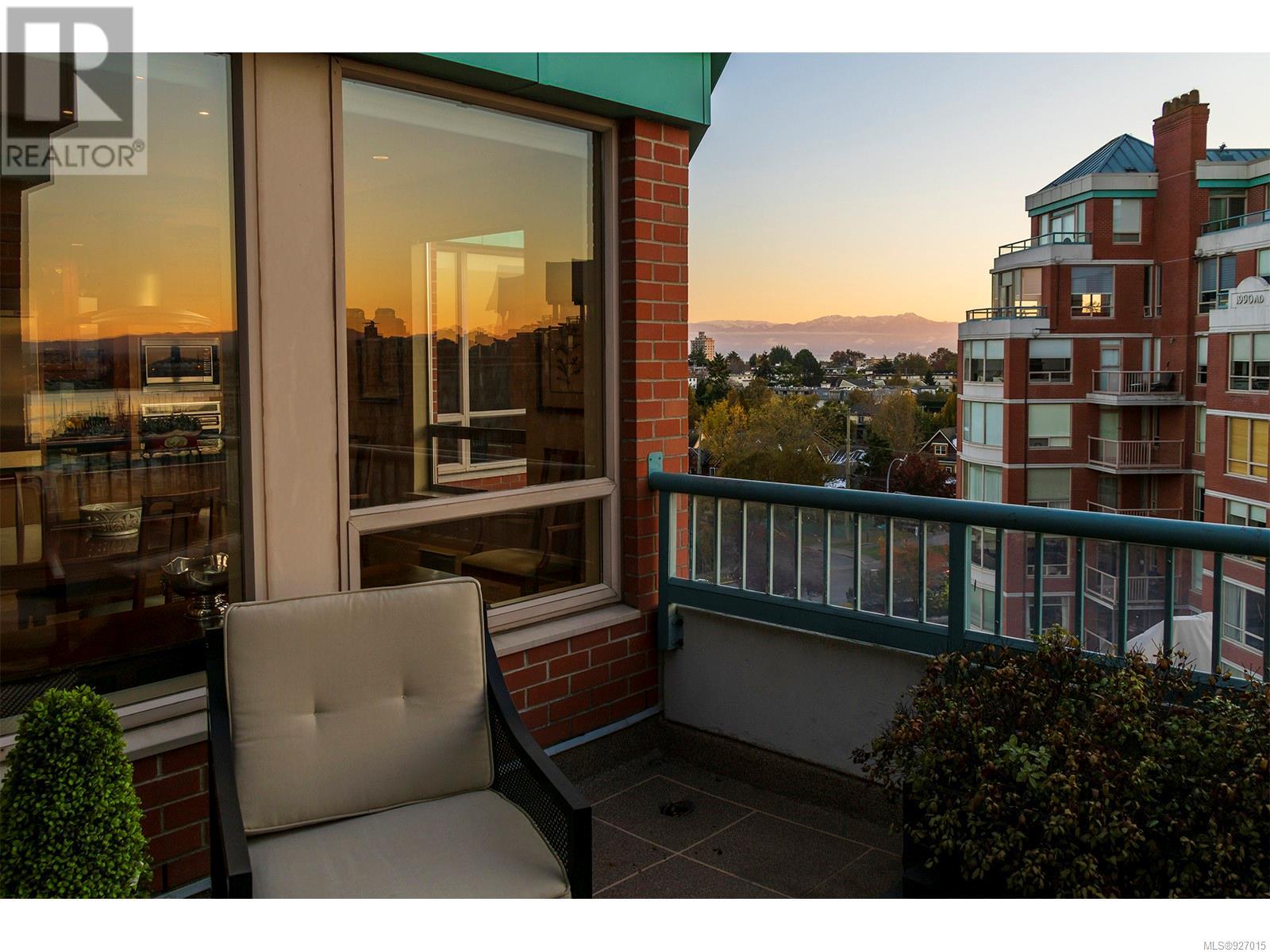 Timeless elegance on Victoria’s famed Inner Harbour. This rare waterfront penthouse condominium with incredible ocean views offers 2 bedrooms plus a den, 3 bathrooms and over 3000 square feet of indoor and outdoor living space. The open concept kitchen with custom artisanal glass slab countertops is a chef’s dream with Wolfe stovetop, oven and warming drawer, Bosch dishwasher and KitchenAid fridge. An abundance of millwork and custom cabinetry, solid wood Craftsman inspired doors, sapele mahogany flooring and heated natural stone floors in the bathrooms add to the overall aesthetic of this exquisite home. Relax in your spacious primary suite with its stunning 14’ barrel ceiling or enjoy al fresco dining on one of your 4 private patios. Steel and concrete building, 2 parking stalls and well-run strata. Ideal location is an easy stroll to shops, parks, groceries, restaurants and downtown Victoria. (id:22211)