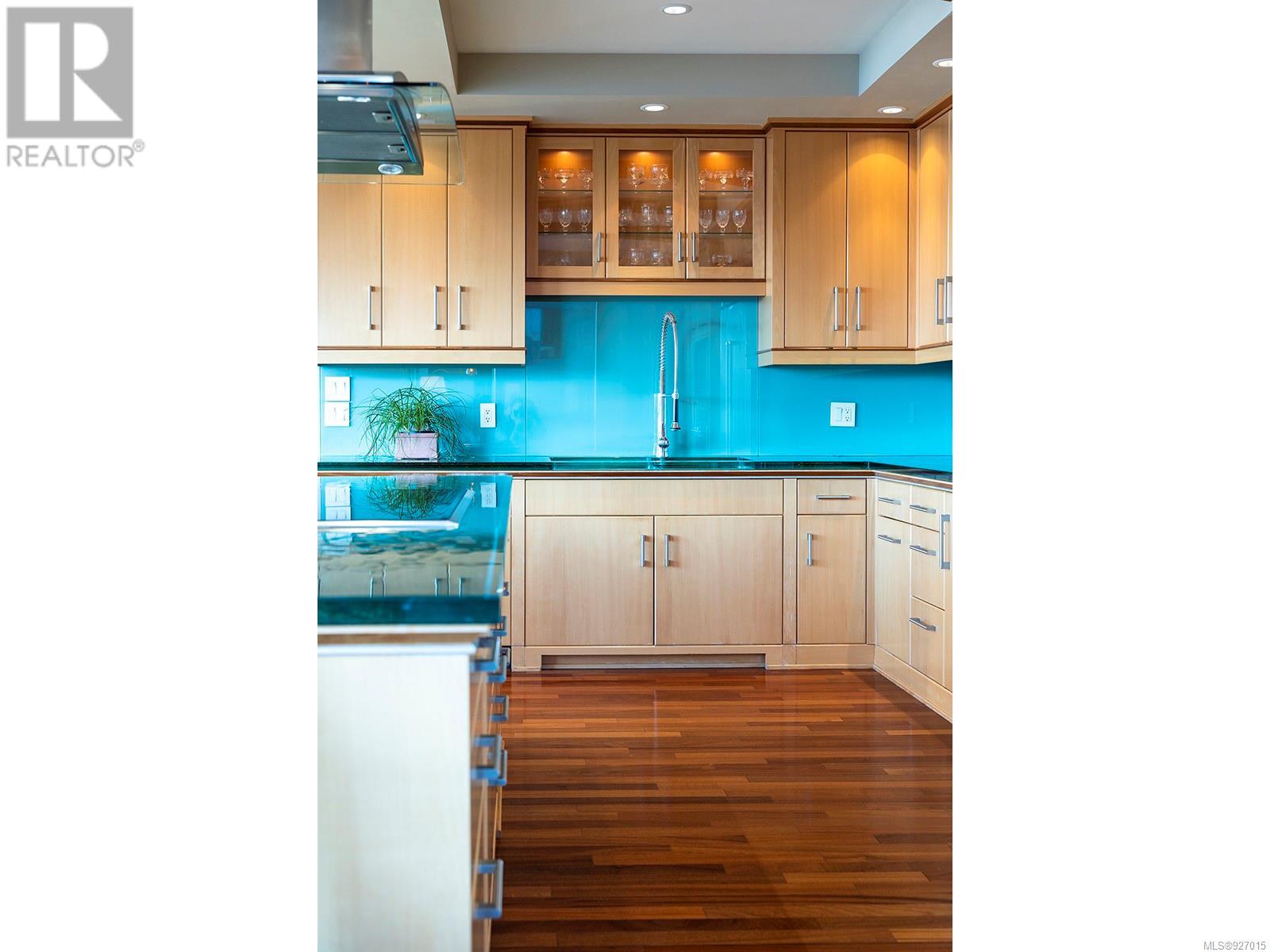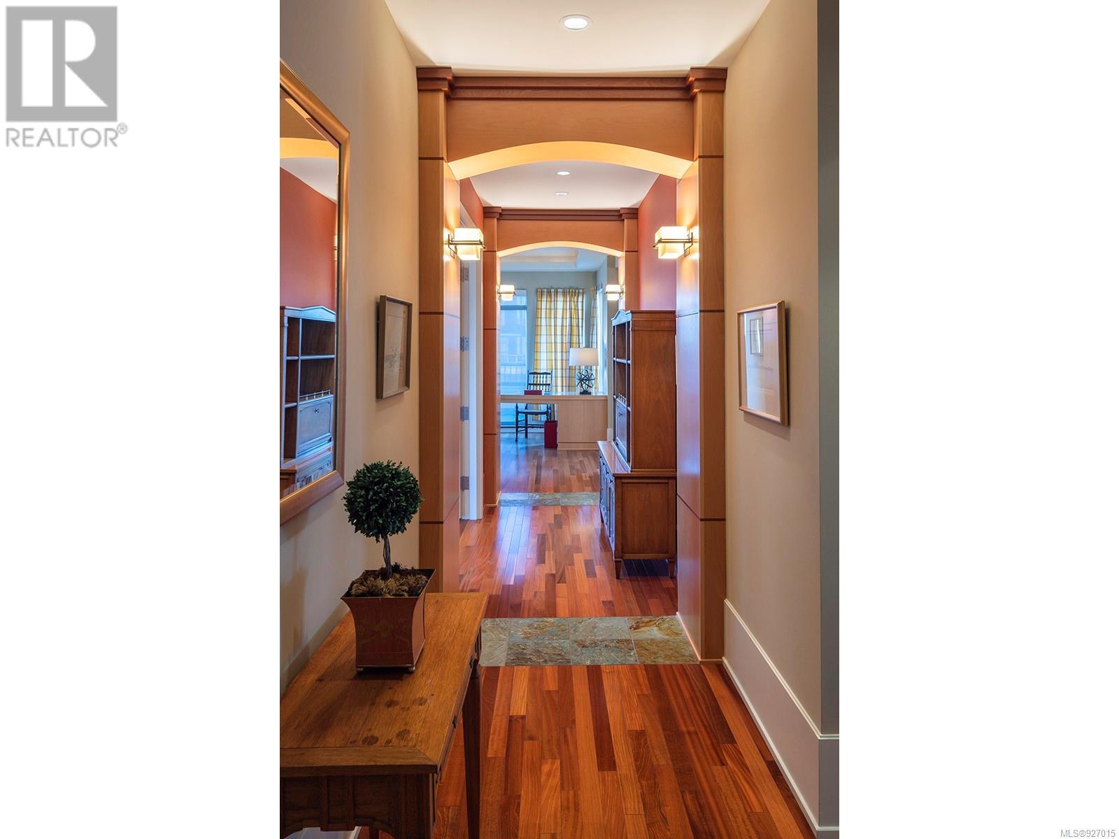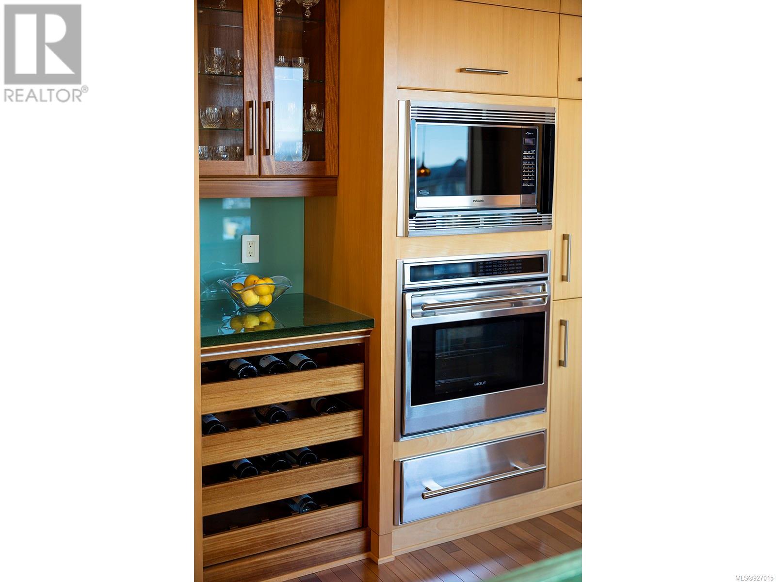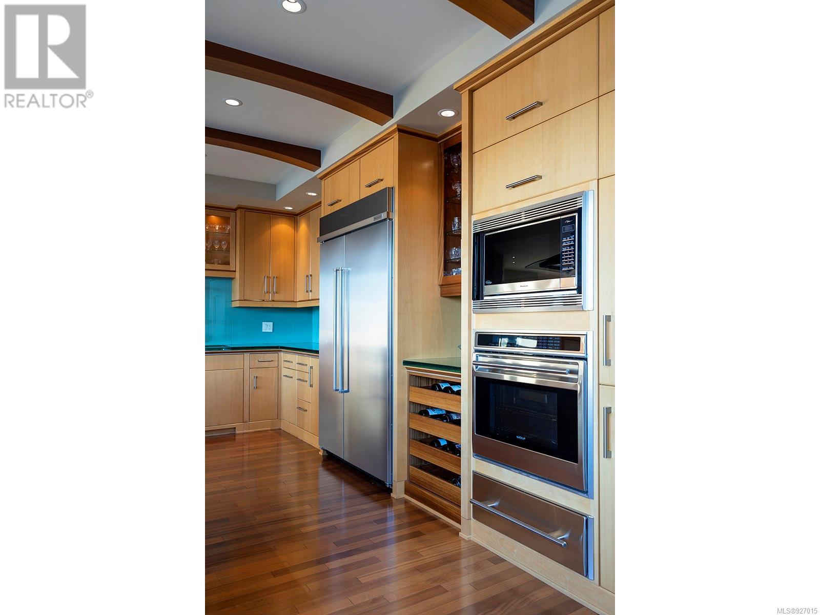 Timeless elegance on Victoria’s famed Inner Harbour. This rare waterfront penthouse condominium with incredible ocean views offers 2 bedrooms plus a den, 3 bathrooms and over 3000 square feet of indoor and outdoor living space. The open concept kitchen with custom artisanal glass slab countertops is a chef’s dream with Wolfe stovetop, oven and warming drawer, Bosch dishwasher and KitchenAid fridge. An abundance of millwork and custom cabinetry, solid wood Craftsman inspired doors, sapele mahogany flooring and heated natural stone floors in the bathrooms add to the overall aesthetic of this exquisite home. Relax in your spacious primary suite with its stunning 14’ barrel ceiling or enjoy al fresco dining on one of your 4 private patios. Steel and concrete building, 2 parking stalls and well-run strata. Ideal location is an easy stroll to shops, parks, groceries, restaurants and downtown Victoria. (id:22211)