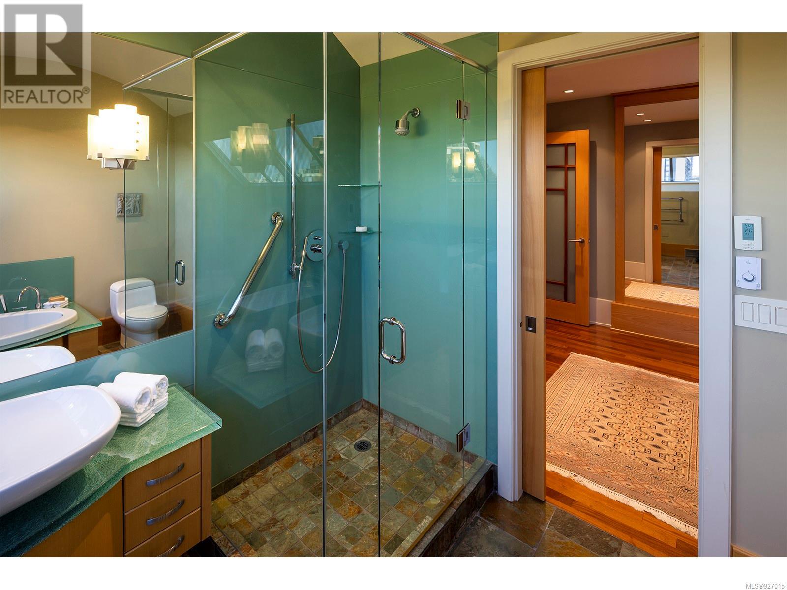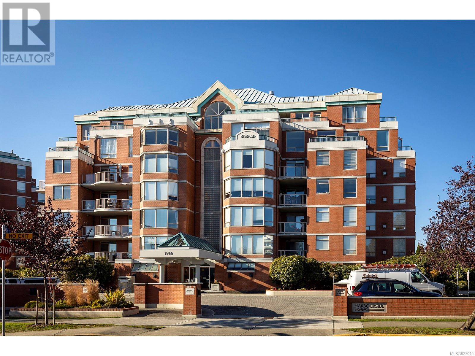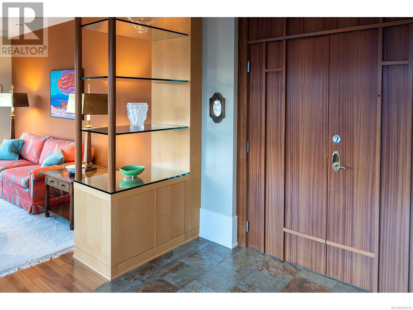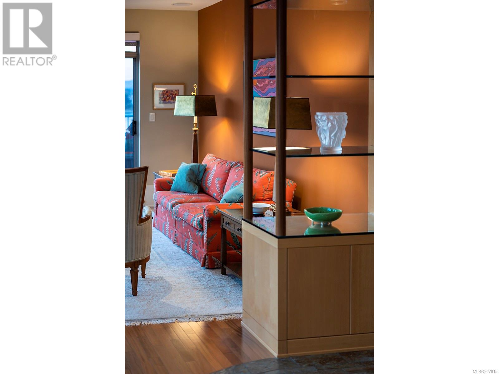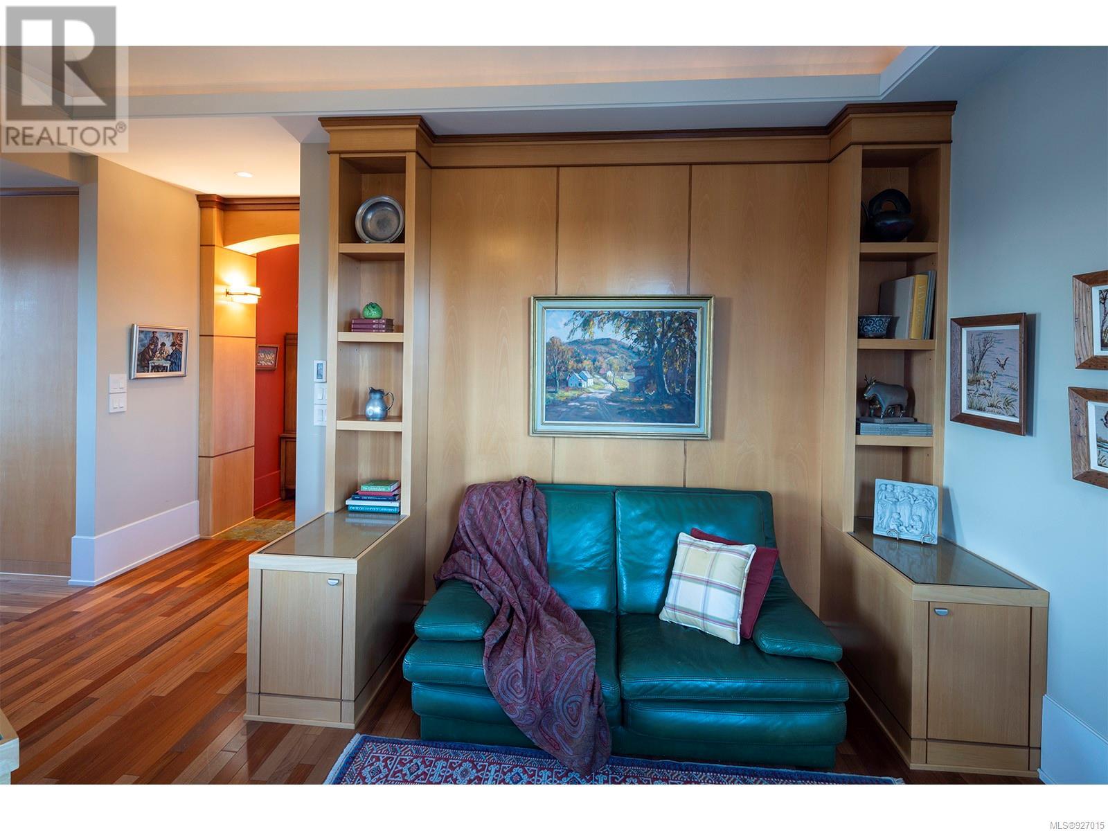 Timeless elegance on Victoria’s famed Inner Harbour. This rare waterfront penthouse condominium with incredible ocean views offers 2 bedrooms plus a den, 3 bathrooms and over 3000 square feet of indoor and outdoor living space. The open concept kitchen with custom artisanal glass slab countertops is a chef’s dream with Wolfe stovetop, oven and warming drawer, Bosch dishwasher and KitchenAid fridge. An abundance of millwork and custom cabinetry, solid wood Craftsman inspired doors, sapele mahogany flooring and heated natural stone floors in the bathrooms add to the overall aesthetic of this exquisite home. Relax in your spacious primary suite with its stunning 14’ barrel ceiling or enjoy al fresco dining on one of your 4 private patios. Steel and concrete building, 2 parking stalls and well-run strata. Ideal location is an easy stroll to shops, parks, groceries, restaurants and downtown Victoria. (id:22211)