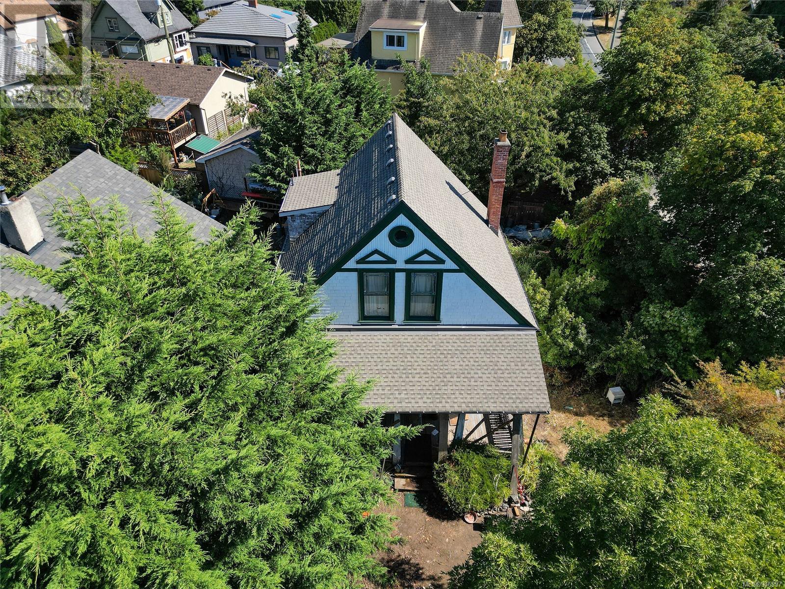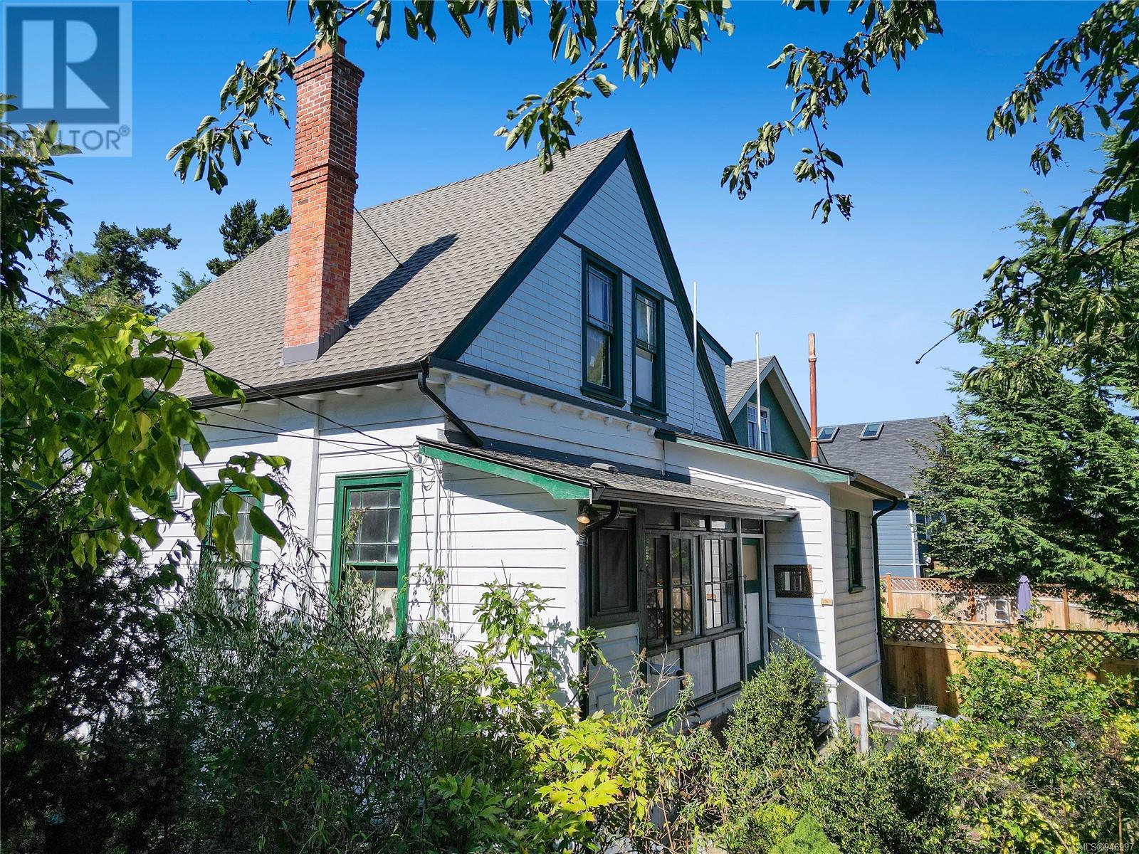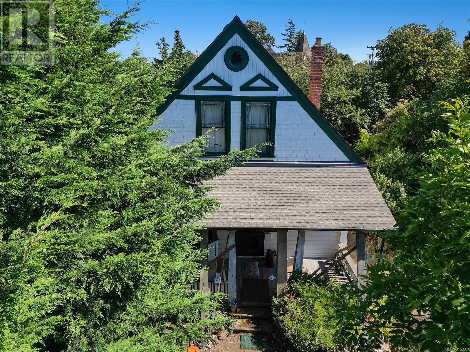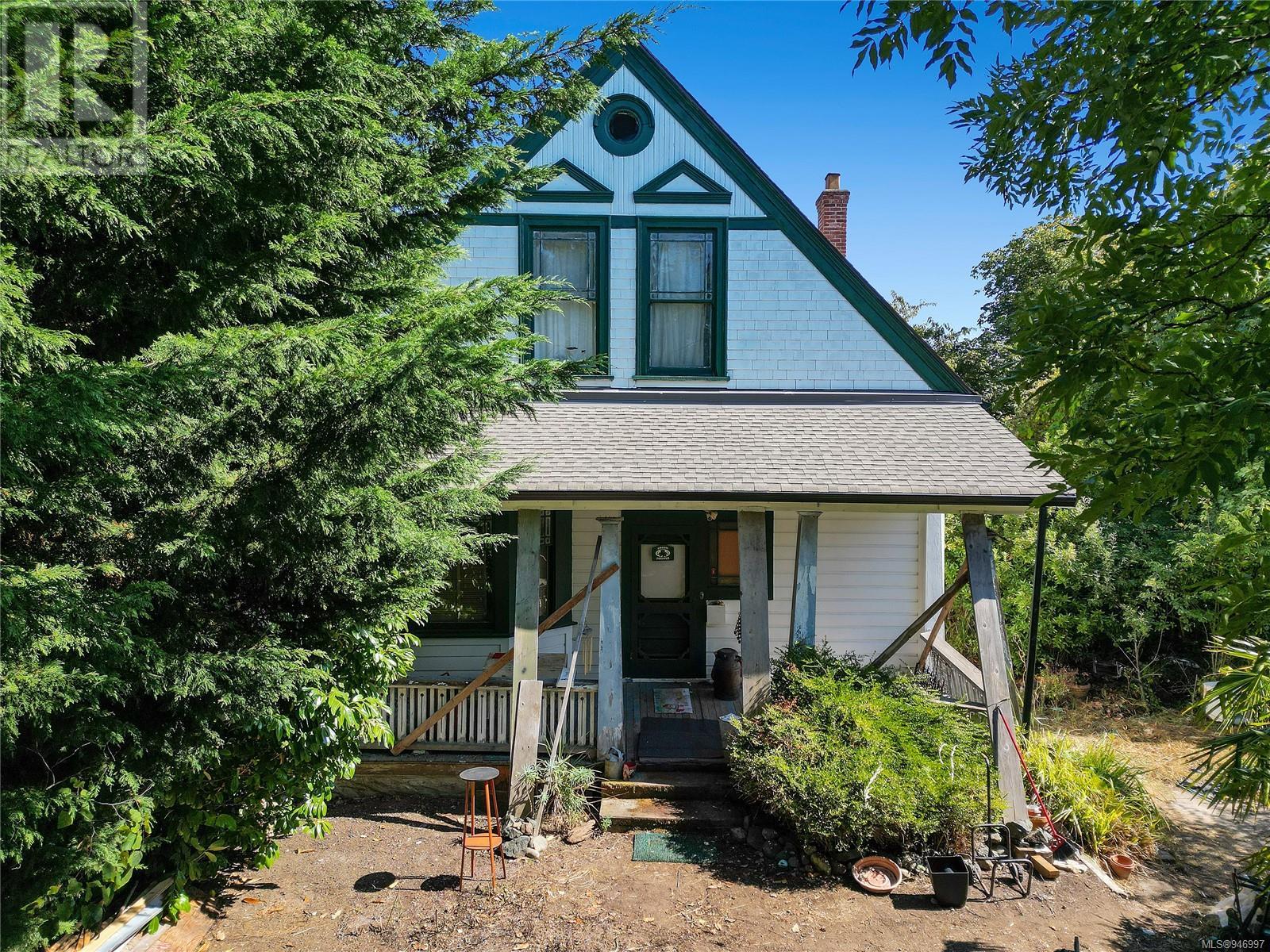 The ''Burleith Gatehouse'' was built In 1901 to service James Dunsmuir's family estate at the time; Burleith Estate. The beautiful stone wall along with the gateposts and iron gate marked the entrance to the 20-acre Burleith estate. The home has Heritage significance but is not currently designated as a heritage property. The large corner lot has a sunny South exposure and two separate driveways. Located conveniently close to downtown and the gorge waterway with public access and a dock at Banfield park. There are shopping options near by and a local coffee shop, bakery and barber just down the road. The home features ten foot ceilings, original wood finishing and floors with all the charm of yesteryear and retains some original features including a full-width veranda, round window, and flattened pediments in the gable. The home has some updates including a new (Feb 2023) electric forced air furnace, a newer roof, but otherwise is in a neglected state. The historical value and charm of this home make it a unique offering so come with your imagination open. Property measurements are taken from municipal record and subdivision plan. Square feet of the house is approximate. If important to a buyer, any and all measurements should be independently verified. Access to the property is by appointment only, please do not walk the property without permission. Call your realtor today! (id:22211)