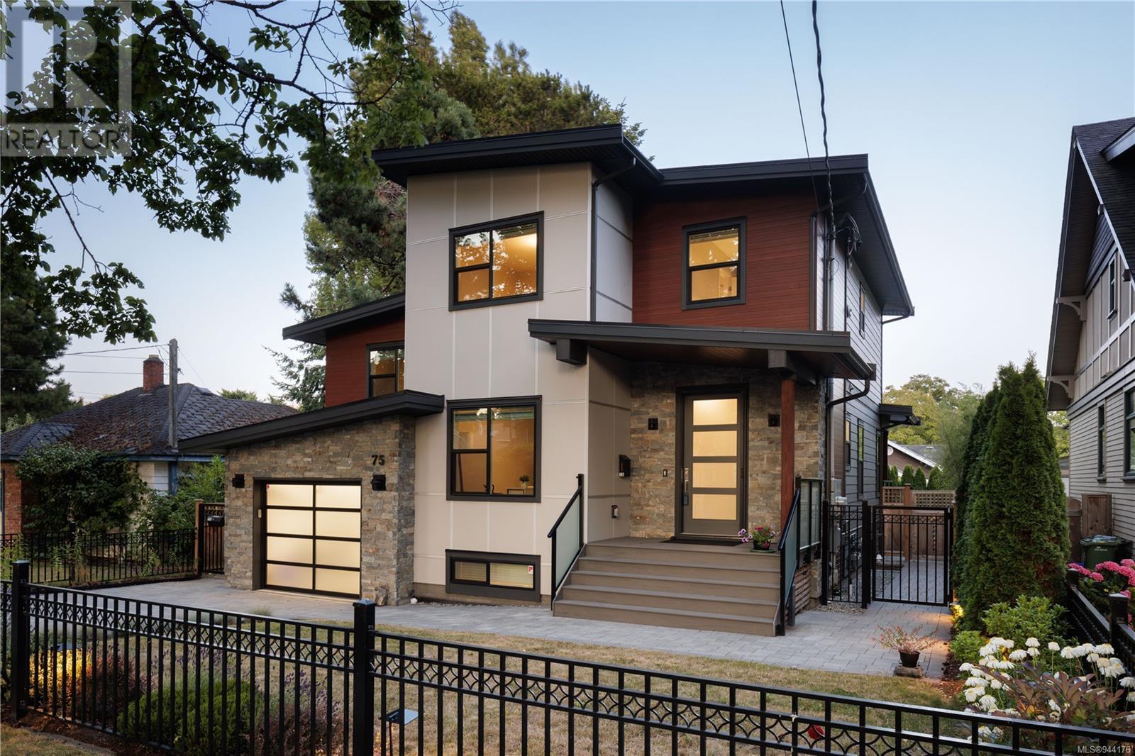 Welcome to 75 Pilot street, a favourite in the highly sought after neighbourhood of James Bay! This home is a 2019 build, has extremely high end finishings throughout and includes a gorgeous one bedroom legal suite below. As you enter into the front foyer on the main level you will find a large office or bedroom with custom built ins, a beautiful 3 piece bathroom with an oversized shower, and a bright open concept living area for all the entertainers out there. The kitchen is a chefs dream with a huge centre island, sleek granite counter tops, high end appliances, gas stove, and endless storage. The living and dining areas are saturated in natural light with calming views of the private backyard. You’ll love the big sliding glass doors off the dining area that give you access to the covered deck for year round enjoyment. The backyard is very low maintenance with synthetic lawn, perennial filled garden beds and even a “catio” for your furry friends. Upstairs you’ll find the exceptional primary bedroom with glimpses of the ocean, a spa like ensuite, huge walk in closet and even a private safe. Outside of the primary you have two more bedrooms, a generously sized laundry room and beautiful main bathroom for guests. Moving downstairs you have another large bedroom or office included in the main home before getting into the fully self contained one bedroom legal suite!! The suite has been finished just as beautifully as the main home, it has a private entrance, its own laundry and a separate meter. If thats not enough this home has hot water on demand, a security system, an efficient heat pump and even an EV charger. 75 Pilot is just steps from the ocean, Dallas Road and the downtown core. A home like this in such an incredible location doesn’t come around often… you’re not going to want to miss this one! (id:22211)