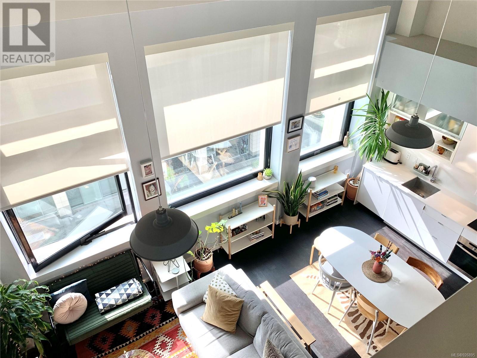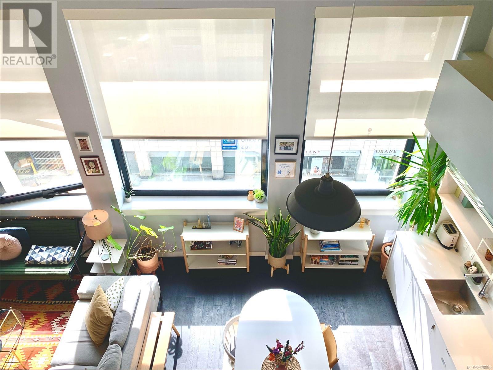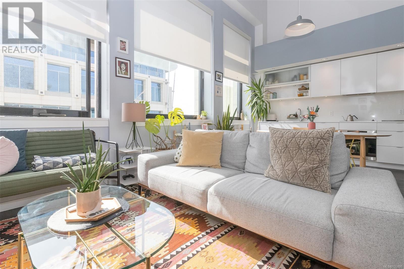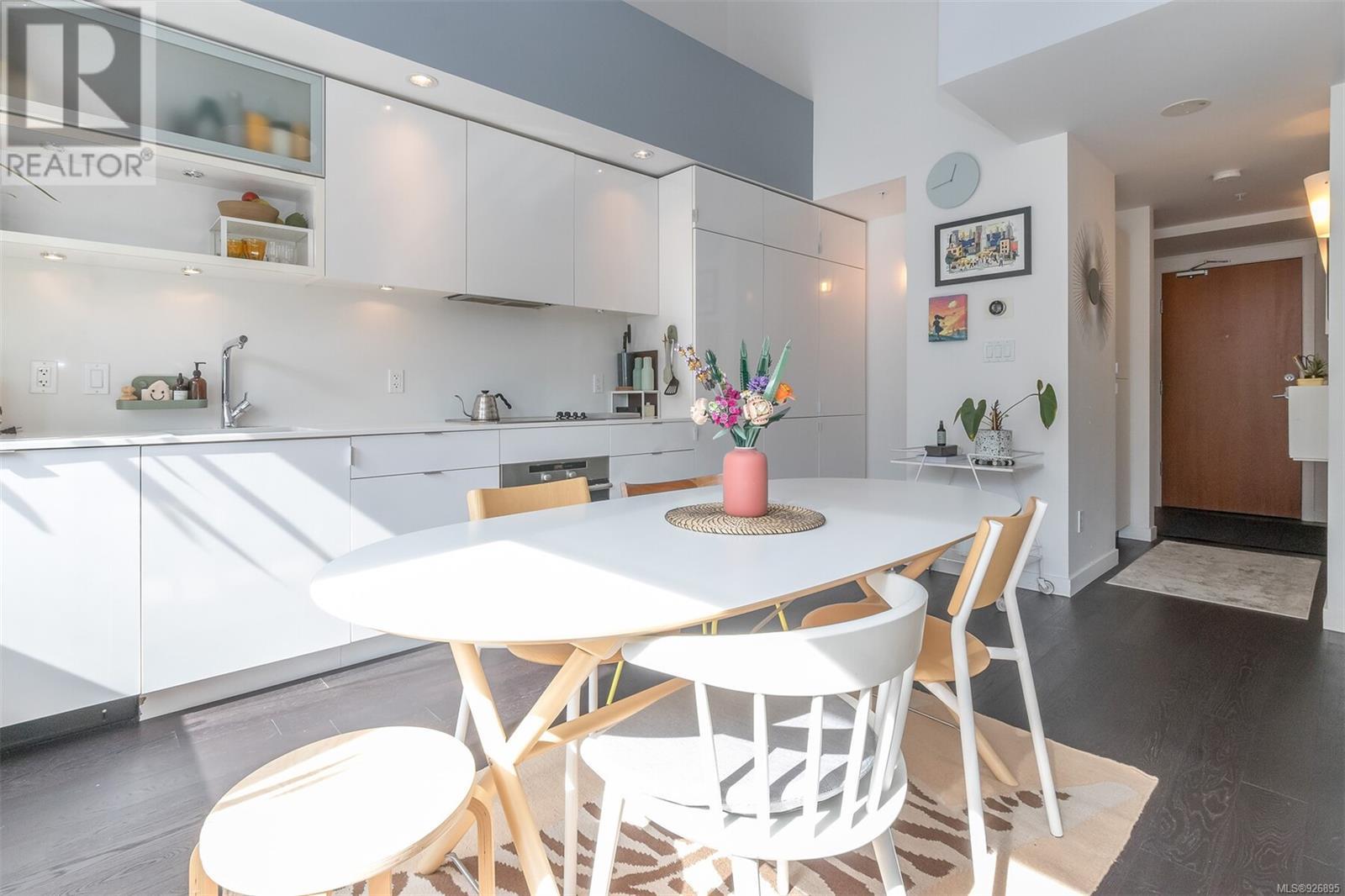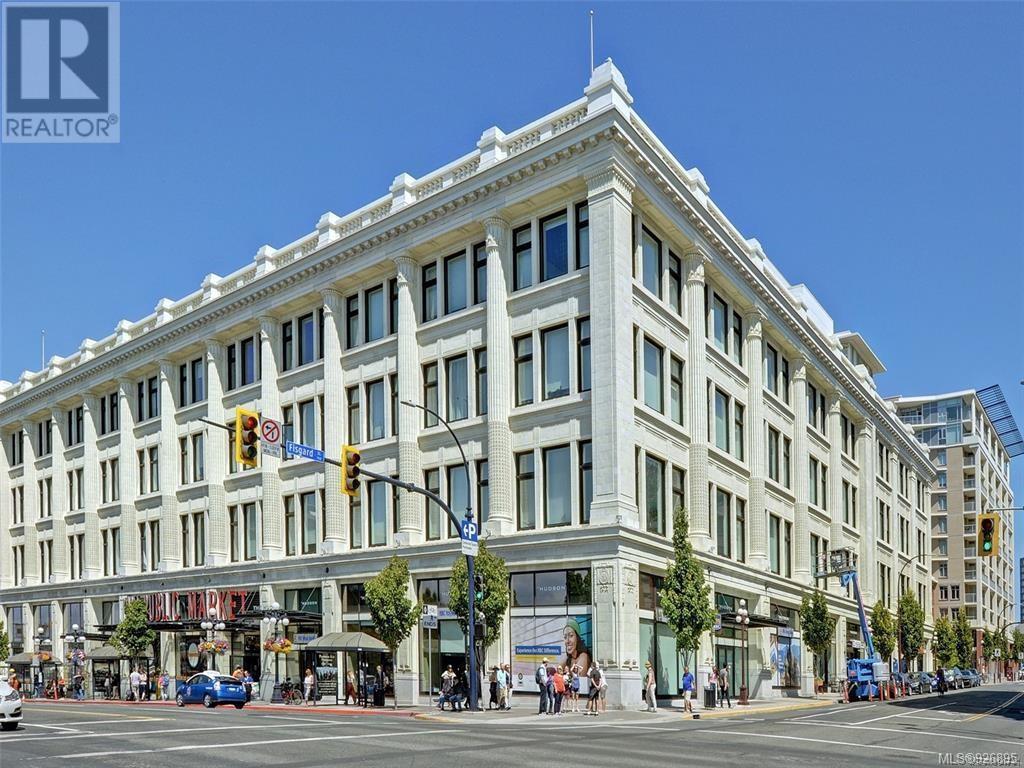 Stunning 2 bedroom/2 bathroom 991 sqft loft home in the iconic Hudson building, a comprehensive transformation of the historic Hudson Bay building in Victoria into modern urban residences. This intelligently designed modern home with 17ft ceiling height boasts geothermal heating & cooling, oversized windows framing the skyline of Victoria, luxurious master loft bedroom suite with radiant in-floor heating. Sleek kitchen cabinetry with top quality Miele appliances, full height pantry storage and insuite washer & dryer. Stunning 14,000 sqft roof top patio with views of city, inner harbour & ocean as well as a common BBQ area for large or intimate gatherings. Secure underground parking stall and storage included as well as pets allowed. Enjoy nearby entertainment, dining and the convenience of downtown living. This elegant and spacious home is not to be missed! (id:22211)