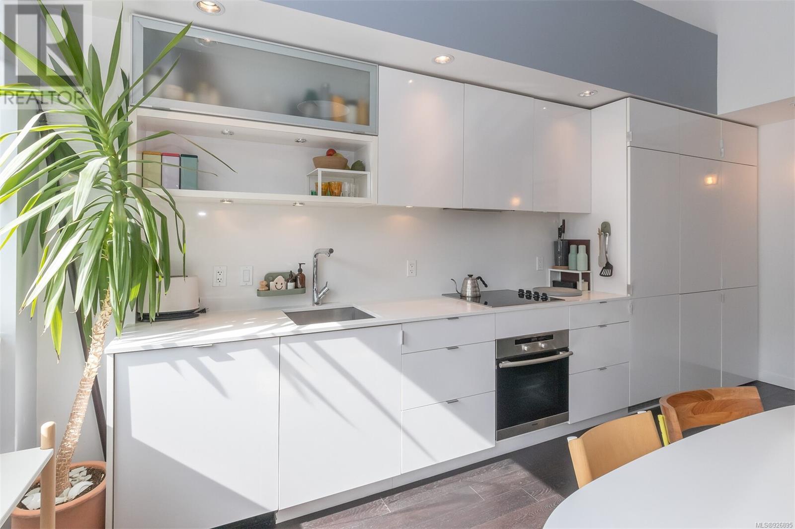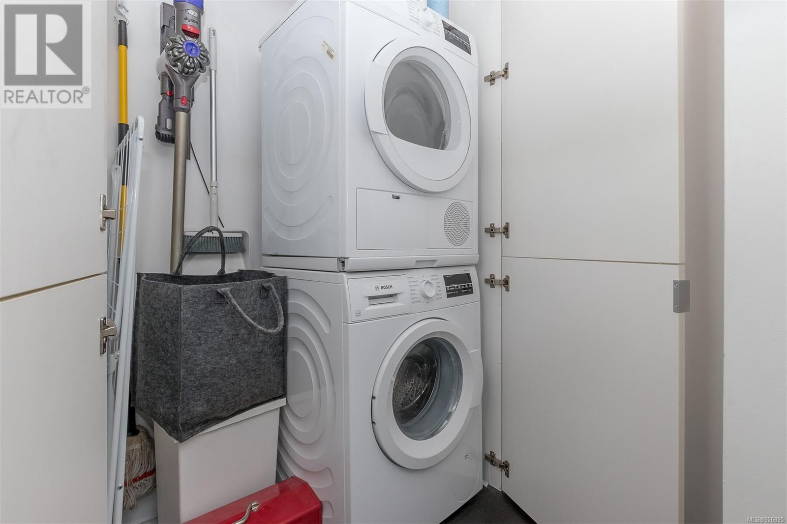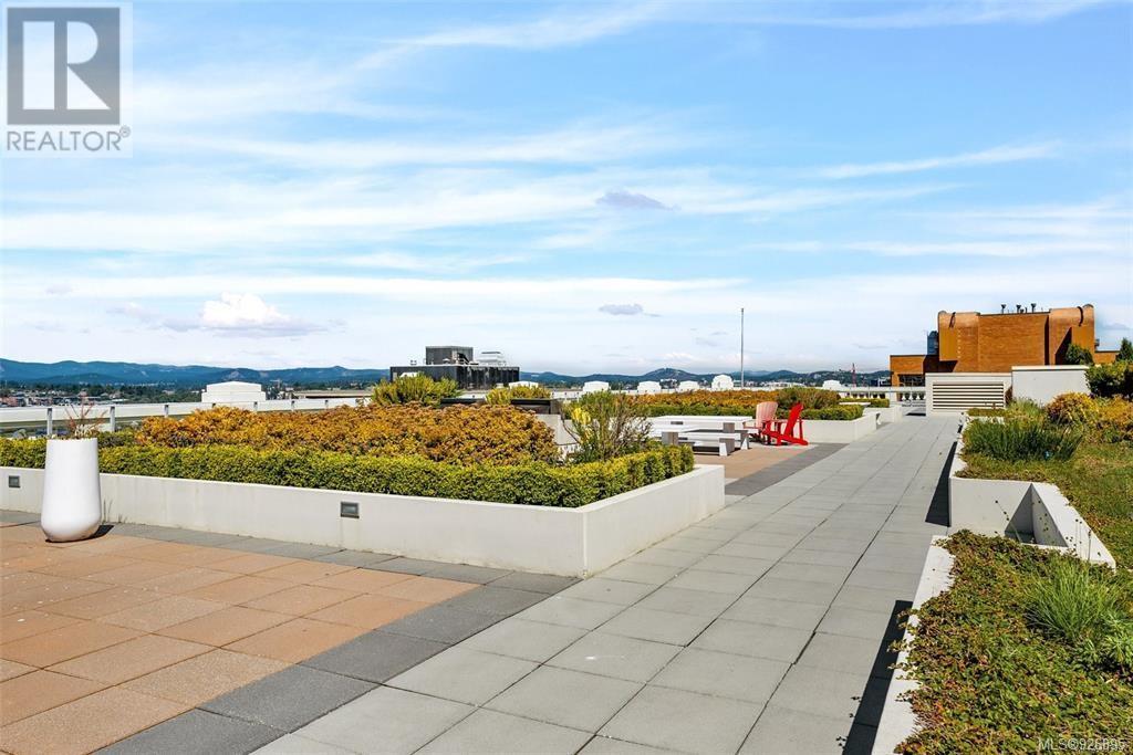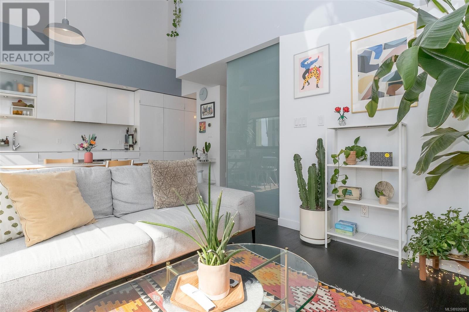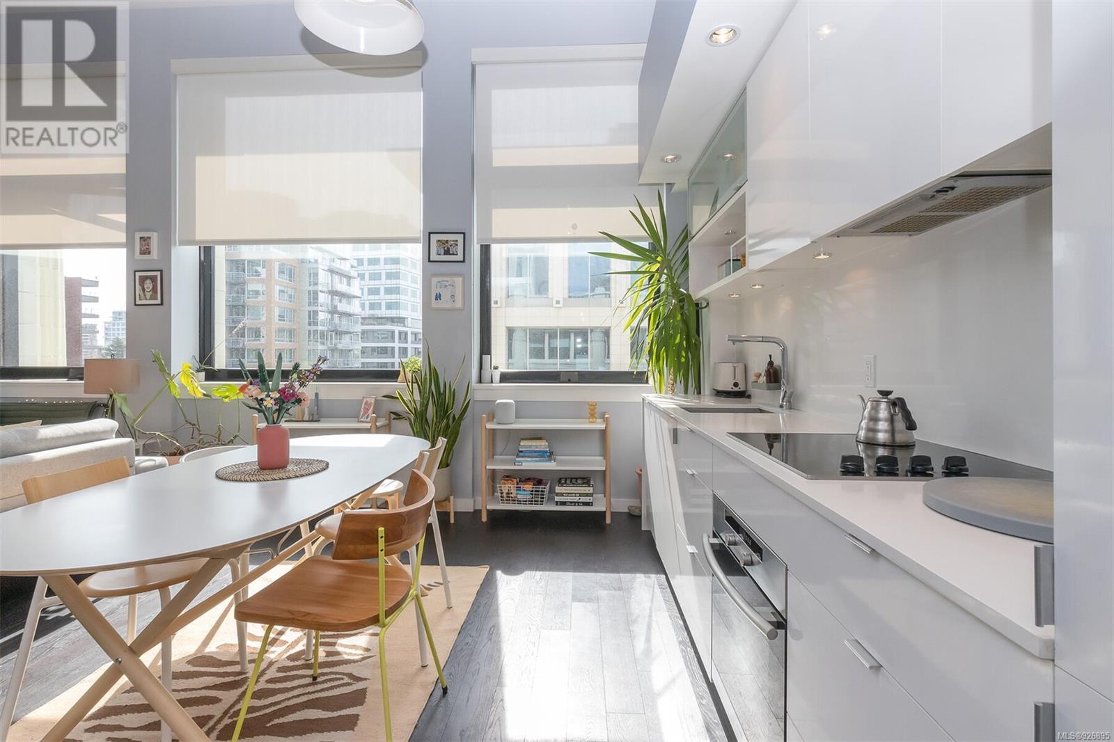 Stunning 2 bedroom/2 bathroom 991 sqft loft home in the iconic Hudson building, a comprehensive transformation of the historic Hudson Bay building in Victoria into modern urban residences. This intelligently designed modern home with 17ft ceiling height boasts geothermal heating & cooling, oversized windows framing the skyline of Victoria, luxurious master loft bedroom suite with radiant in-floor heating. Sleek kitchen cabinetry with top quality Miele appliances, full height pantry storage and insuite washer & dryer. Stunning 14,000 sqft roof top patio with views of city, inner harbour & ocean as well as a common BBQ area for large or intimate gatherings. Secure underground parking stall and storage included as well as pets allowed. Enjoy nearby entertainment, dining and the convenience of downtown living. This elegant and spacious home is not to be missed! (id:22211)