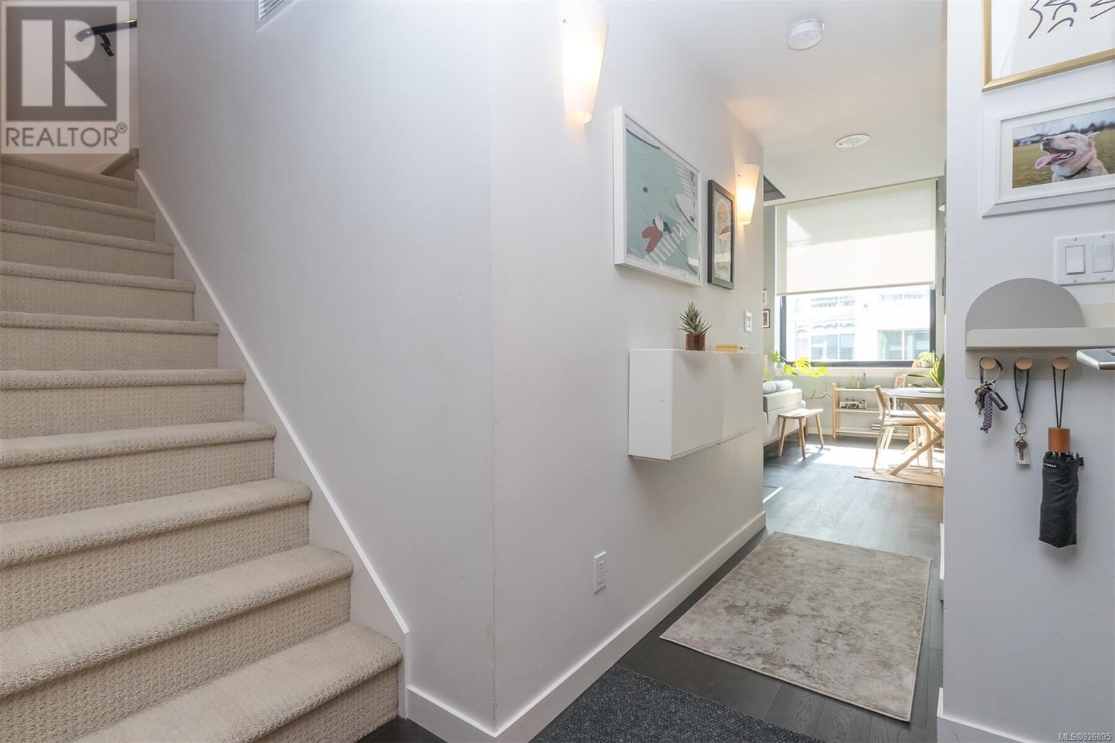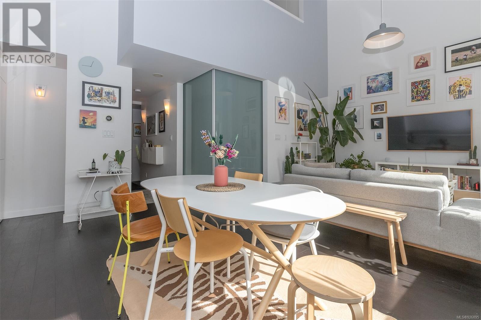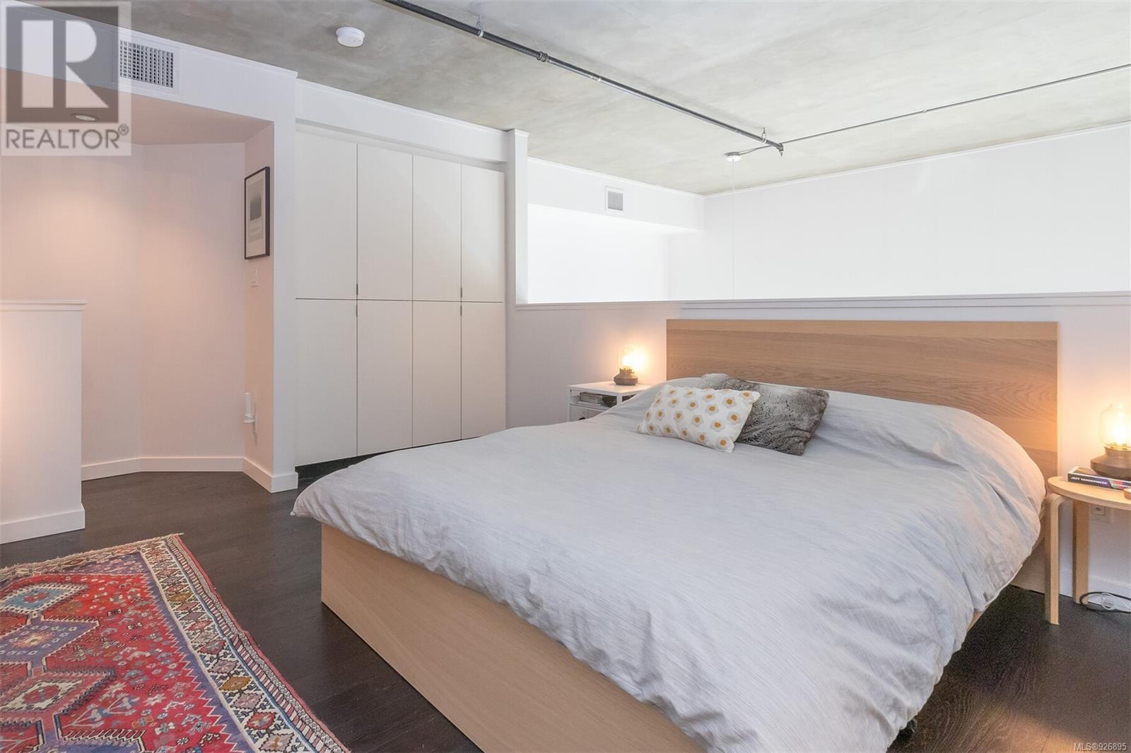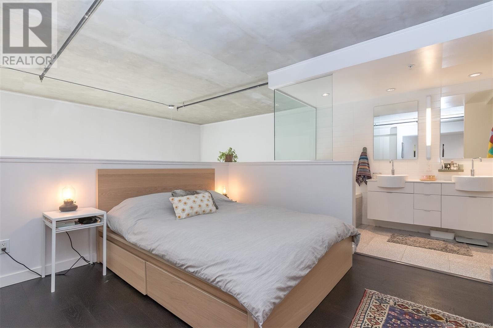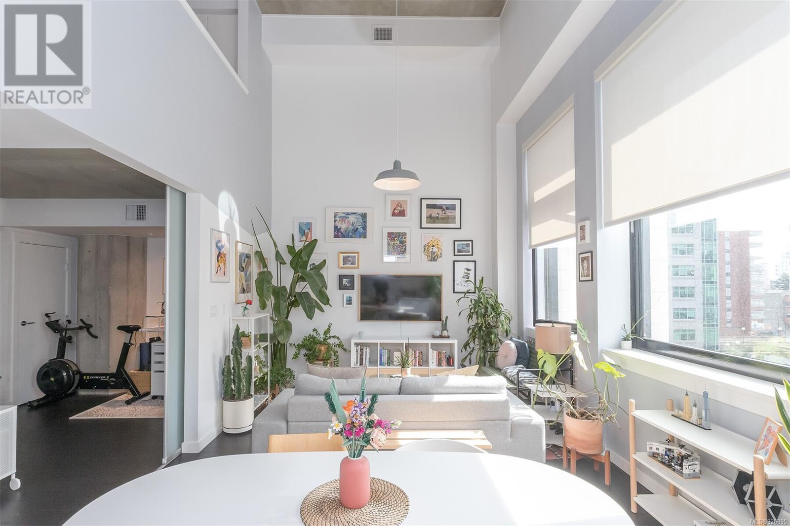 Stunning 2 bedroom/2 bathroom 991 sqft loft home in the iconic Hudson building, a comprehensive transformation of the historic Hudson Bay building in Victoria into modern urban residences. This intelligently designed modern home with 17ft ceiling height boasts geothermal heating & cooling, oversized windows framing the skyline of Victoria, luxurious master loft bedroom suite with radiant in-floor heating. Sleek kitchen cabinetry with top quality Miele appliances, full height pantry storage and insuite washer & dryer. Stunning 14,000 sqft roof top patio with views of city, inner harbour & ocean as well as a common BBQ area for large or intimate gatherings. Secure underground parking stall and storage included as well as pets allowed. Enjoy nearby entertainment, dining and the convenience of downtown living. This elegant and spacious home is not to be missed! (id:22211)