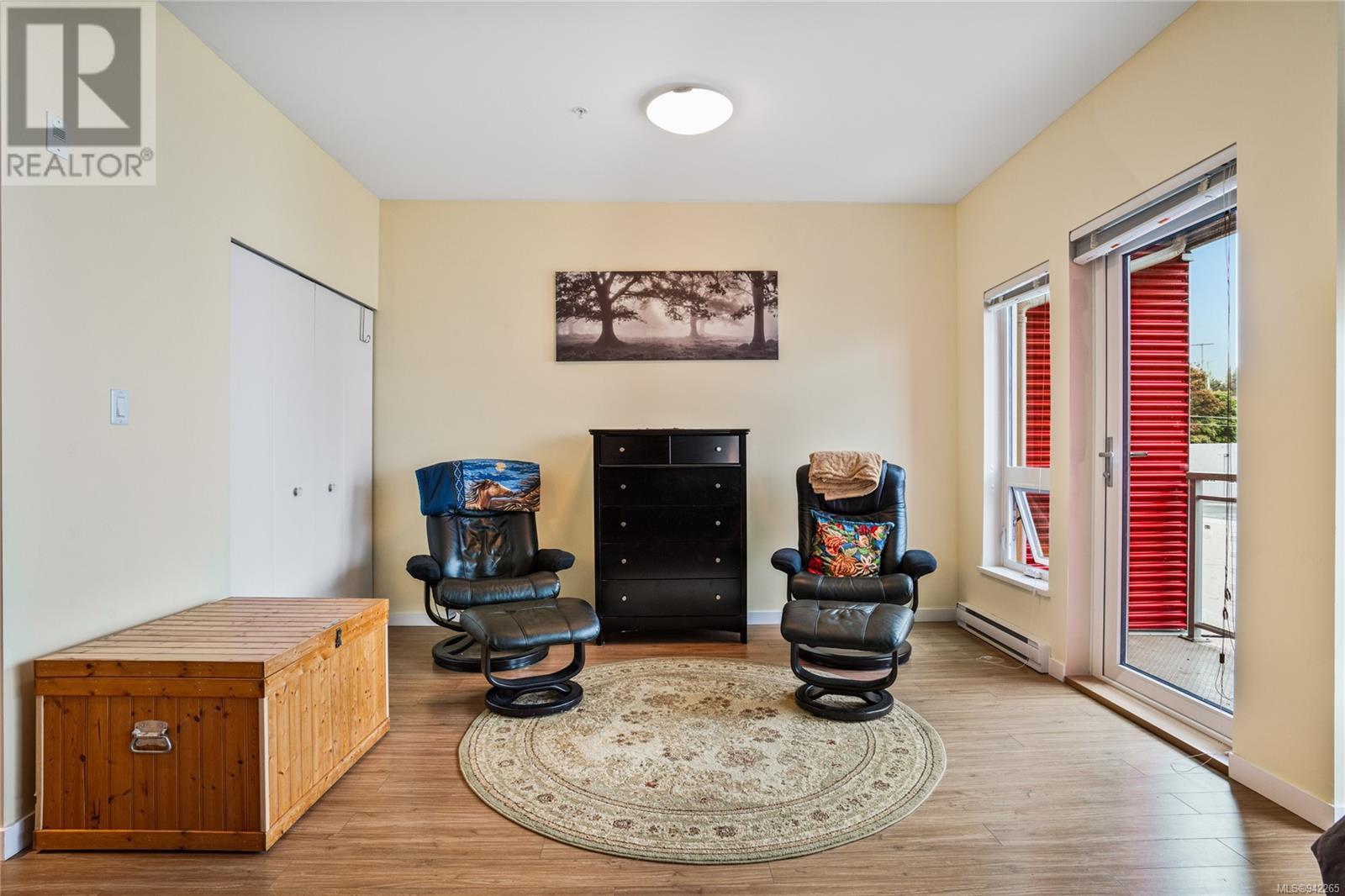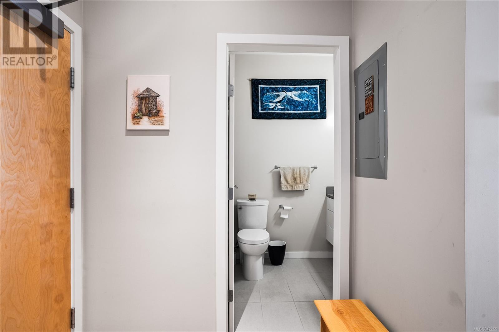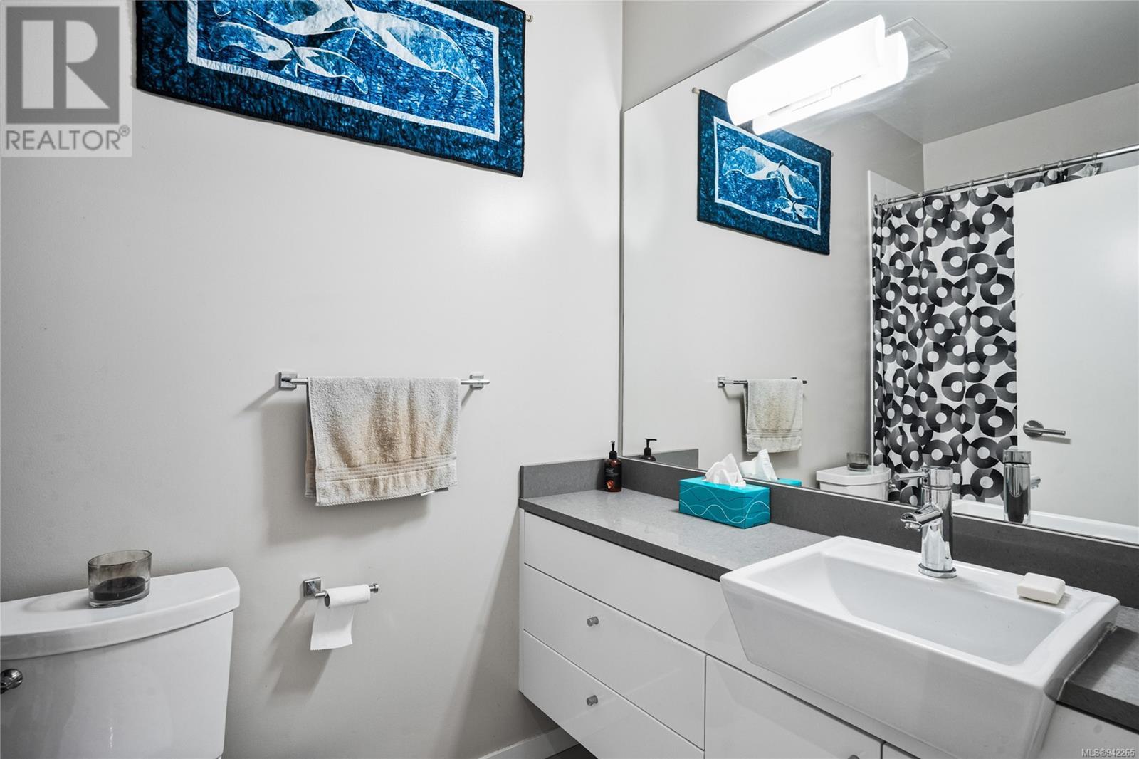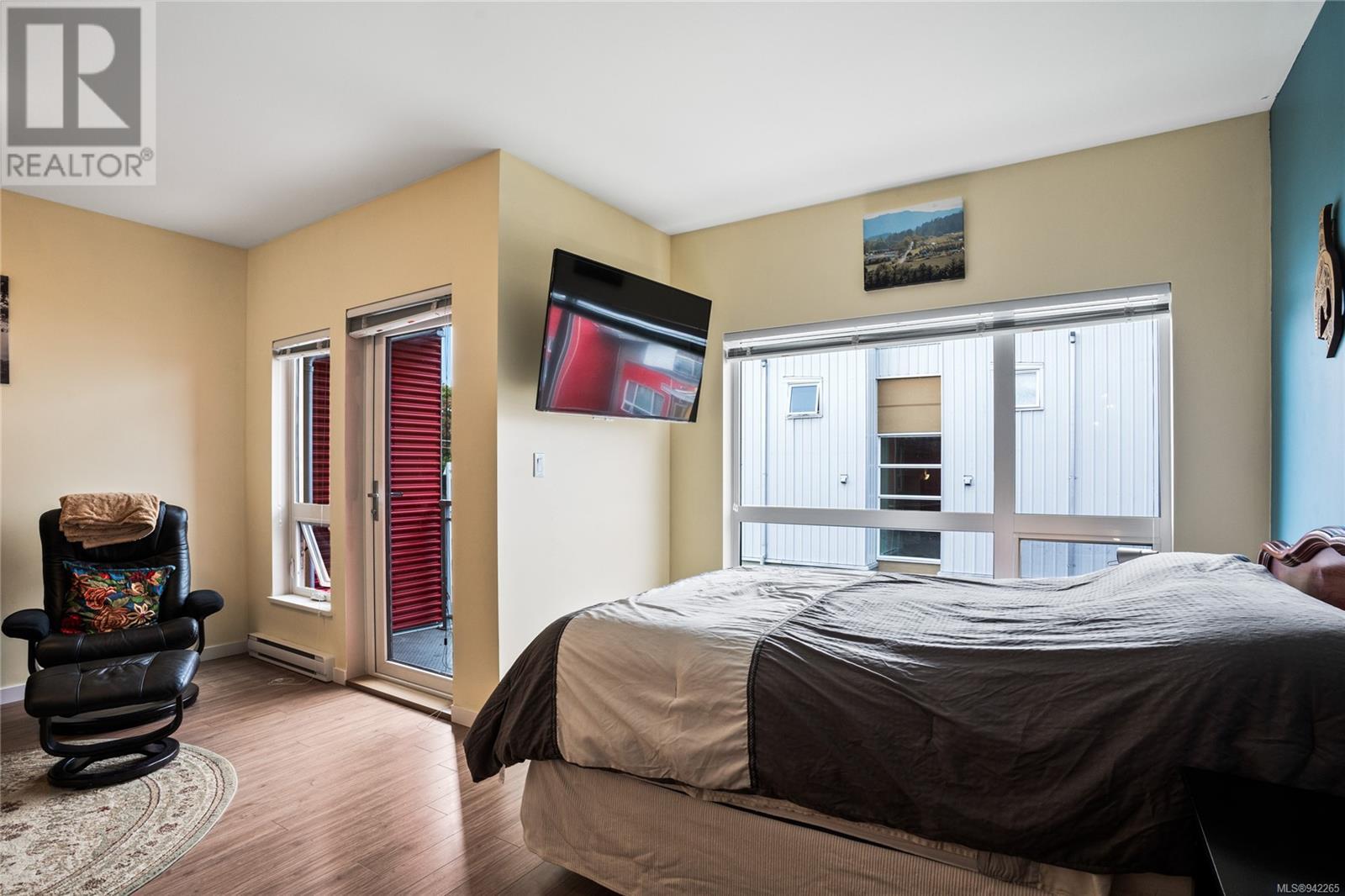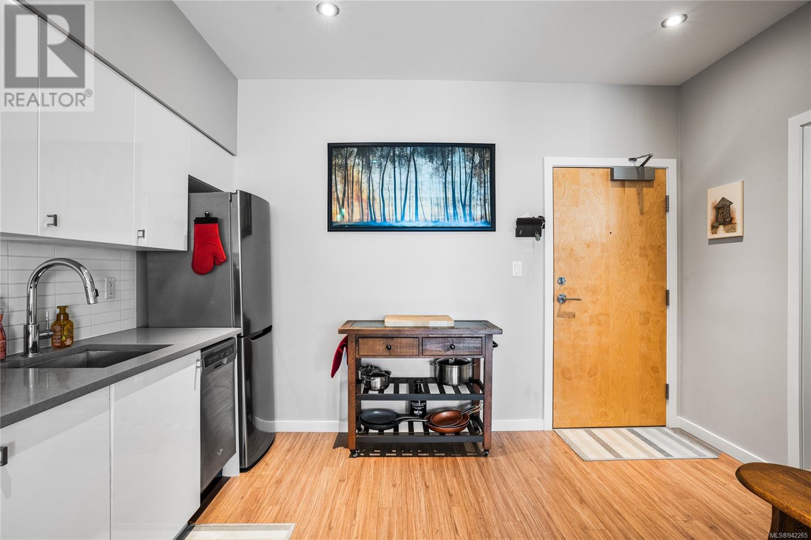 Welcome to the Railyards! Pleased to offer this immaculate top floor studio unit in the modern Bond's Landing 3. This bright, well laid out condo features quartz counters, heated bathroom flooring, high gloss white cabinetry, and like new stainless steel appliances. Overlooking the common courtyard and garden space, you will enjoy the evening sunsets from your private balcony. Located just steps from the water and just minutes from downtown, bakeries, local coffee shops and restaurants, you can enjoy launching your kayak from the dock or biking to work on the Galloping Goose Trail. This pet friendly rentable unit comes with a secure underground parking stall, storage unit, and the remaining new home warranty. Do not miss your chance to live in one of Victoria's most desirable waterfront communities! (id:22211)