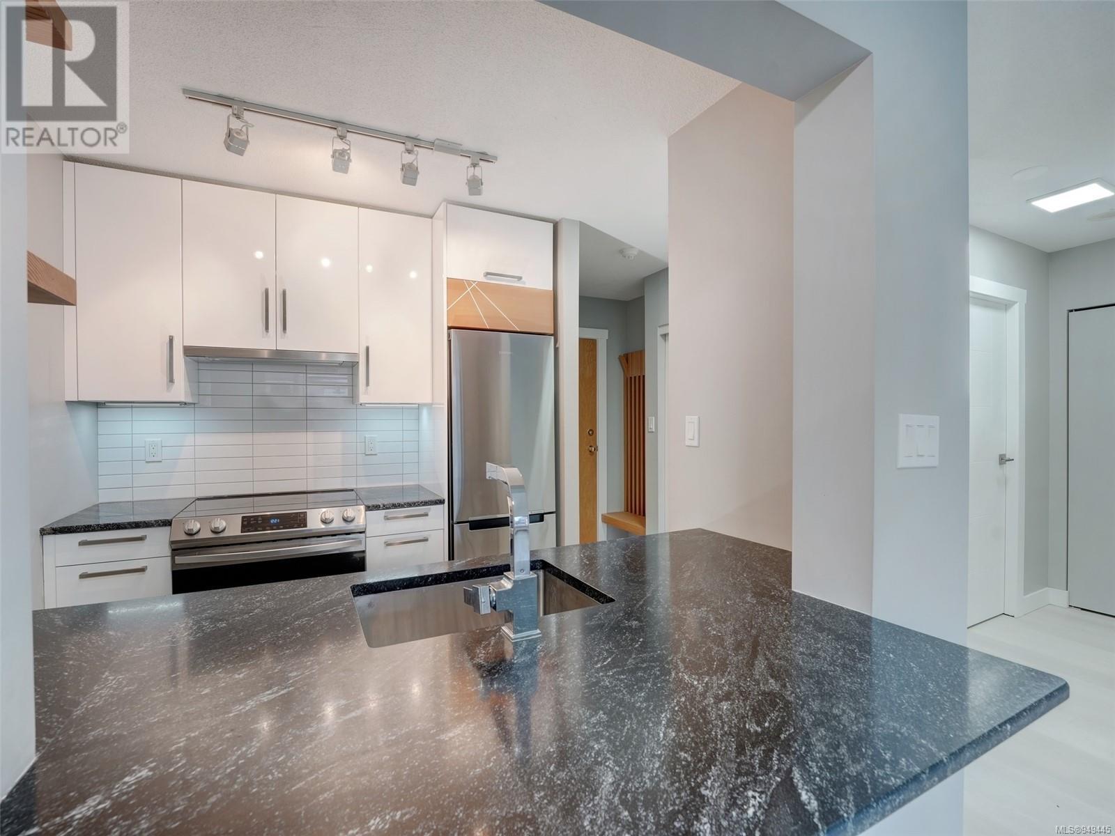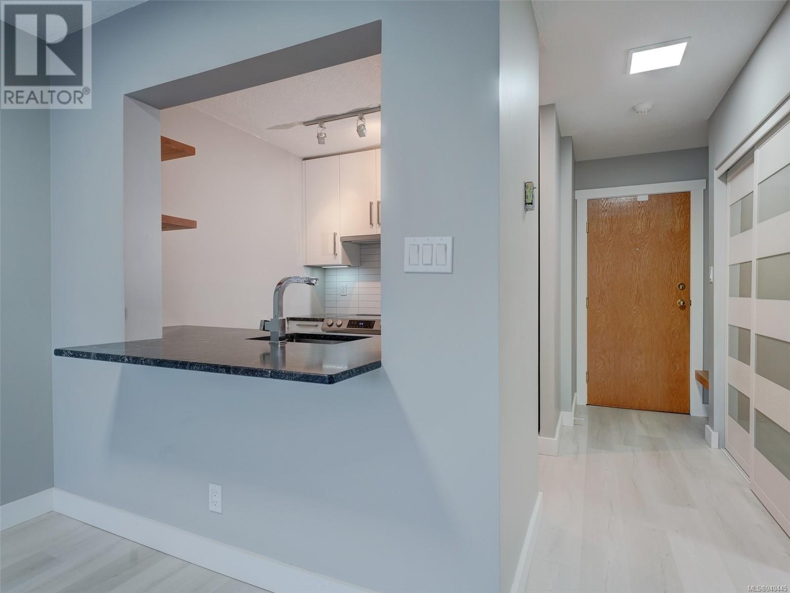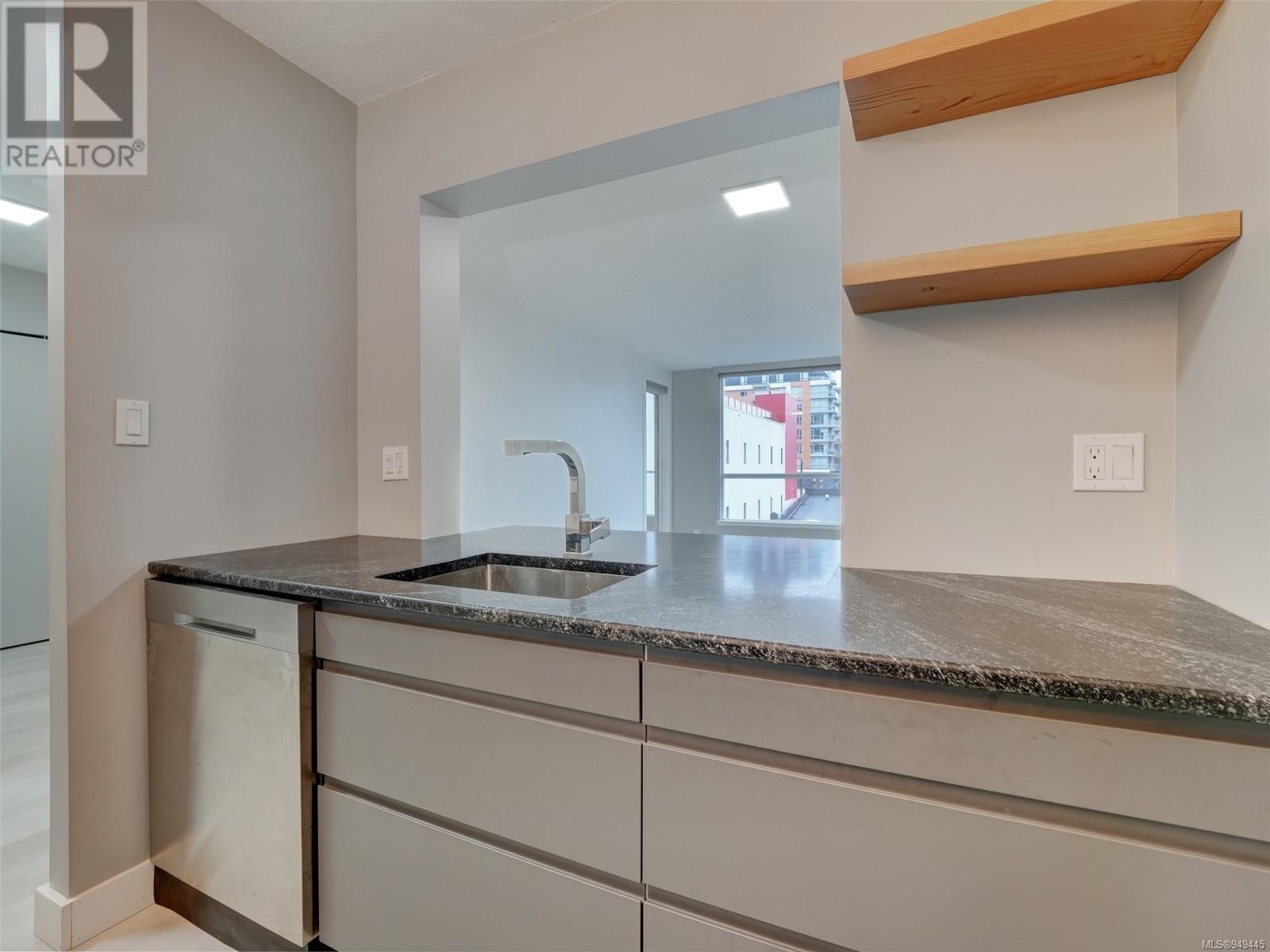 Welcome to this tastefully updated 1 Bed 1 Bath unit in The Metropolitan. Investors and first-time buyers will see great value in this Downtown steel and concrete building. Updates include new luxury vinyl plank flooring throughout, granite countertops, Samsung stainless steel appliances, new cabinetry, and custom millwork. The functional kitchen features a pass-through to the main living area, with a two seat breakfast bar. The spacious living area includes access to a sun soaked south facing balcony. The bedroom has plenty of closet space, built-in custom shelving, and a sliding glass door to the patio. The bathroom updates include a new vanity, lighting, toilet, and floor to ceiling tile backsplash. Other features include in-suite laundry and 1 parking stall. This unit is only steps away from everything that Downtown Victoria has to offer. (id:22211)