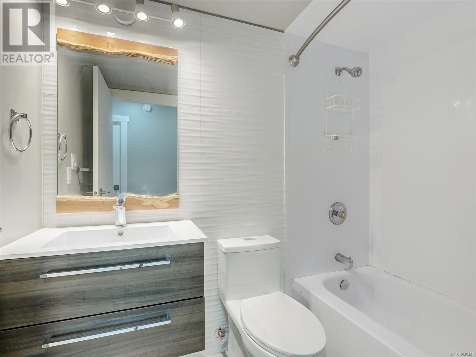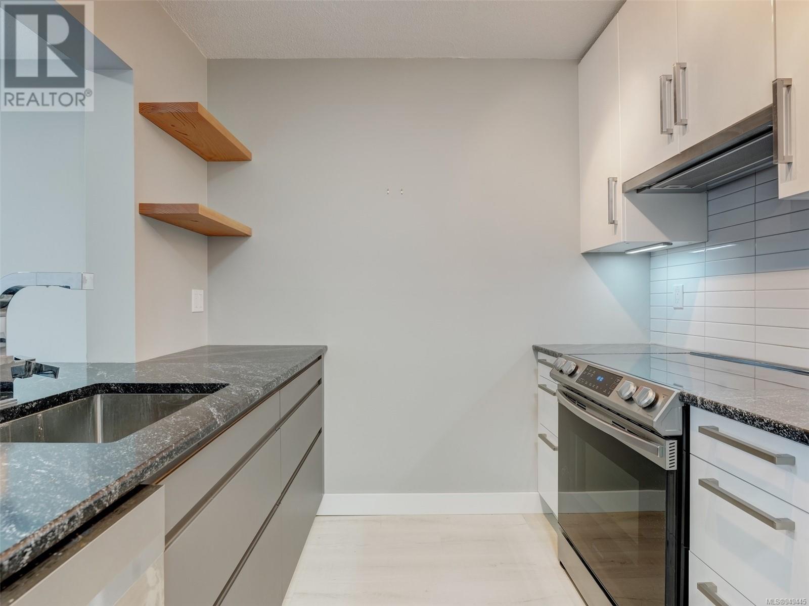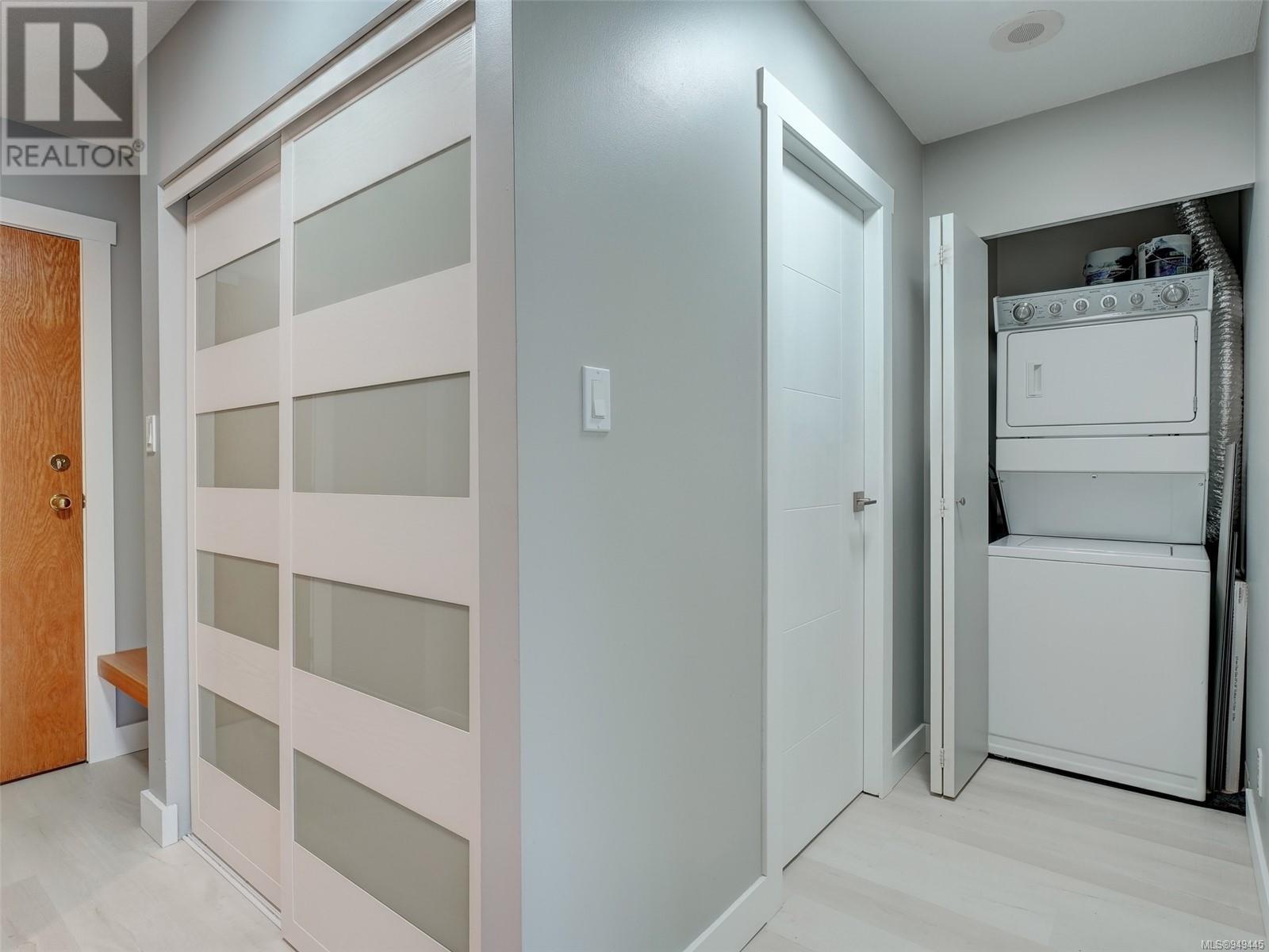 Welcome to this tastefully updated 1 Bed 1 Bath unit in The Metropolitan. Investors and first-time buyers will see great value in this Downtown steel and concrete building. Updates include new luxury vinyl plank flooring throughout, granite countertops, Samsung stainless steel appliances, new cabinetry, and custom millwork. The functional kitchen features a pass-through to the main living area, with a two seat breakfast bar. The spacious living area includes access to a sun soaked south facing balcony. The bedroom has plenty of closet space, built-in custom shelving, and a sliding glass door to the patio. The bathroom updates include a new vanity, lighting, toilet, and floor to ceiling tile backsplash. Other features include in-suite laundry and 1 parking stall. This unit is only steps away from everything that Downtown Victoria has to offer. (id:22211)