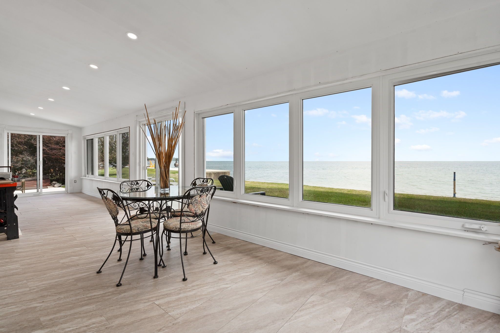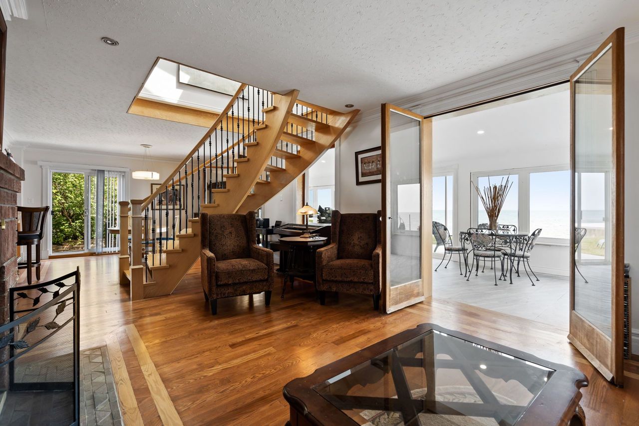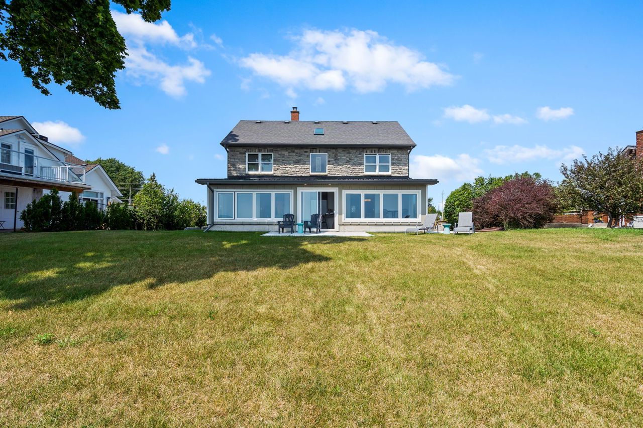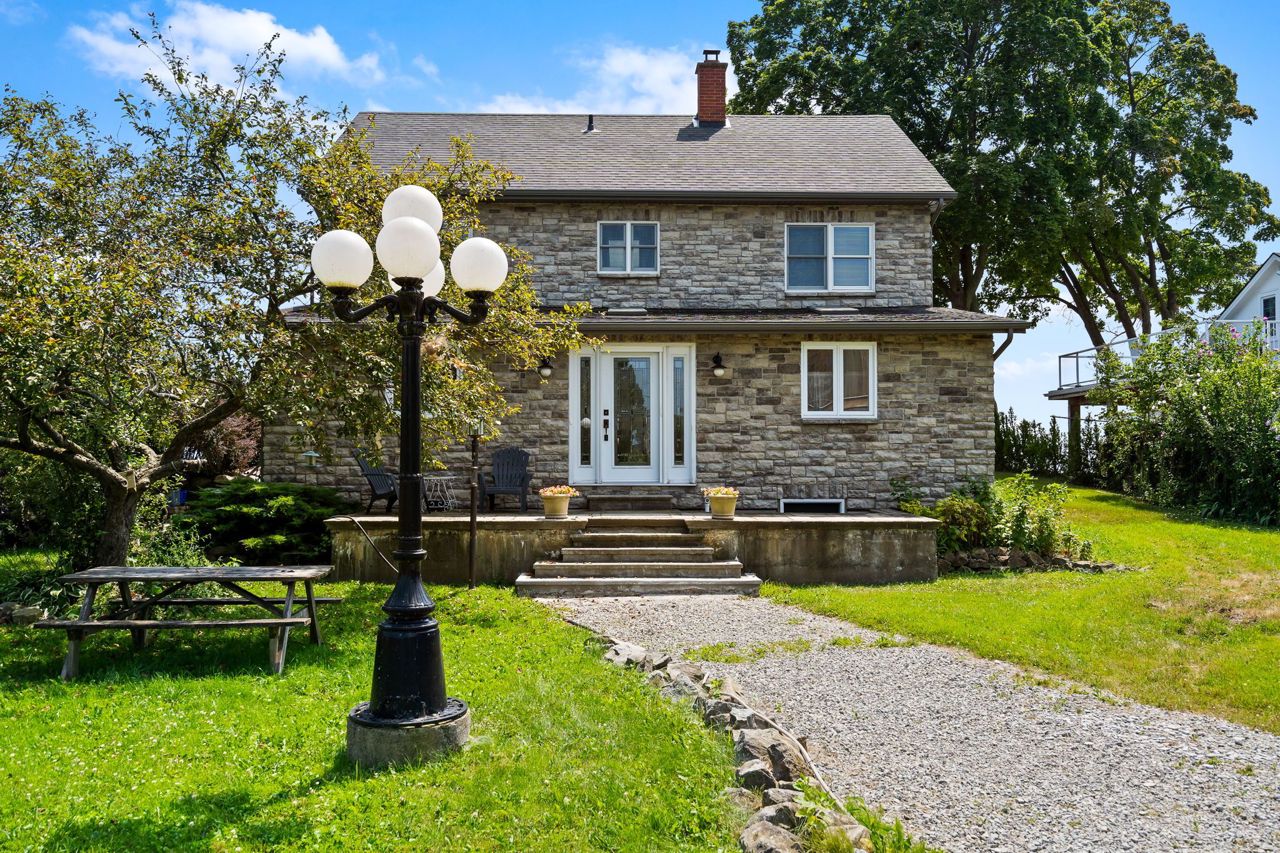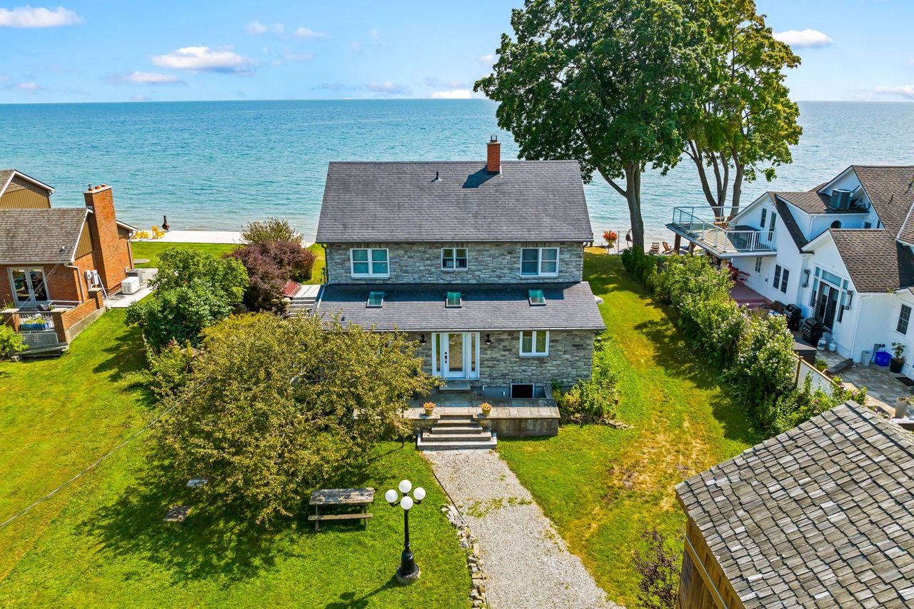 Waterfront living at it's finest! You are going to fall in love from the moment you drive through the iron gates! Amazing stone character home on the sandy shores of Lake Erie with 80.22 feet of water frontage. Enjoy quiet evenings reading or watching your favourite movie in the upper den before you slip into bed in the master bedroom. Space for the kids or guests and main bath too. It is the main floor that will blow you away! Open concept living area with french doors to the huge sunroom and cozy wood fireplace. Enjoy entertaining in the dining area where you can spill out to the side court yard or lazy Sunday mornings in the cozy breakfast room. Work from home...you will love this executive office tucked away on the main floor. Second bath, main floor laundry and inviting foyer with slate floor complete this main level. But wait...go outside and enjoy long summer days enjoying life at the beach and cool nights watching some of the most spectacular sunsets. There is lots of room for storage in the partial basement or fully insulated detached garage with easy walk up loft. Don't hesitate to experience this amazing property!