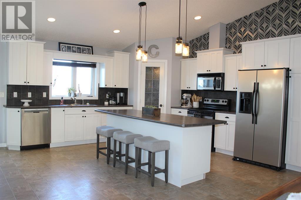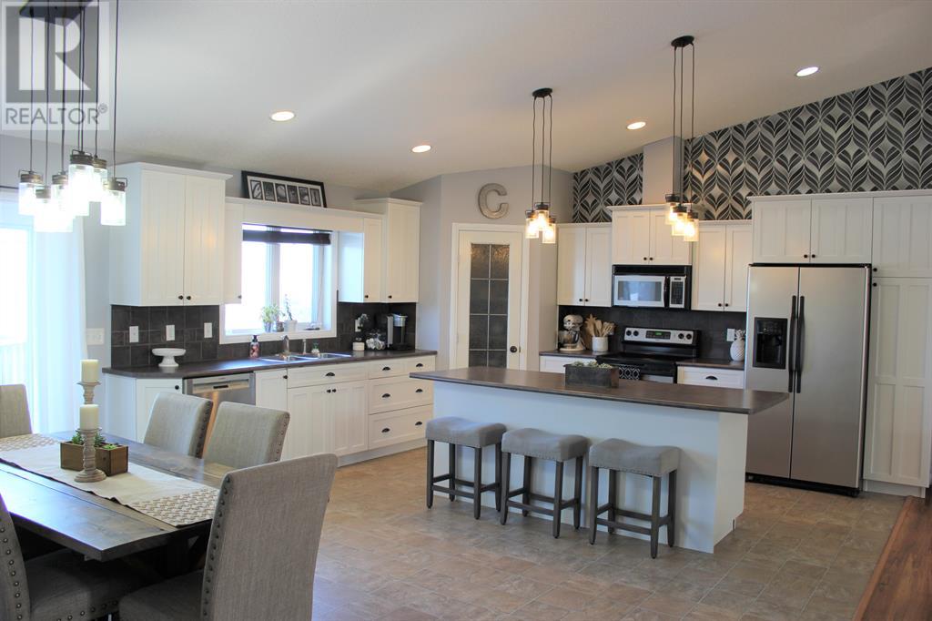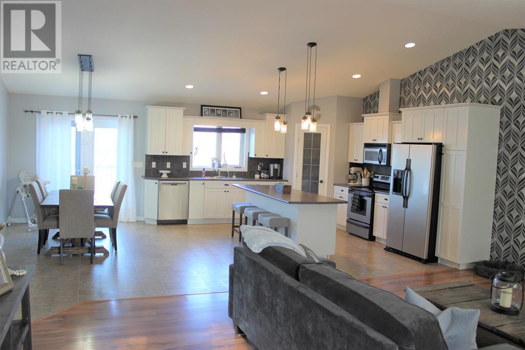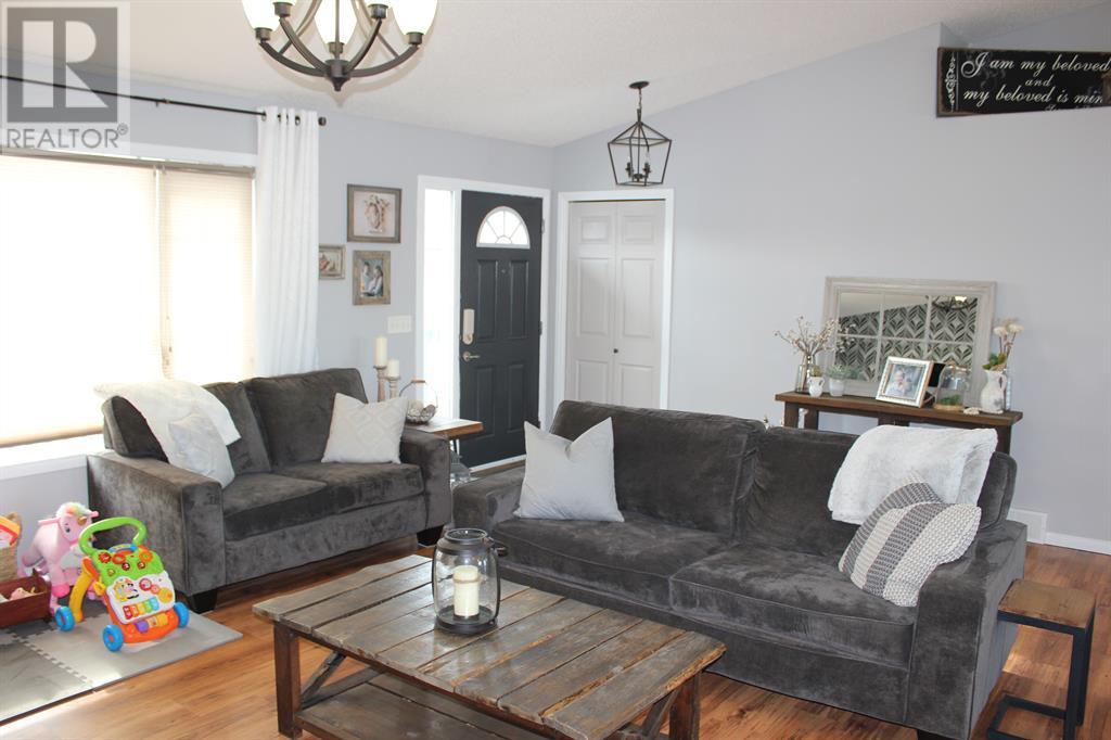 Looking for an open concept property , then look no further. This ideal family home is 1623 sqft and features 3 bedrooms up and 2 bedrooms down. This home showcases a large bright living room, dining room large enough for entertaining/family functions and a modern kitchen with beautiful cabinetry and a large sit at island. The main floor also has a large laundry room, master bedroom with 3 pc ensuite and large walk in closet. As you walk downstairs you will be greeted by a fully finished basement perfect for entertaining or movie nights with the family as it comes with projector, screen and surround sound. The wide open basement also features 2 additional bedrooms, den and a bathroom. Lastly this home is located on 1.5 lots and features a pie shaped lot backing onto walking trails and a 2 door double attached garage & RV parking. Don't miss this opportunity of owning a home in a great neighborhood!! (id:22211)