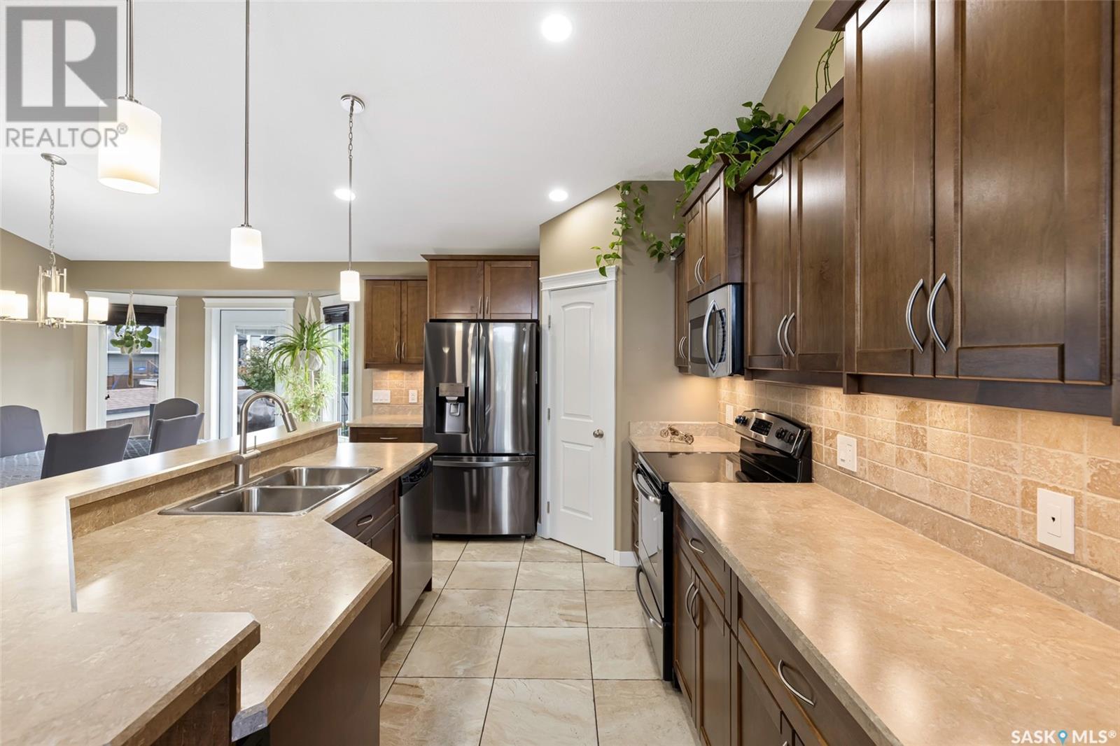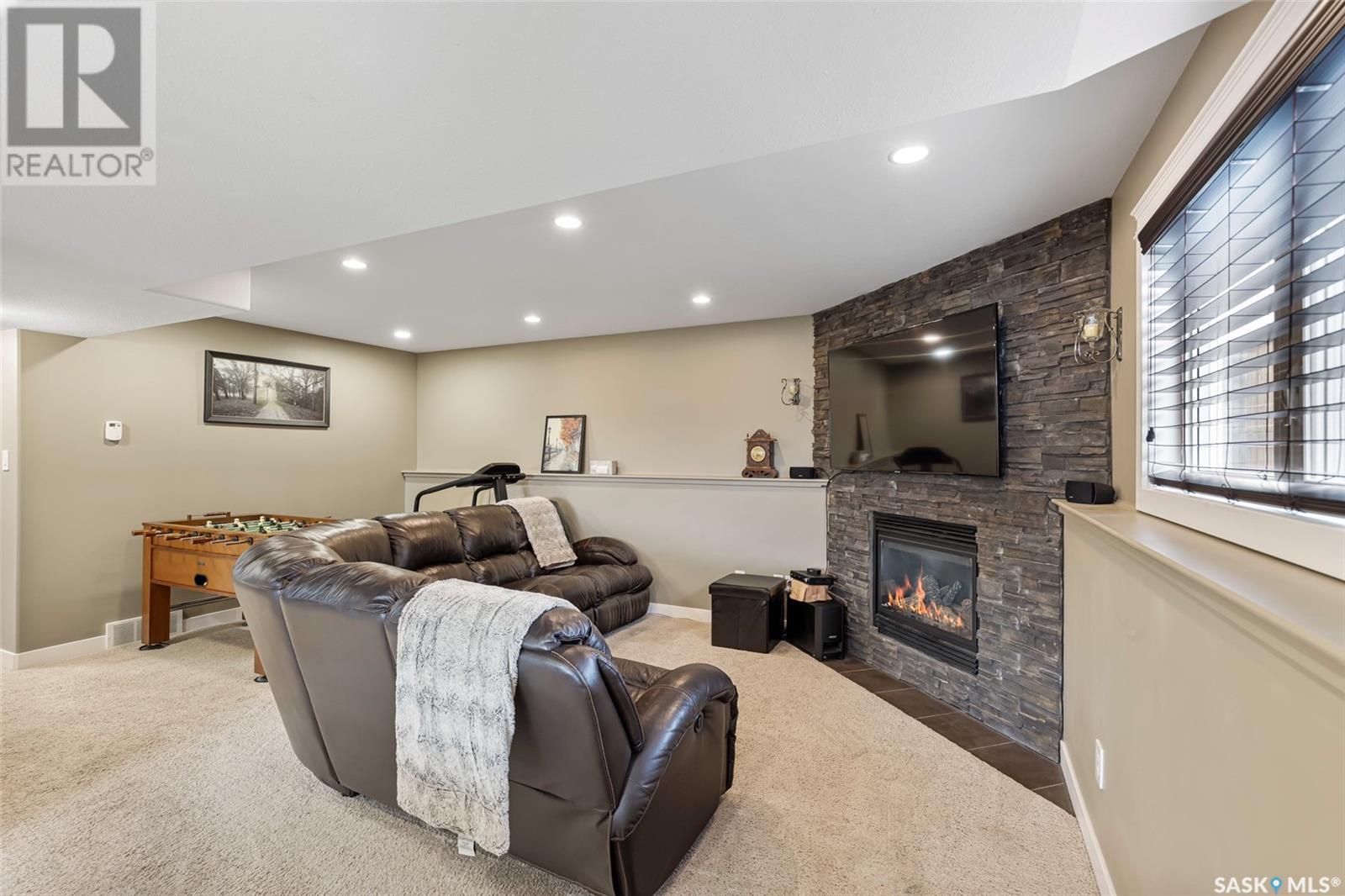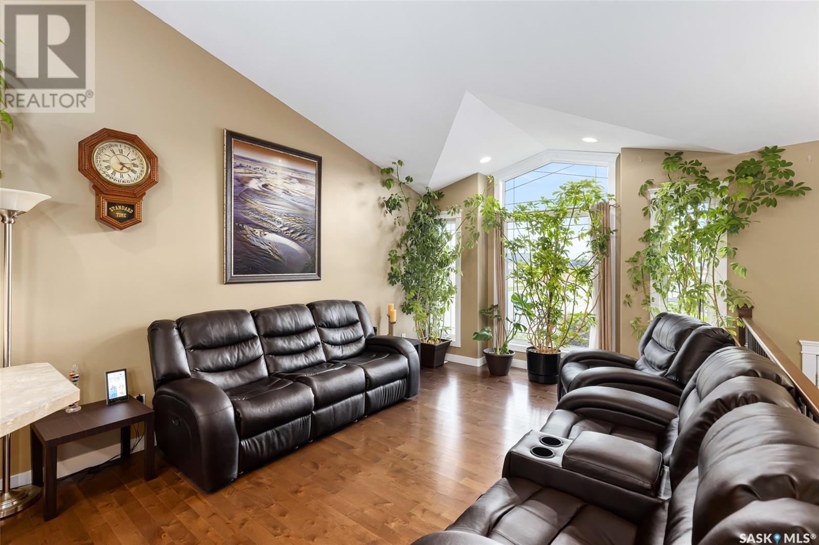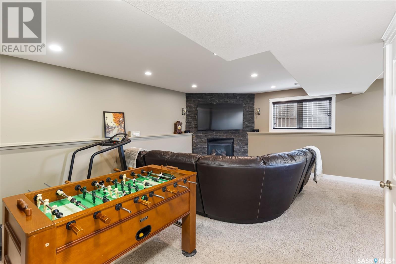 Check out 203 Mize Place in the Legends area of Warman. This 5 bedroom, 3 bathroom bilevel home is perfect for a large family. Fully developed inside and out, no renovations required. Owner occupied with no smoking, no children or pets, has kept this property in pristine condition. The open concept living area is spacious with vaulted ceilings, hardwood and tile flooring, large island, backsplash with under cabinet lighting, corner pantry, stainless steel appliances and direct access to the deck. The master bedroom boasts a walk-in closet and 3 piece ensuite. Two large bedrooms and the main 4 piece bathroom complete the main floor. The double attached garage has direct entry to the front foyer. The exceptional basement is finished with a fabulous family room and games area with bright windows and natural gas fireplace. Two additional bedrooms and a fabulous 3 piece bathroom with jet tub utilize the entire space perfectly. The beautiful back yard is fully fenced with plants and grass, along with a custom fire pit area and underground sprinklers . The deck also serves as extra enclosed storage area underneath. The front yard is beautifully landscaped and also offers plenty of parking being on a corner lot. Central air and central vac also included. Call or message your agent to view! (id:22211)
