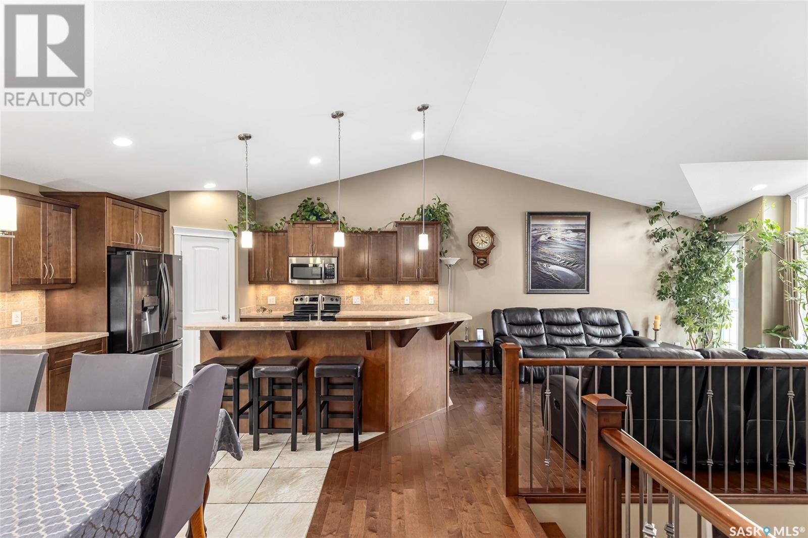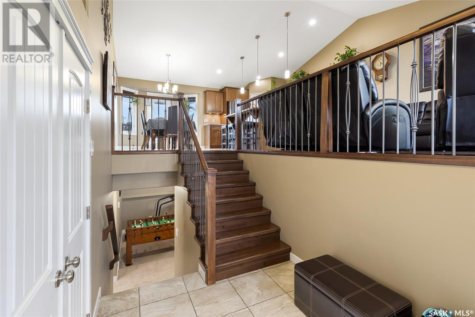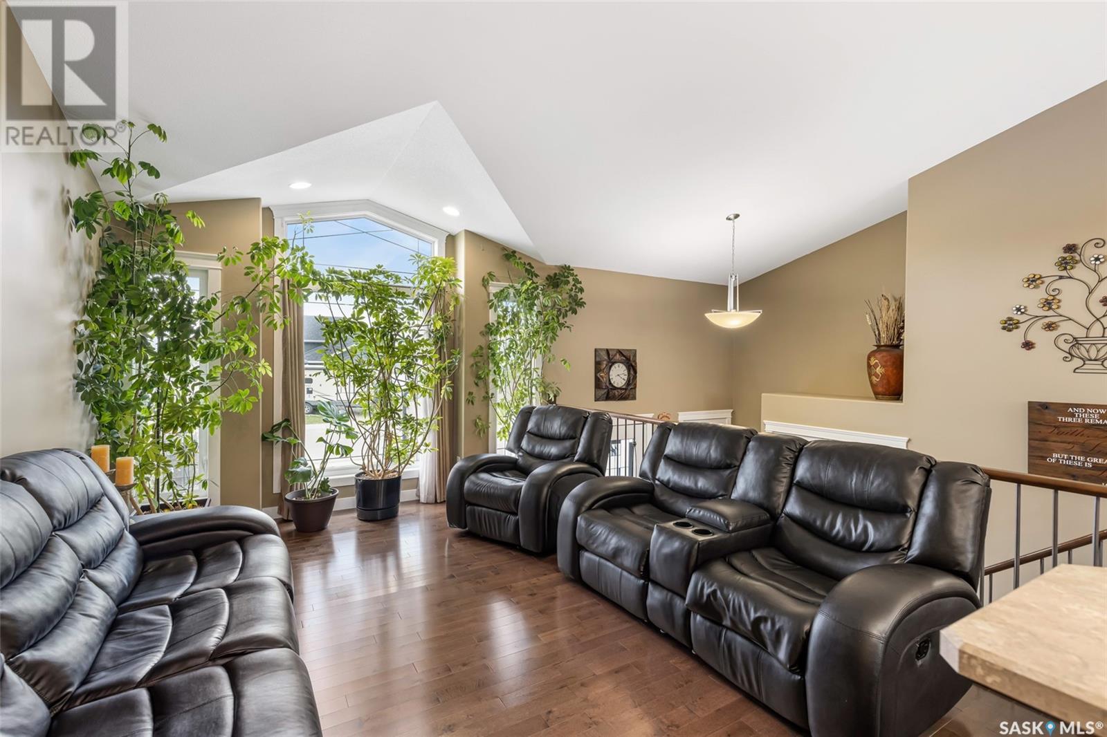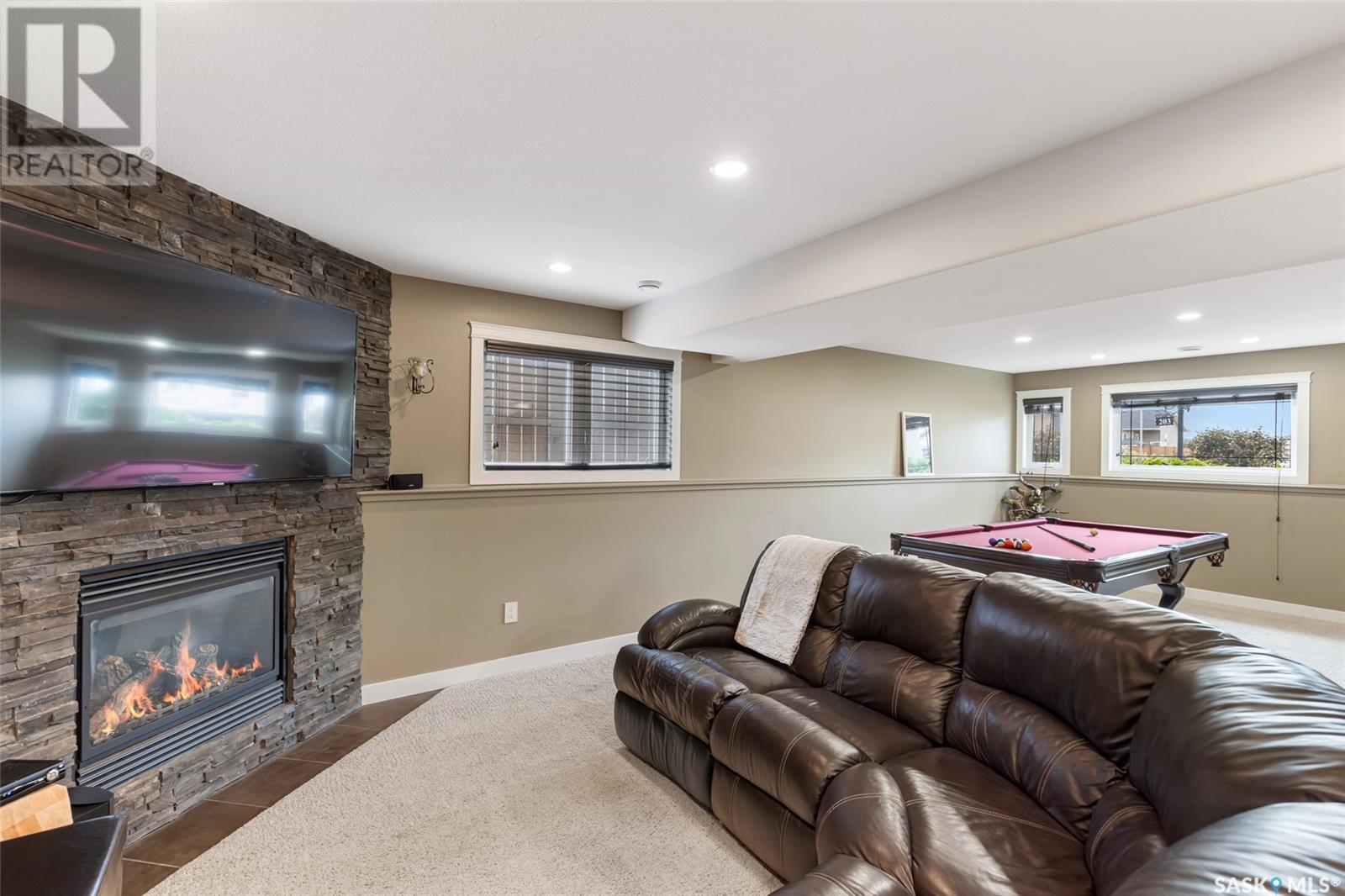 Check out 203 Mize Place in the Legends area of Warman. This 5 bedroom, 3 bathroom bilevel home is perfect for a large family. Fully developed inside and out, no renovations required. Owner occupied with no smoking, no children or pets, has kept this property in pristine condition. The open concept living area is spacious with vaulted ceilings, hardwood and tile flooring, large island, backsplash with under cabinet lighting, corner pantry, stainless steel appliances and direct access to the deck. The master bedroom boasts a walk-in closet and 3 piece ensuite. Two large bedrooms and the main 4 piece bathroom complete the main floor. The double attached garage has direct entry to the front foyer. The exceptional basement is finished with a fabulous family room and games area with bright windows and natural gas fireplace. Two additional bedrooms and a fabulous 3 piece bathroom with jet tub utilize the entire space perfectly. The beautiful back yard is fully fenced with plants and grass, along with a custom fire pit area and underground sprinklers . The deck also serves as extra enclosed storage area underneath. The front yard is beautifully landscaped and also offers plenty of parking being on a corner lot. Central air and central vac also included. Call or message your agent to view! (id:22211)