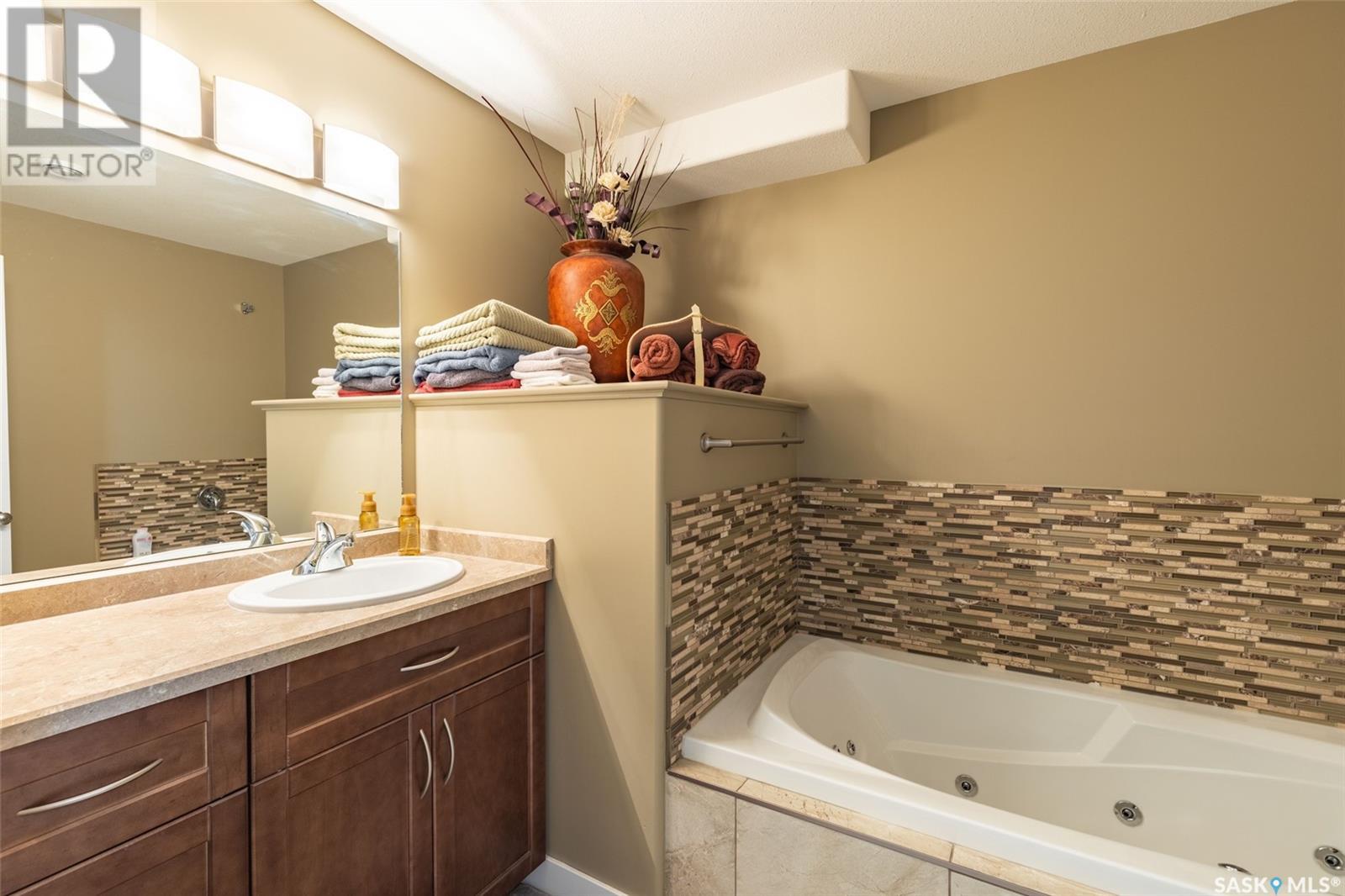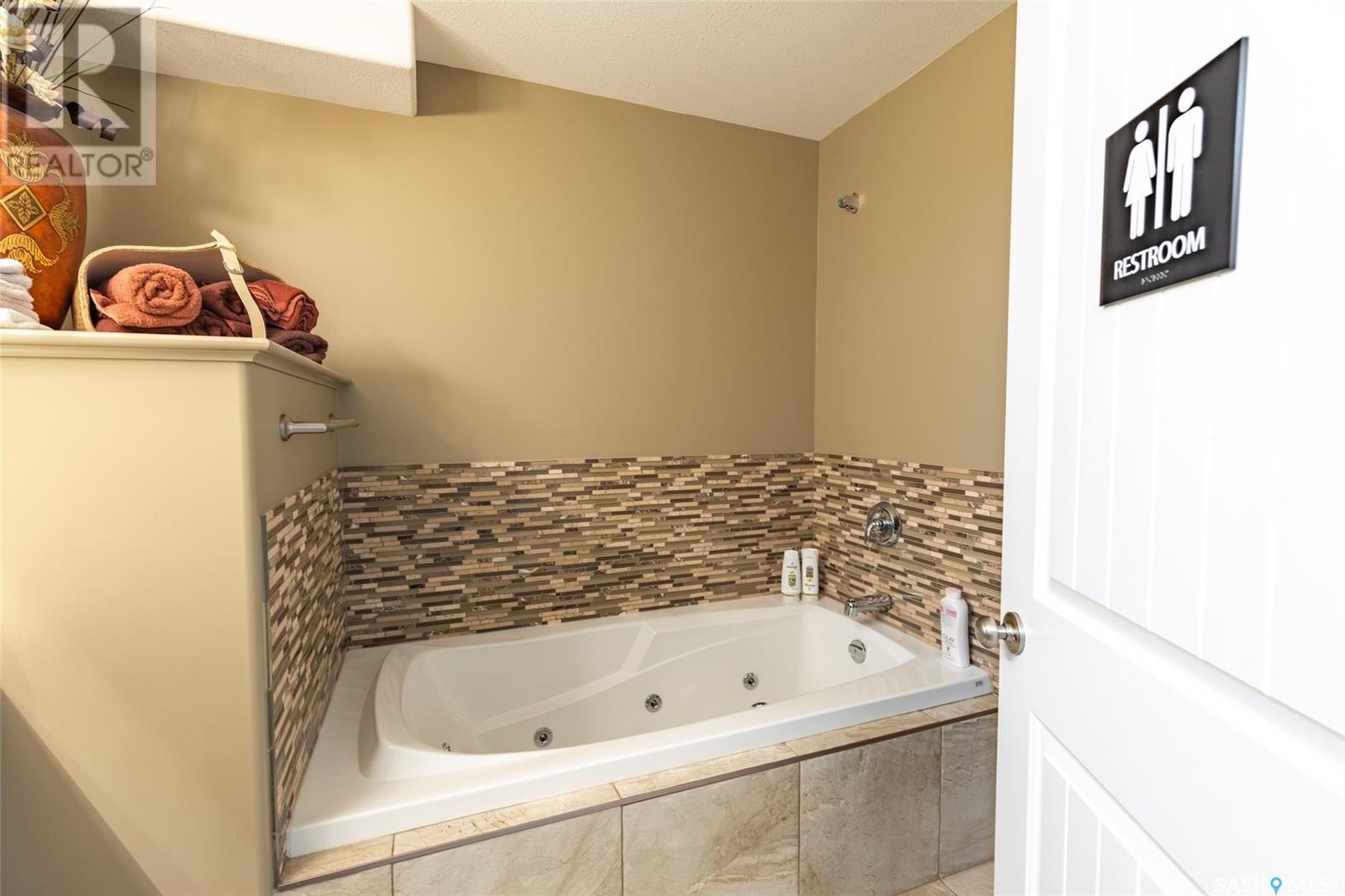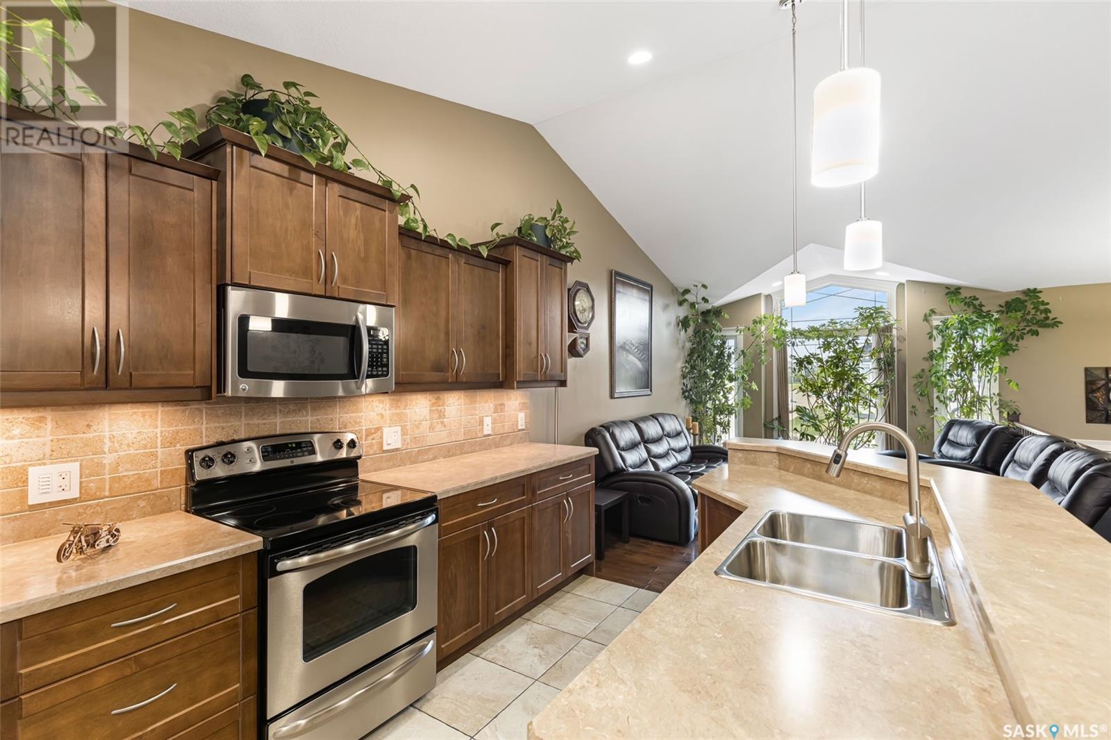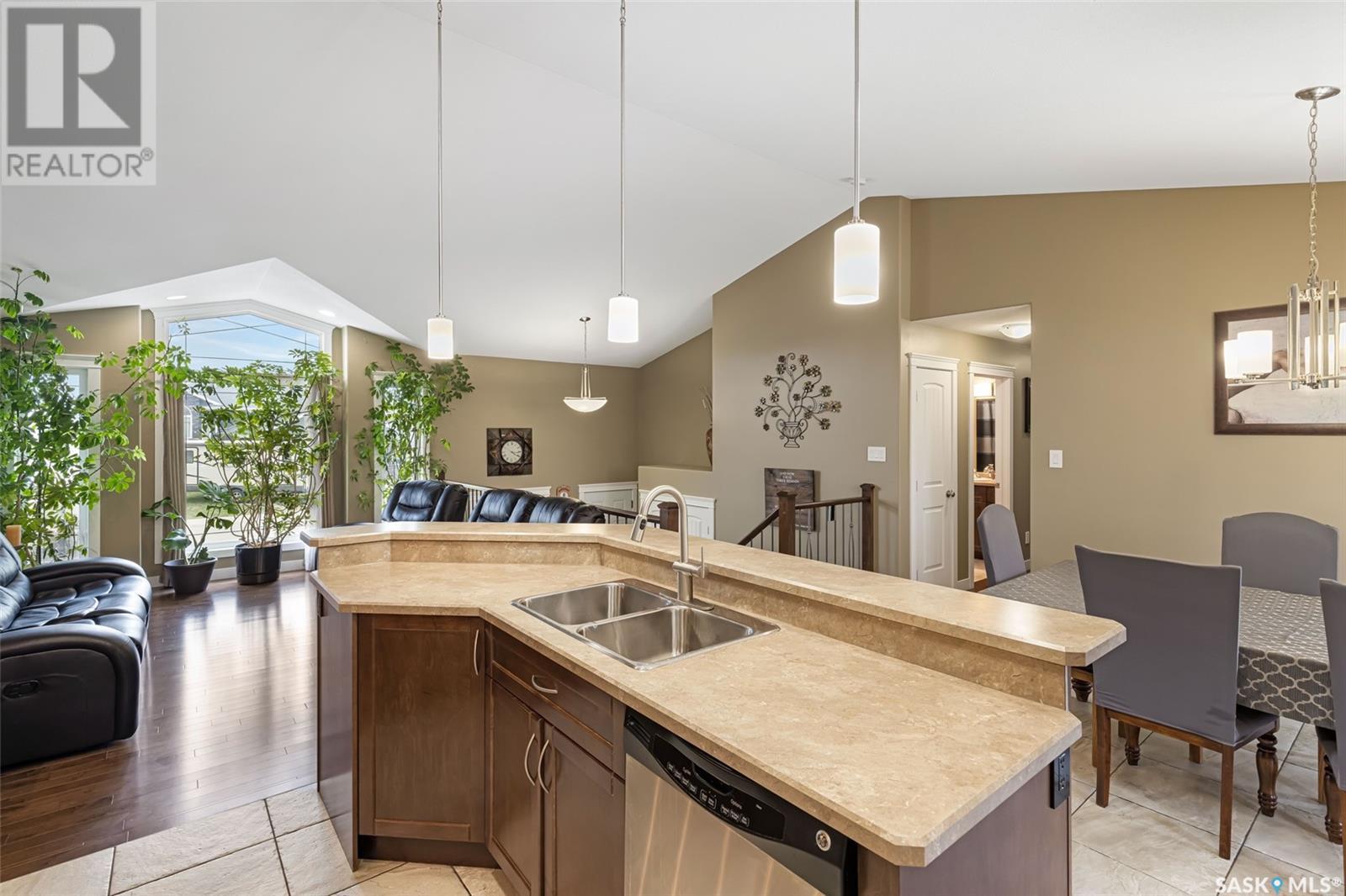 Check out 203 Mize Place in the Legends area of Warman. This 5 bedroom, 3 bathroom bilevel home is perfect for a large family. Fully developed inside and out, no renovations required. Owner occupied with no smoking, no children or pets, has kept this property in pristine condition. The open concept living area is spacious with vaulted ceilings, hardwood and tile flooring, large island, backsplash with under cabinet lighting, corner pantry, stainless steel appliances and direct access to the deck. The master bedroom boasts a walk-in closet and 3 piece ensuite. Two large bedrooms and the main 4 piece bathroom complete the main floor. The double attached garage has direct entry to the front foyer. The exceptional basement is finished with a fabulous family room and games area with bright windows and natural gas fireplace. Two additional bedrooms and a fabulous 3 piece bathroom with jet tub utilize the entire space perfectly. The beautiful back yard is fully fenced with plants and grass, along with a custom fire pit area and underground sprinklers . The deck also serves as extra enclosed storage area underneath. The front yard is beautifully landscaped and also offers plenty of parking being on a corner lot. Central air and central vac also included. Call or message your agent to view! (id:22211)