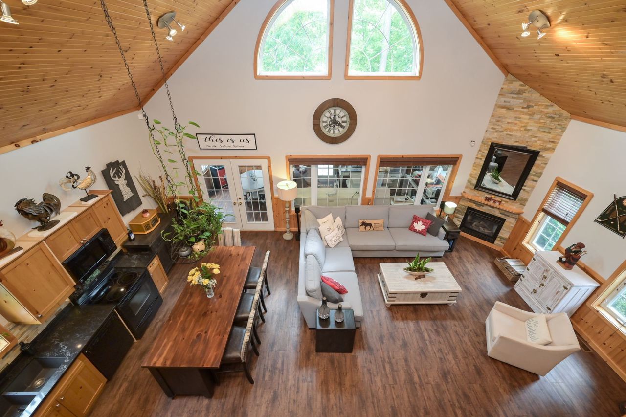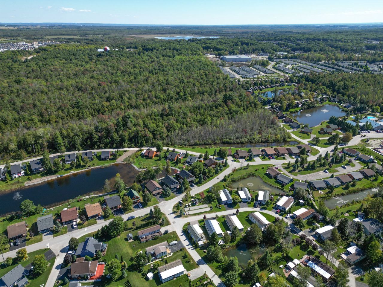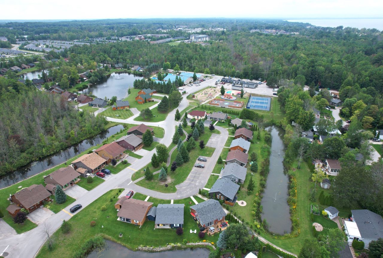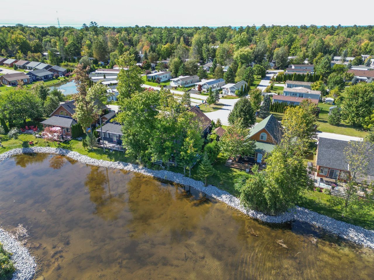 Stunning Chalet Style home in the sought after Gated Community "Lakes of Wasaga Countrylife". Step into your open concept main living area with family size kitchen , granite countertops , custom backsplash and under cabinet lighting. Impressive 18ft cathedral high ceiling, pot lights, multiple walkouts, 2 main floor bedrooms perfect for over night guests and Loft style private primary bedroom retreat with french door entrance , vaulted ceiling , and 4pc bathroom. Fully finished back sunroom with cozy gas fireplace. 12X30 custom deck with pergola overlooking private pond.Common Elements: Pool, Clubhouse,Tennis Courts, Monthly Fee $ 917.49 (Rent 592.91, Taxes 209.02, Water 25.56, Maintenance 90.00)