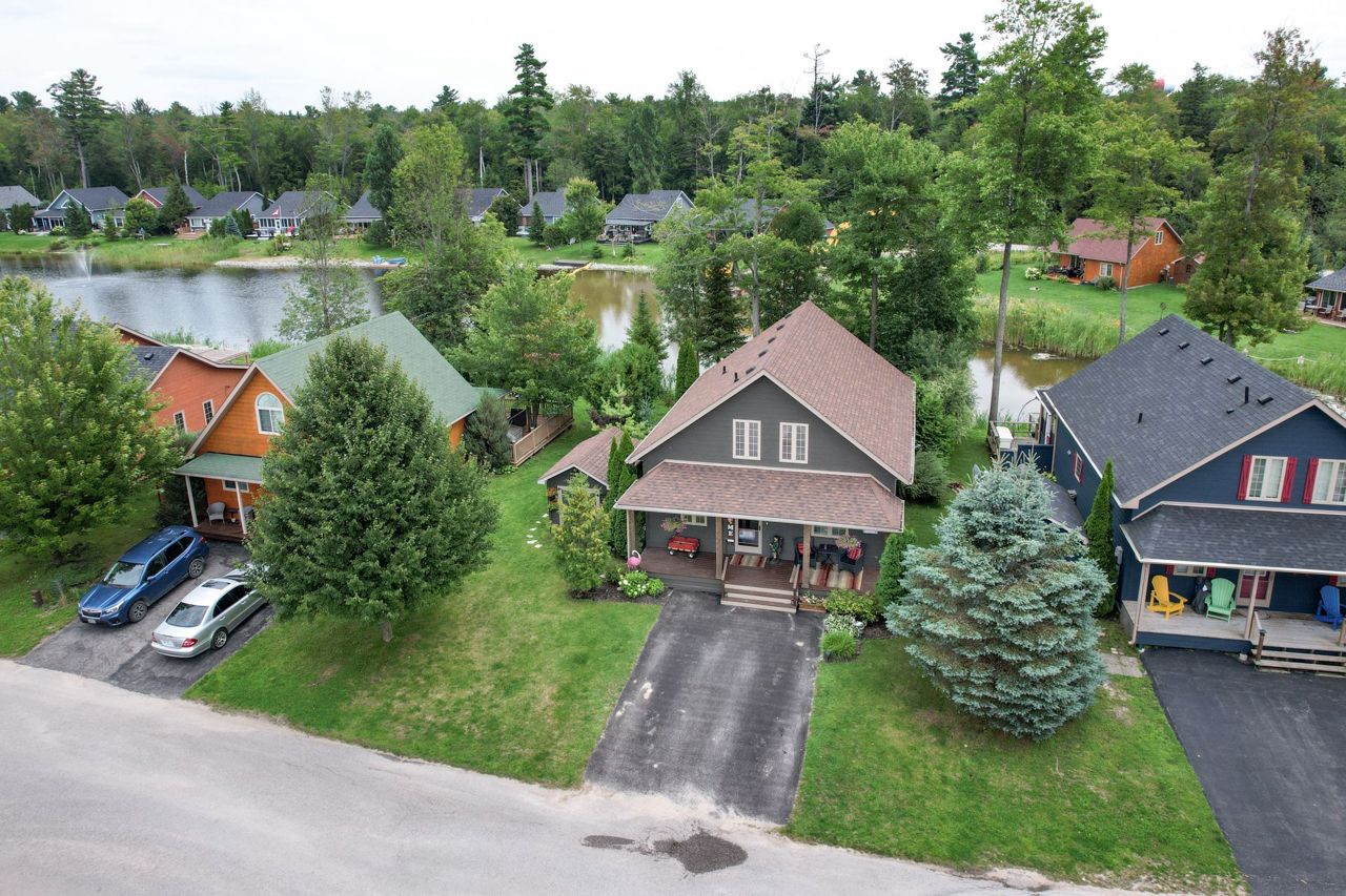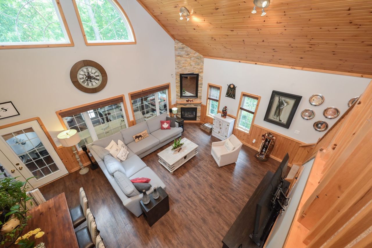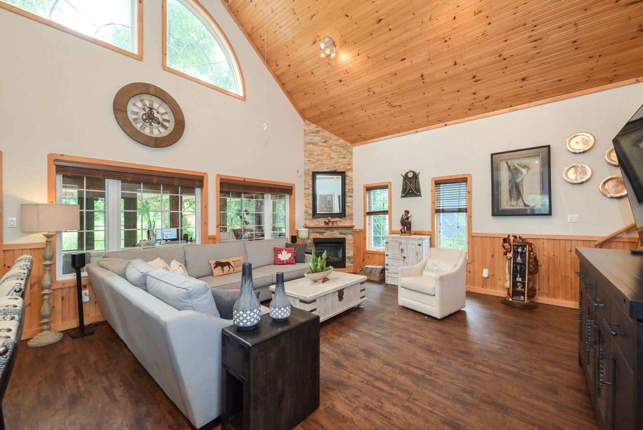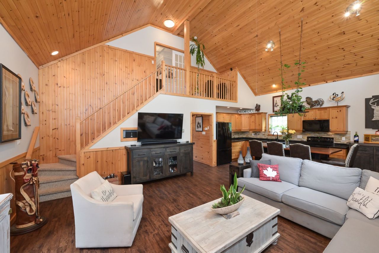 Stunning Chalet Style home in the sought after Gated Community "Lakes of Wasaga Countrylife". Step into your open concept main living area with family size kitchen , granite countertops , custom backsplash and under cabinet lighting. Impressive 18ft cathedral high ceiling, pot lights, multiple walkouts, 2 main floor bedrooms perfect for over night guests and Loft style private primary bedroom retreat with french door entrance , vaulted ceiling , and 4pc bathroom. Fully finished back sunroom with cozy gas fireplace. 12X30 custom deck with pergola overlooking private pond.Common Elements: Pool, Clubhouse,Tennis Courts, Monthly Fee $ 917.49 (Rent 592.91, Taxes 209.02, Water 25.56, Maintenance 90.00)