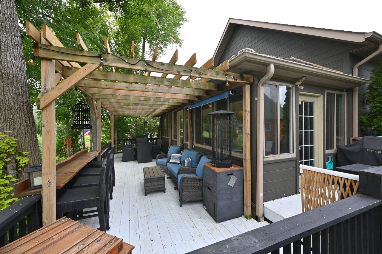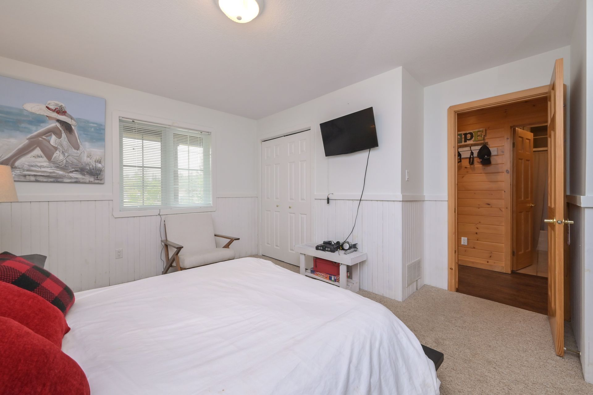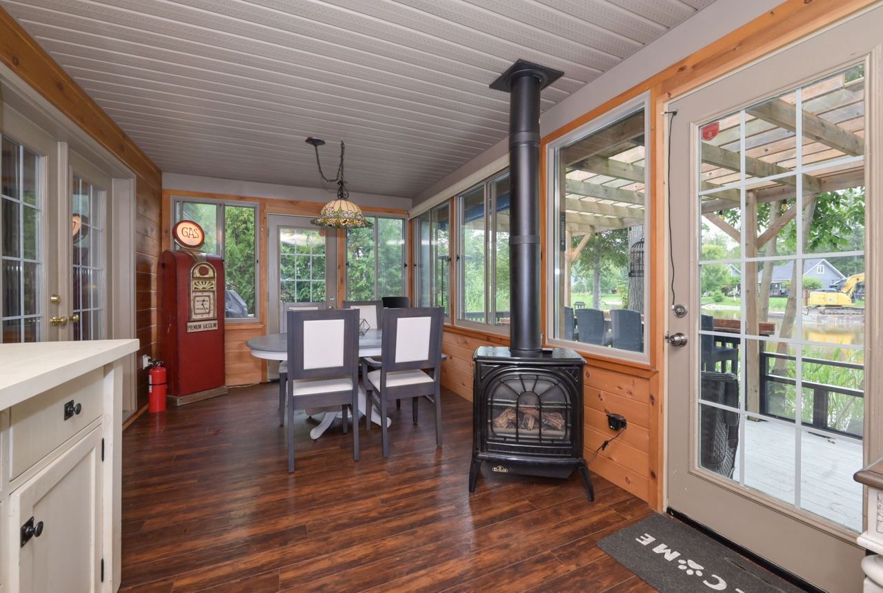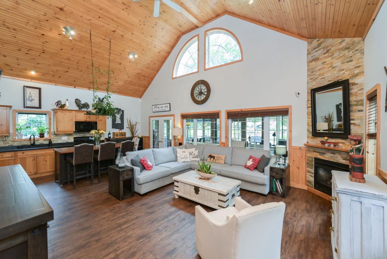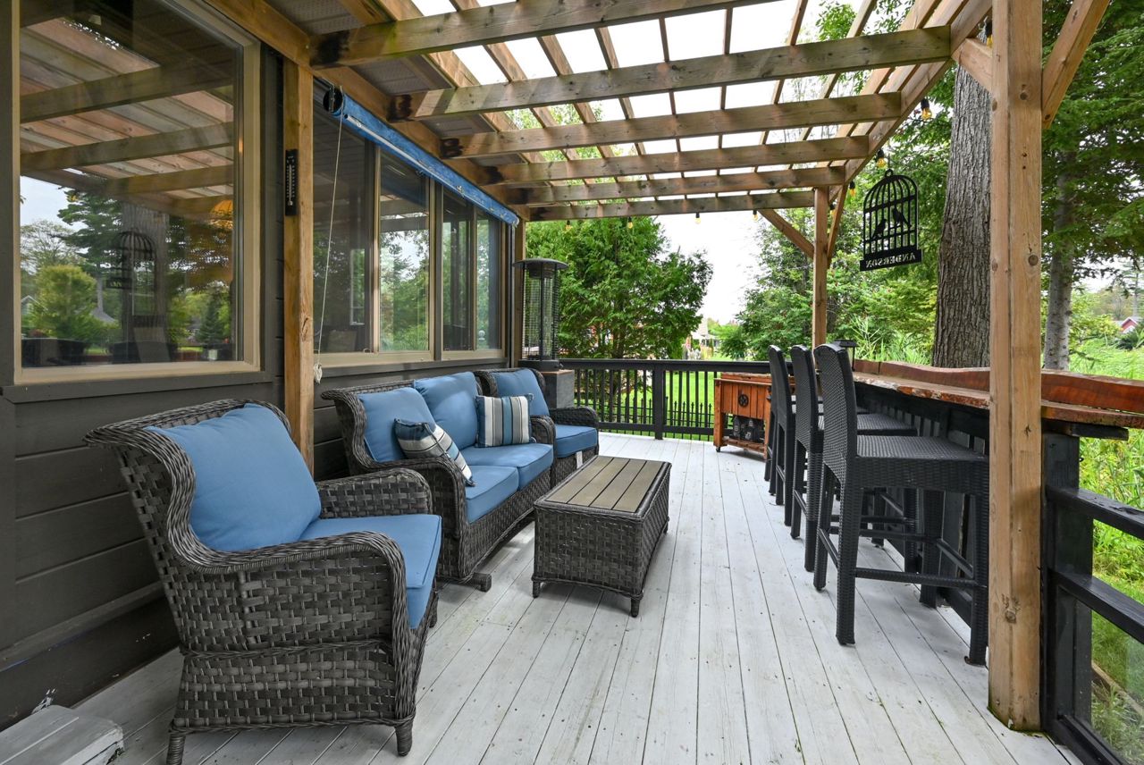 Stunning Chalet Style home in the sought after Gated Community "Lakes of Wasaga Countrylife". Step into your open concept main living area with family size kitchen , granite countertops , custom backsplash and under cabinet lighting. Impressive 18ft cathedral high ceiling, pot lights, multiple walkouts, 2 main floor bedrooms perfect for over night guests and Loft style private primary bedroom retreat with french door entrance , vaulted ceiling , and 4pc bathroom. Fully finished back sunroom with cozy gas fireplace. 12X30 custom deck with pergola overlooking private pond.Common Elements: Pool, Clubhouse,Tennis Courts, Monthly Fee $ 917.49 (Rent 592.91, Taxes 209.02, Water 25.56, Maintenance 90.00)