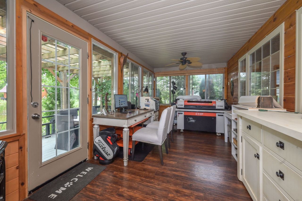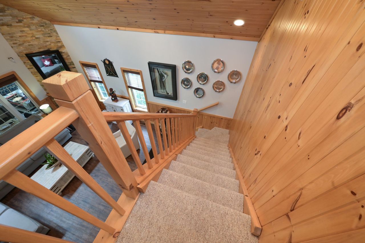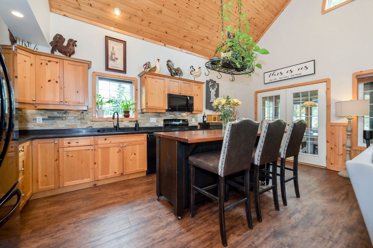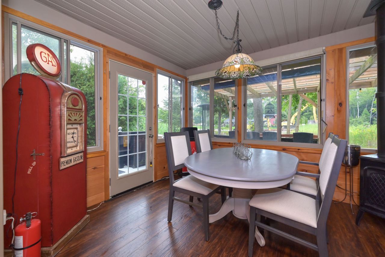 Stunning Chalet Style home in the sought after Gated Community "Lakes of Wasaga Countrylife". Step into your open concept main living area with family size kitchen , granite countertops , custom backsplash and under cabinet lighting. Impressive 18ft cathedral high ceiling, pot lights, multiple walkouts, 2 main floor bedrooms perfect for over night guests and Loft style private primary bedroom retreat with french door entrance , vaulted ceiling , and 4pc bathroom. Fully finished back sunroom with cozy gas fireplace. 12X30 custom deck with pergola overlooking private pond.Common Elements: Pool, Clubhouse,Tennis Courts, Monthly Fee $ 917.49 (Rent 592.91, Taxes 209.02, Water 25.56, Maintenance 90.00)