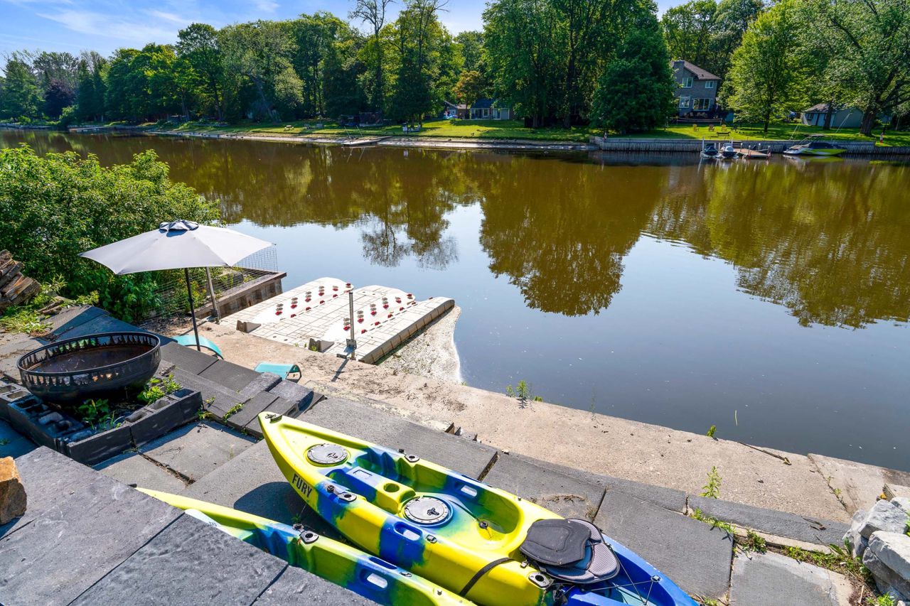 Prime Riverfront 1 yr Lease with Option to Buy Prior to Lease End. Awesome Views. Recent Renovation. Skating Is Right In Your Large, Private Tiered Backyard, Also With Fire Pits and River Access. Snowshoeing, Cross-Country, Ski-Hill And YMCA Recreation Within Minutes. Steps Away From The Beach, Fine Restaurants and Convenience Store. Sun-Filled with Modern Southwestern Style Farmhouse Charm. Breezeway/Mudroom Entrance. Lots Of Storage For Winter Gear. Great Rooms With Fireplaces. Upper Walk Out To Deck. Large Principal bedrooms. Kitchen With Tons Of Cupboards. Kitchenette on LL. Main Bath Features Jet Tub And Separate Shower. Elegant Lower Bath with LED Massage Shower with Bench. Office Den or 2nd Bedroom on Main. Laundry Facilities. Forced Air Gas Heating And AC. Perfect Vacation Spot For 2 Families or for in-laws. Book Your Showing Today! Listing Agent Is A Director Of Company.High grade vinyl plank flooring, upgraded baseboards and trims, shaker doors, lever handles, custom glass, quartz bar with undermount sink, LED jet shower with granite bench, porcelain tiles, mirrored vanity, tiered landscaped yard