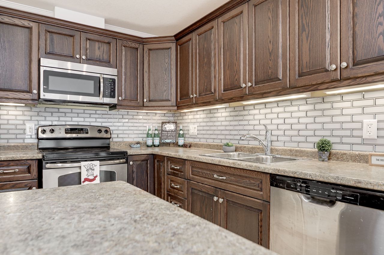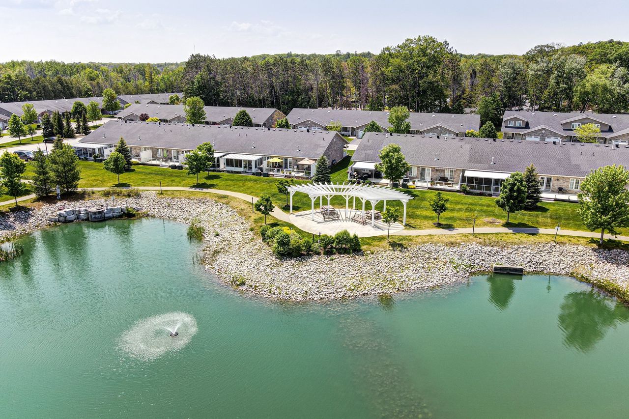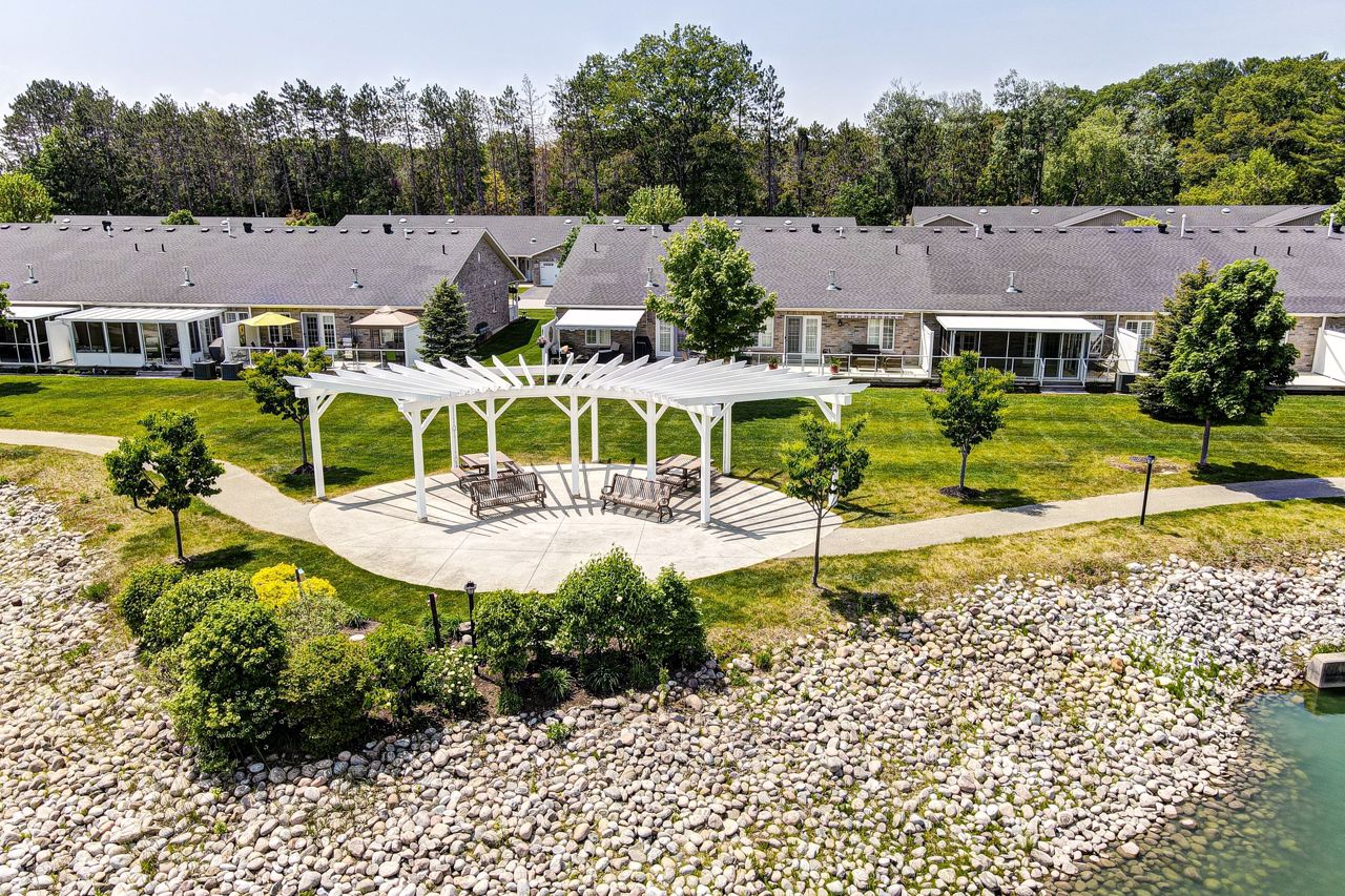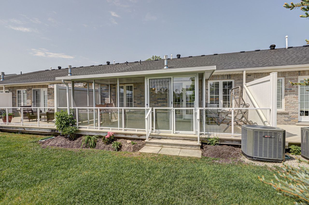 Enjoy retirement living in this beautifully appointed home in Country Meadows! Adult lifestyle & beautiful surroundings make this a perfect spot to enjoy your next chapter. 1200 sq.ft., 2 bed/2 bath, eng. hardwood, ceramic floors, cathedral ceiling, recessed lighting, undermount lighting, pantry cupboard (rollout drawers), upgraded baseboards, California knockdown ceilings/crown moulding, kitchen island (storage/seating), 4 ss appliances, built-in china cabinet (accent lighting), gas FP, California shutters, jetted tub, gas line for BBQ, garden doors (custom blinds), 18'x9'5" screened-in deck, backing onto pond. Monthly fees for new owner: Rent/Maintenance $736.71, tax (lot) $35.05, tax (structure) $128.75 = $900.51/mth. Country Meadows offers an outdoor heated, salt-water pool, a clubhouse, shuffleboard courts, 9 hole/Par 3 golf course & lots of activities (billiards, darts, cards, dances, etc.) to keep you busy. Close to walking/biking trails, beaches & lots of local shopping/dining.Freshly painted and beautiful new backsplash just installed!