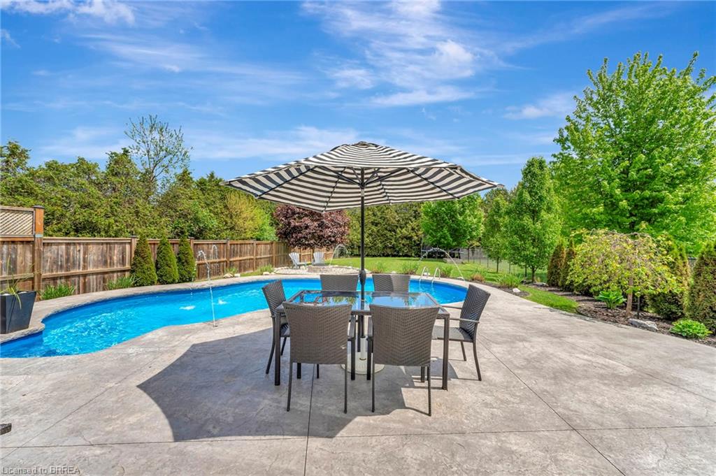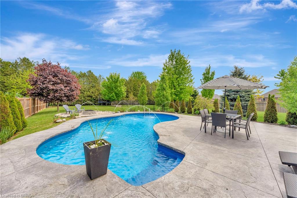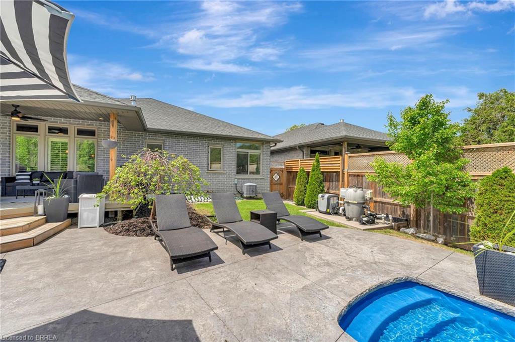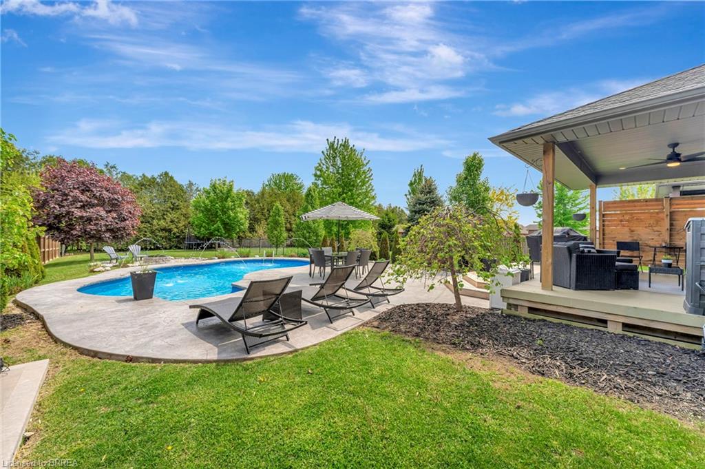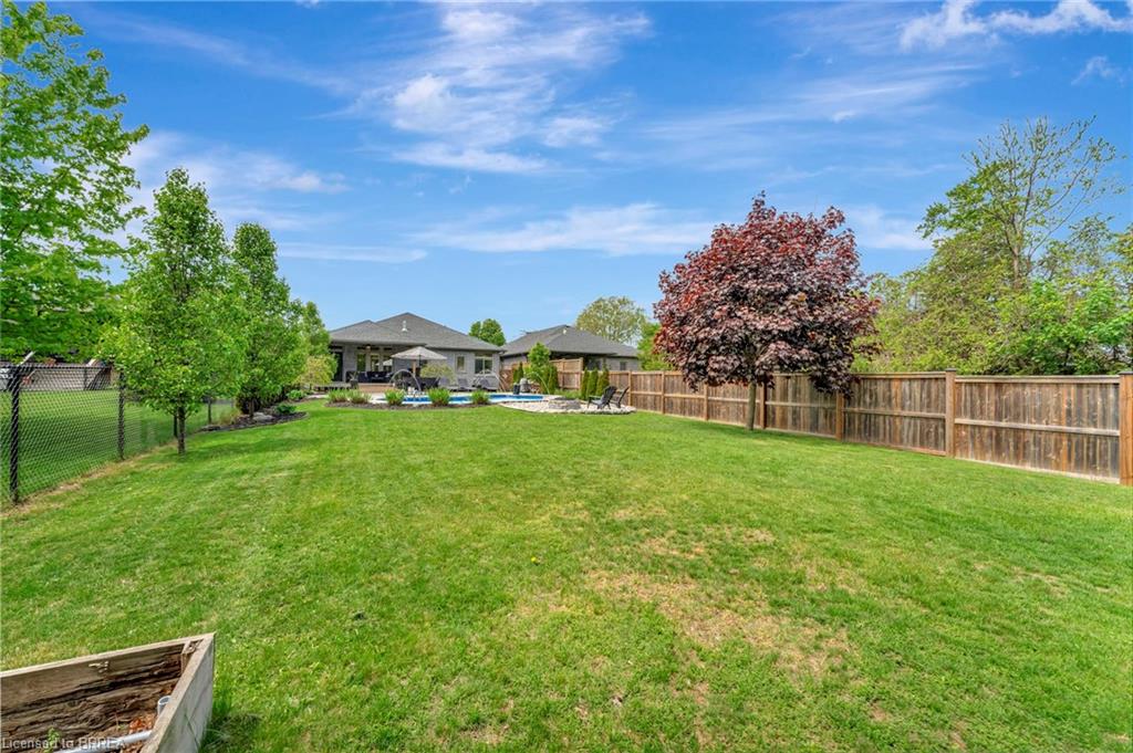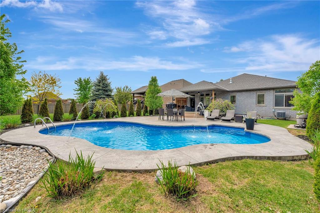 BACKYARD OASIS in WATERFORD! Welcome to 17 Lotus Ave — a stunning 3-bedroom, 2-bathroom bungalow on a large 48 x 225 ft private lot. Built by Spadafora Homes and offering 1,666 sq ft of stylish, open-concept living, this home is packed with upgrades and designed for both comfort and entertaining. Step inside the spacious foyer with soaring 9-ft ceilings and be greeted by a bright front music room or office space. The heart of the home features a large kitchen with quartz countertops, stainless steel appliances, and a generous dining area perfect for family gatherings. The cozy living room showcases a beautiful stone gas fireplace, tray ceiling, California shutters, and rich hardwood floors throughout. Retreat to the luxurious primary suite with dual closets and a spa-like 5-piece ensuite, complete with a walk-in shower and jetted soaker tub overlooking the backyard. Two additional bedrooms, a 4-piece bath, and main floor laundry offer ideal functionality. Outside is your dream backyard - a fully fenced, landscaped paradise featuring a custom saltwater inground pool (2021 by Paradise Pools), covered porch, and concrete patio—perfect for entertaining or quiet evenings under the stars. The double car garage and wide driveway provide ample parking and storage. Basement is a clean slate framed in with large egress windows for 2 more potential bedrooms, rough in bathroom, large rec room, and plenty of storage space! All of this in one of Waterford’s most desirable locations just steps from schools, trails, the Waterford Ponds, local shops, and restaurants. This home has it all! Don't wait and book your showing today to live the lifestyle you've been dreaming of!