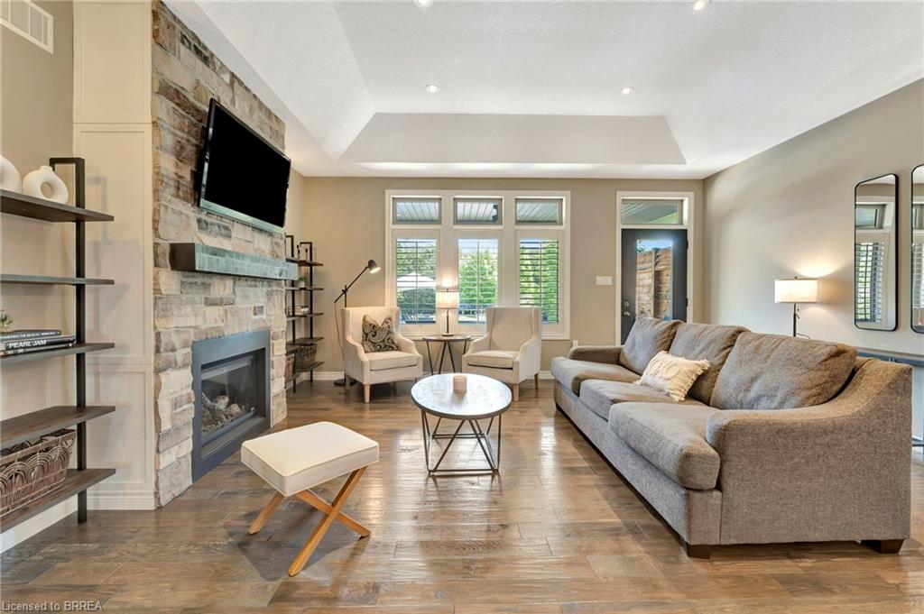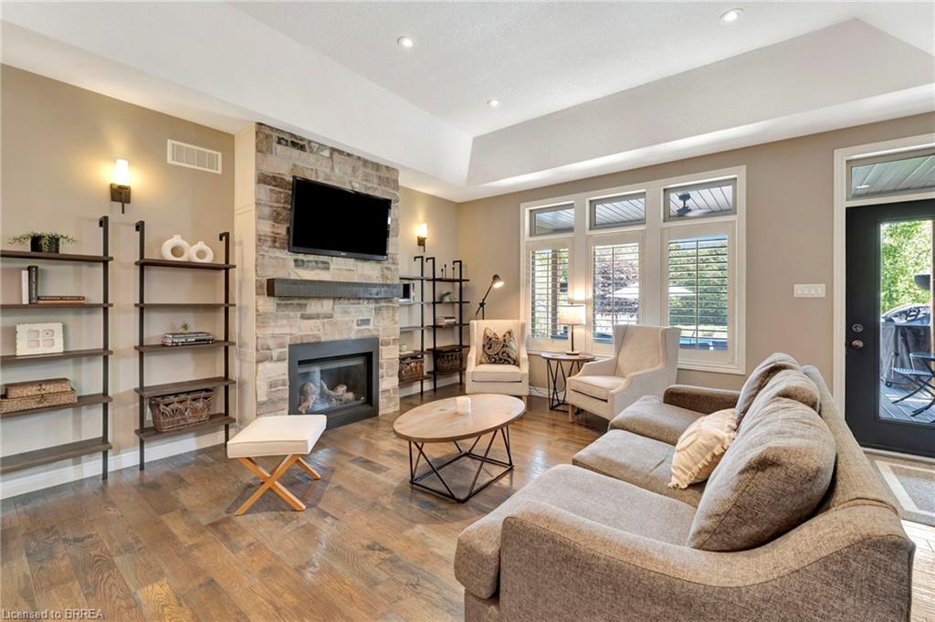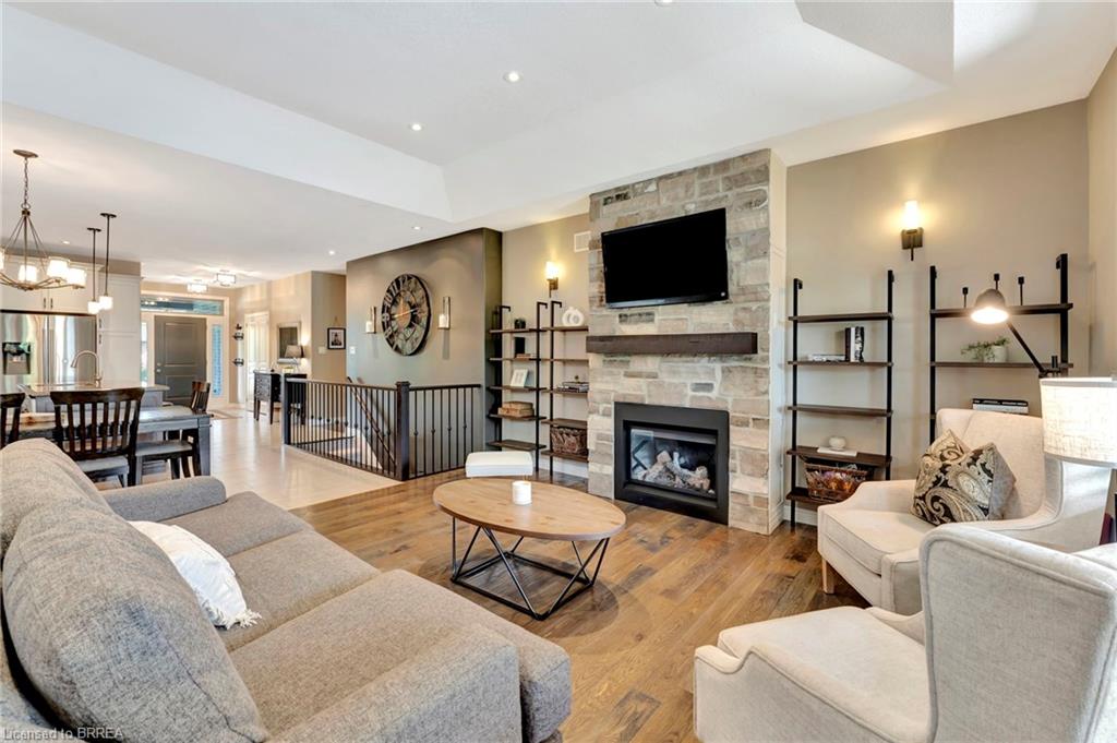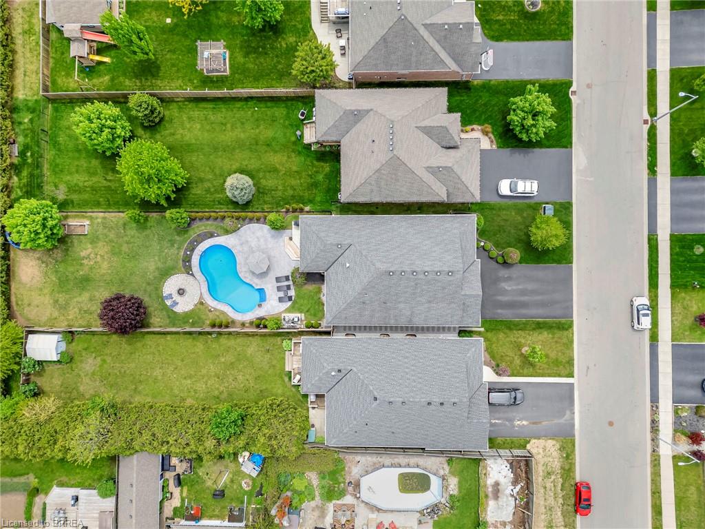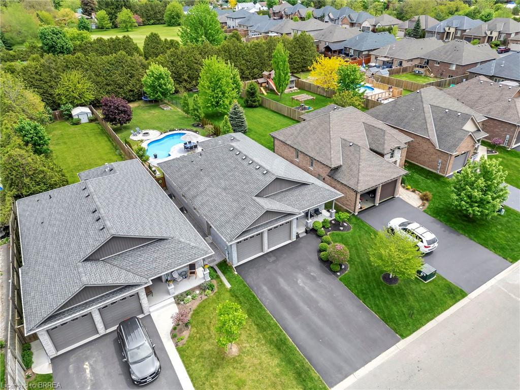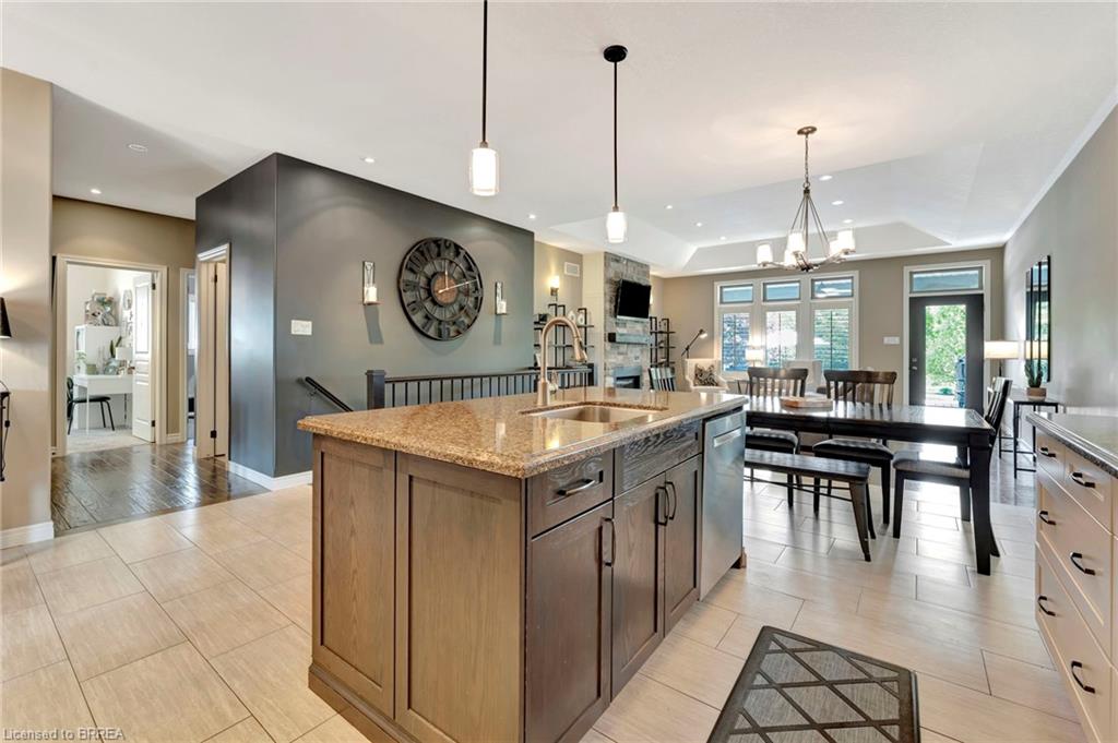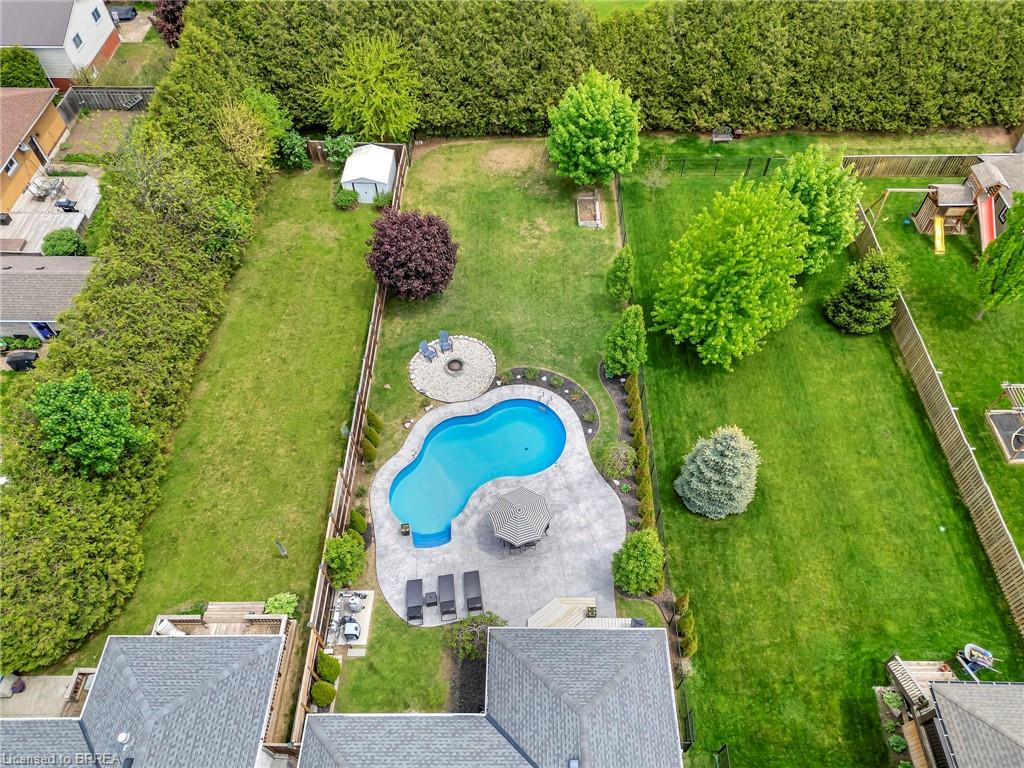 BACKYARD OASIS in WATERFORD! Welcome to 17 Lotus Ave — a stunning 3-bedroom, 2-bathroom bungalow on a large 48 x 225 ft private lot. Built by Spadafora Homes and offering 1,666 sq ft of stylish, open-concept living, this home is packed with upgrades and designed for both comfort and entertaining. Step inside the spacious foyer with soaring 9-ft ceilings and be greeted by a bright front music room or office space. The heart of the home features a large kitchen with quartz countertops, stainless steel appliances, and a generous dining area perfect for family gatherings. The cozy living room showcases a beautiful stone gas fireplace, tray ceiling, California shutters, and rich hardwood floors throughout. Retreat to the luxurious primary suite with dual closets and a spa-like 5-piece ensuite, complete with a walk-in shower and jetted soaker tub overlooking the backyard. Two additional bedrooms, a 4-piece bath, and main floor laundry offer ideal functionality. Outside is your dream backyard - a fully fenced, landscaped paradise featuring a custom saltwater inground pool (2021 by Paradise Pools), covered porch, and concrete patio—perfect for entertaining or quiet evenings under the stars. The double car garage and wide driveway provide ample parking and storage. Basement is a clean slate framed in with large egress windows for 2 more potential bedrooms, rough in bathroom, large rec room, and plenty of storage space! All of this in one of Waterford’s most desirable locations just steps from schools, trails, the Waterford Ponds, local shops, and restaurants. This home has it all! Don't wait and book your showing today to live the lifestyle you've been dreaming of!