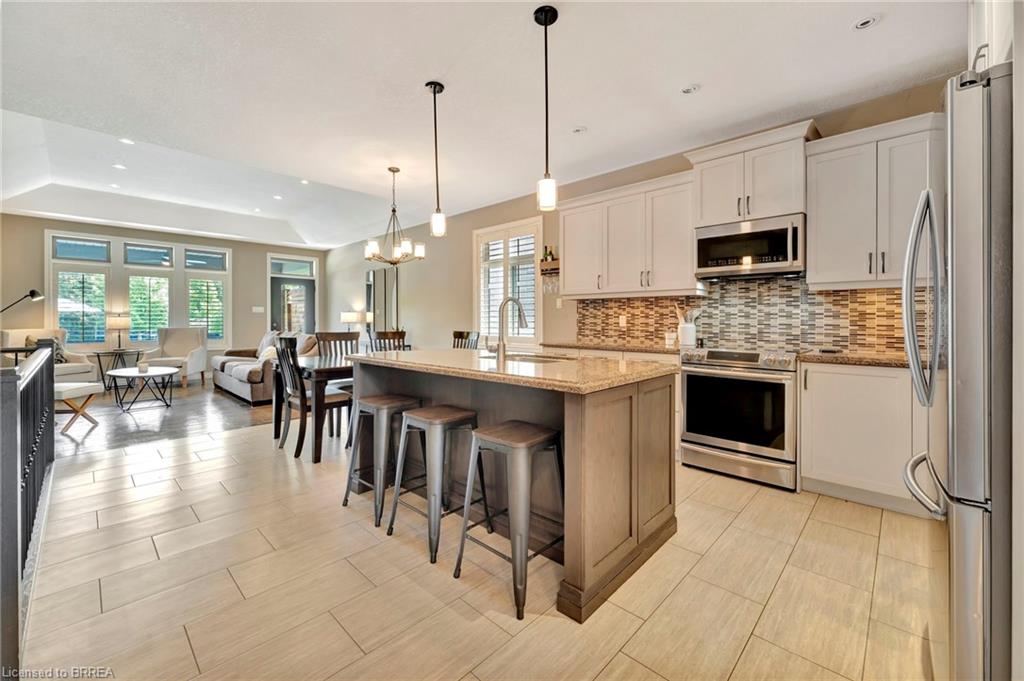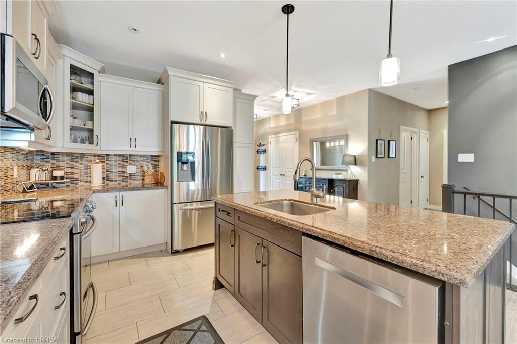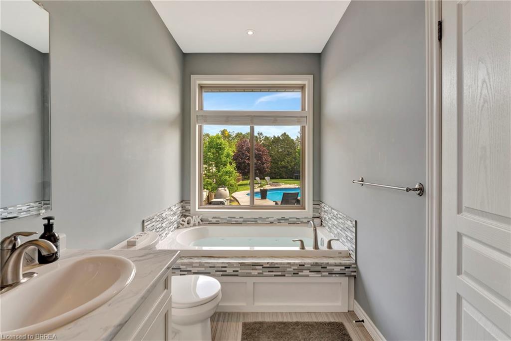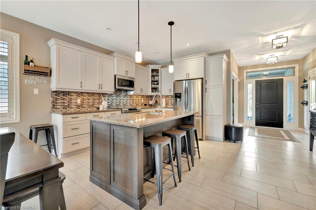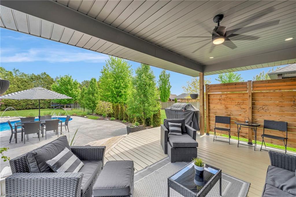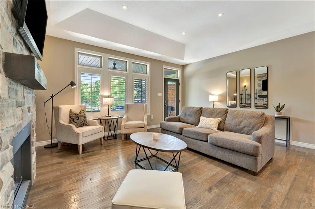 BACKYARD OASIS in WATERFORD! Welcome to 17 Lotus Ave — a stunning 3-bedroom, 2-bathroom bungalow on a large 48 x 225 ft private lot. Built by Spadafora Homes and offering 1,666 sq ft of stylish, open-concept living, this home is packed with upgrades and designed for both comfort and entertaining. Step inside the spacious foyer with soaring 9-ft ceilings and be greeted by a bright front music room or office space. The heart of the home features a large kitchen with quartz countertops, stainless steel appliances, and a generous dining area perfect for family gatherings. The cozy living room showcases a beautiful stone gas fireplace, tray ceiling, California shutters, and rich hardwood floors throughout. Retreat to the luxurious primary suite with dual closets and a spa-like 5-piece ensuite, complete with a walk-in shower and jetted soaker tub overlooking the backyard. Two additional bedrooms, a 4-piece bath, and main floor laundry offer ideal functionality. Outside is your dream backyard - a fully fenced, landscaped paradise featuring a custom saltwater inground pool (2021 by Paradise Pools), covered porch, and concrete patio—perfect for entertaining or quiet evenings under the stars. The double car garage and wide driveway provide ample parking and storage. Basement is a clean slate framed in with large egress windows for 2 more potential bedrooms, rough in bathroom, large rec room, and plenty of storage space! All of this in one of Waterford’s most desirable locations just steps from schools, trails, the Waterford Ponds, local shops, and restaurants. This home has it all! Don't wait and book your showing today to live the lifestyle you've been dreaming of!