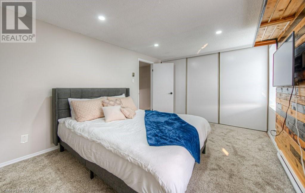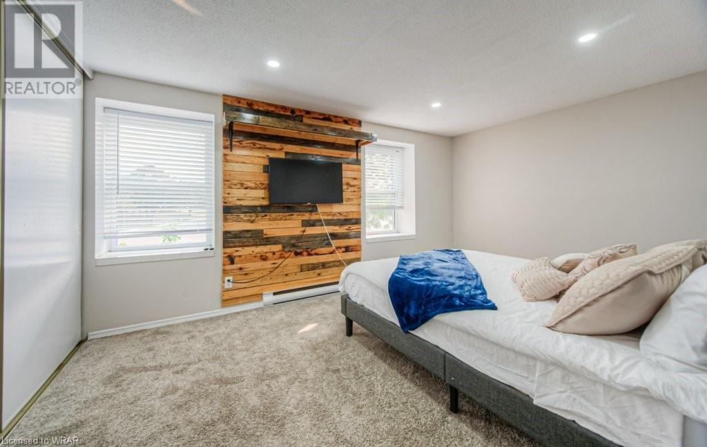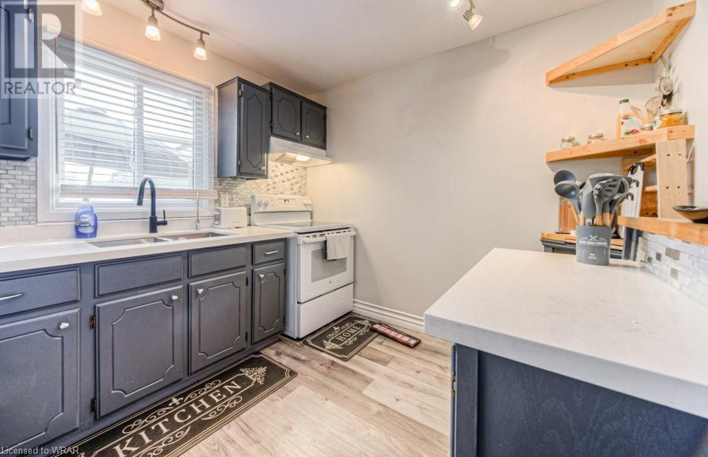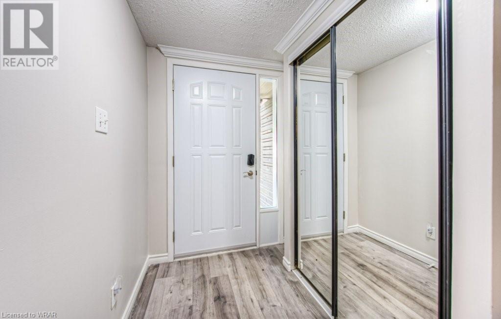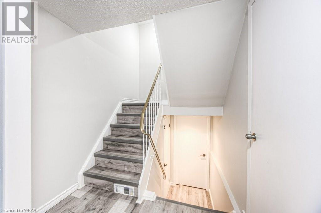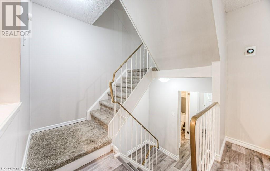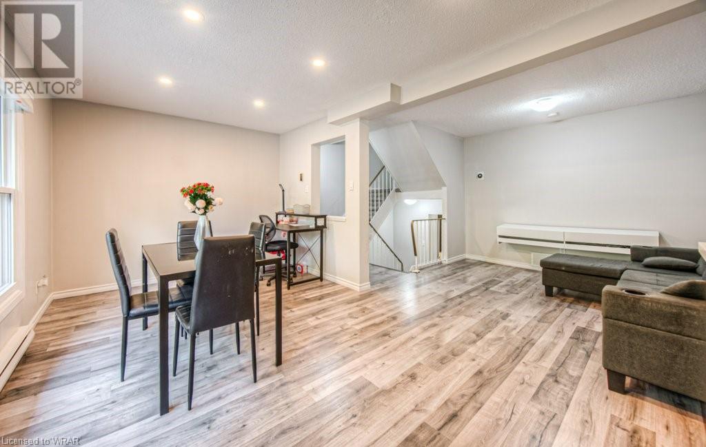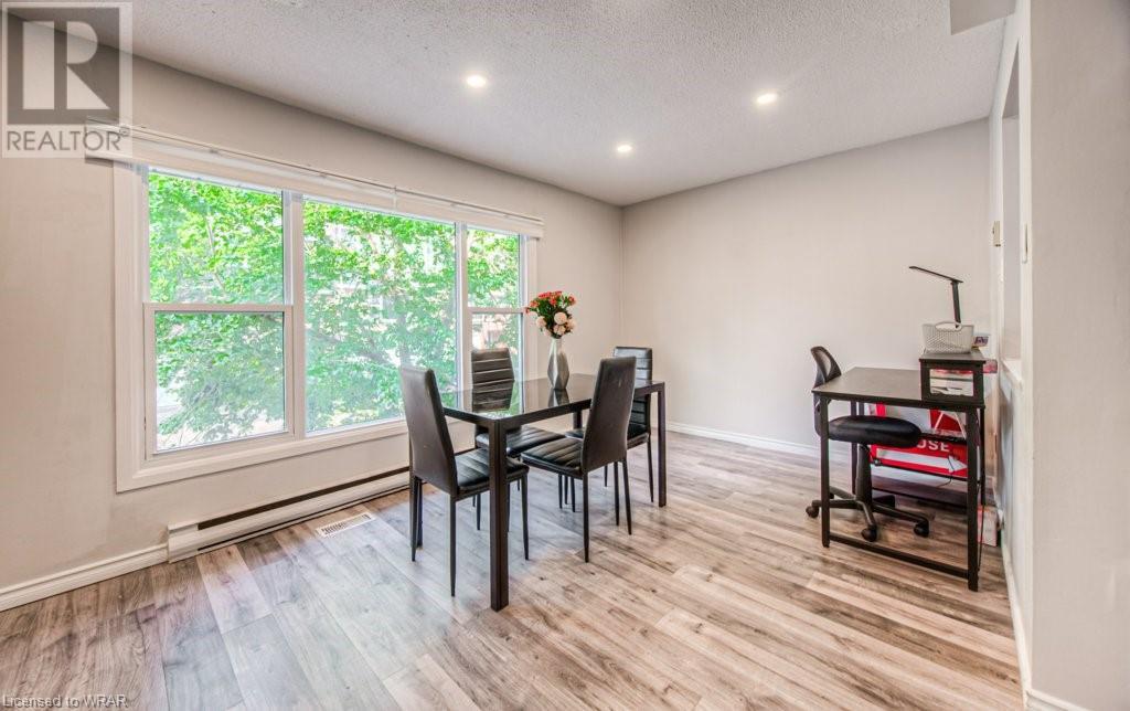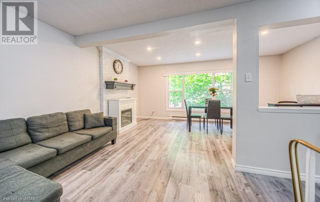 Welcome to this stunning and completely move-in ready 3 bedroom, townhouse condominium. Location is with easy access to the highway, shopping malls , and Uptown Waterloo! As you enter through the front door, you'll be impressed with the welcoming foyer with garage access, and immediately notice the meticulous care of this home, as seen throughout. You're going to love the big bright windows, with gorgeous and gleaming floors in the large livingroom/dining room area. The kitchen with new stove(2021) enjoys great light from the backyard where you can relax at the private patio and enjoy nature with family/friends. The convenient 2-pc powder room and extra storage space is the perfect way to round out this level. Next up is the stunning and oversized primary bedroom, with big sunny windows and great closet space. The updated 4-pc bath is spotless, and the 2 additional bedrooms are perfect for kids' rooms, an office space or a guest room! Modern decor, neutral fresh paint throughout, gorgeous floors, private patio, tons of storage space, and your own garage! That perfectly sums up this beautiful unit very ideal for first time home buyers or investors. Open house Saturday and Sunday 2:00pm-4:00pm. (id:22211)
