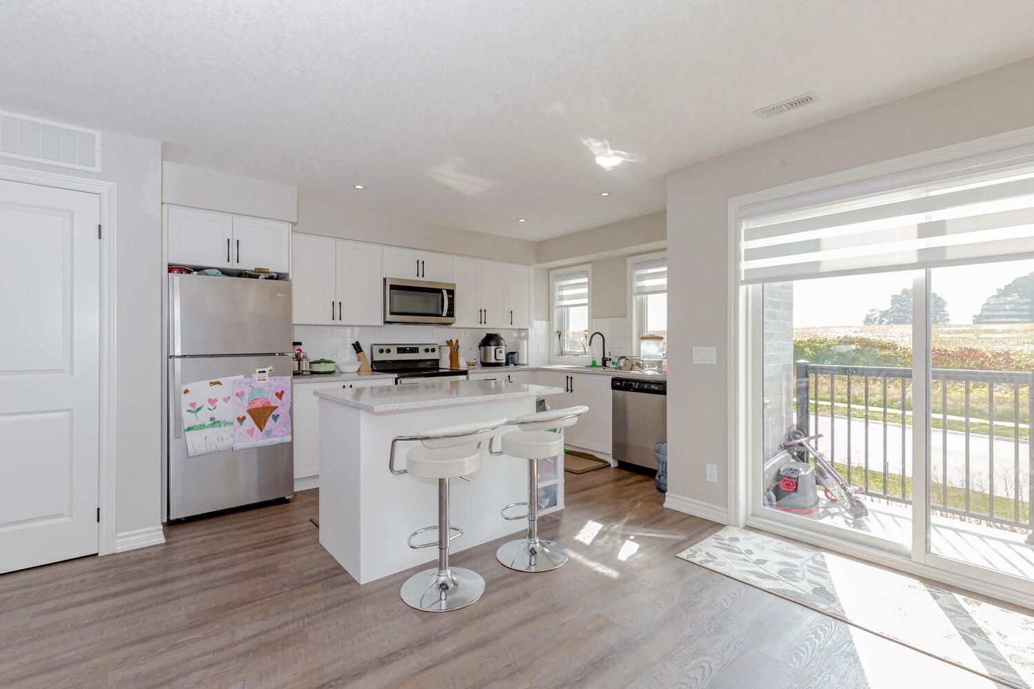 Newly built upper level stacked townhouse located in the highly desirable Doon South community with quick and convenient access to Hwy 401, Conestoga College, Shopping Centres and Scenic Trails. This 1450 Sqft home features High Efficiency Natural Gas Heating and Central Air Conditioning. Not to mention a desirable open-concept layout with 3 beds, 2.5 baths and owned surface parking. This Home Is Completely Covered Under The Transferable Tarion Home Warranty. Condominium Fee Includes Building Maintenance, Landscaping, Parking, Garbage Collection & Snow Removal.