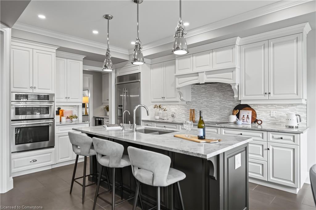 OPEN HOUSE-SAT JUNE 21ST, 2-4 PM: This is your Carriage Crossing dream home! Nestled in one of Waterloo’s most prestigious neighbourhoods, this stunning, custom-built luxury home is loaded w/ upgrades & designer finishes throughout. Offering over 4,700+ SF of beautifully finished living space & featuring 4+1 bdrms, & 4 baths, this home is truly one-of-a-kind. From the moment you enter the grand 2-storey foyer, you’ll be drawn in by the refined architecture, expansive sightlines, & timeless elegance. The formal dining rm sets the tone w/ custom millwork, tray ceiling, & crown moulding, while the heart of the home, the chef-inspired kitchen, is complete w/ lrg centre island, premium appliances, quartz counters, & a generous breakfast area w/ walkout to the deck & backyard. A walk-in pantry & servery/bar flow seamlessly to the dining area for effortless entertaining. The soaring 2-storey great rm impresses w/ flr-to-ceiling windows, & a statement gas fireplace. A main-floor office with future potential to convert to a bedrm, a 2-pce bath w/ space to expand to a full, & a custom mudroom w/ built-ins. Upstairs, the luxurious primary suite features custom millwork, an over-sized walk-in closet/dressing room w/ built-ins, & a spa-like ensuite w/ soaker tub, dbl vanity, & glass shower. 3 add’l bdrms, a 5-pce main bath, & an upper laundry rm complete the 2nd flr. The newly finished basement features a spacious rec rm w/ wet bar, 3-pce bathrm, home gym/office, & bedrm-an ideal guest suite/potential in-law/nanny suite. Premium finishes throughout incl. hrdwd & porcelain tile, designer lighting, pot lights, crown moulding & custom window treatments. Outside, enjoy incredible curb appeal w/ a stately façade, interlock drive, prof landscaping, & oversized south-facing fenced-in yard w/ composite deck, glass railings, & irrigation system. Walk to RIM Park, Grey Silo Golf Club, trails, parks & top schools. Mins to universities, area workplaces, market, shopping & quick HWY access.