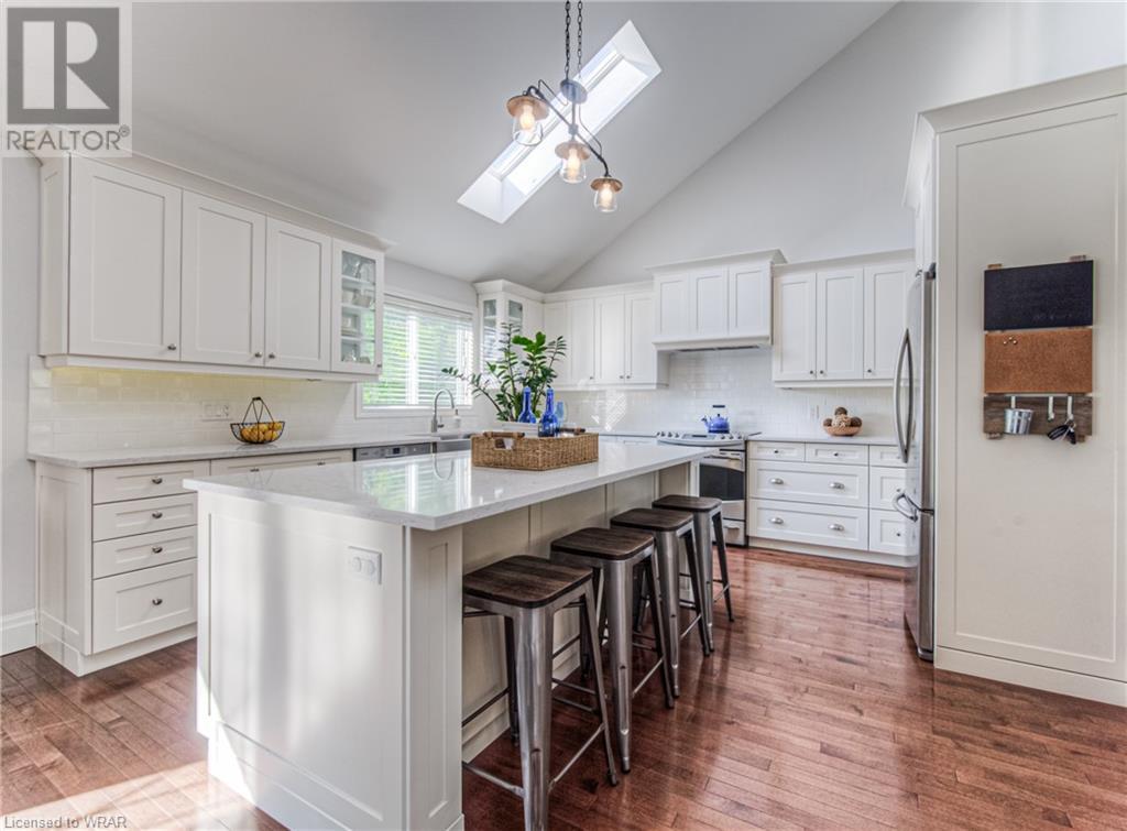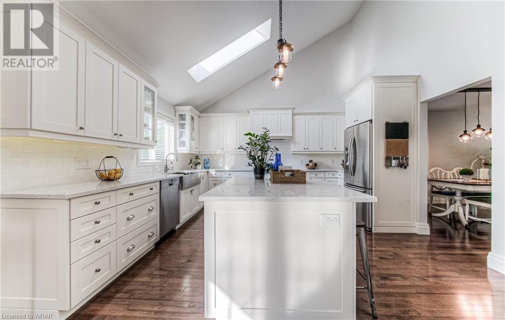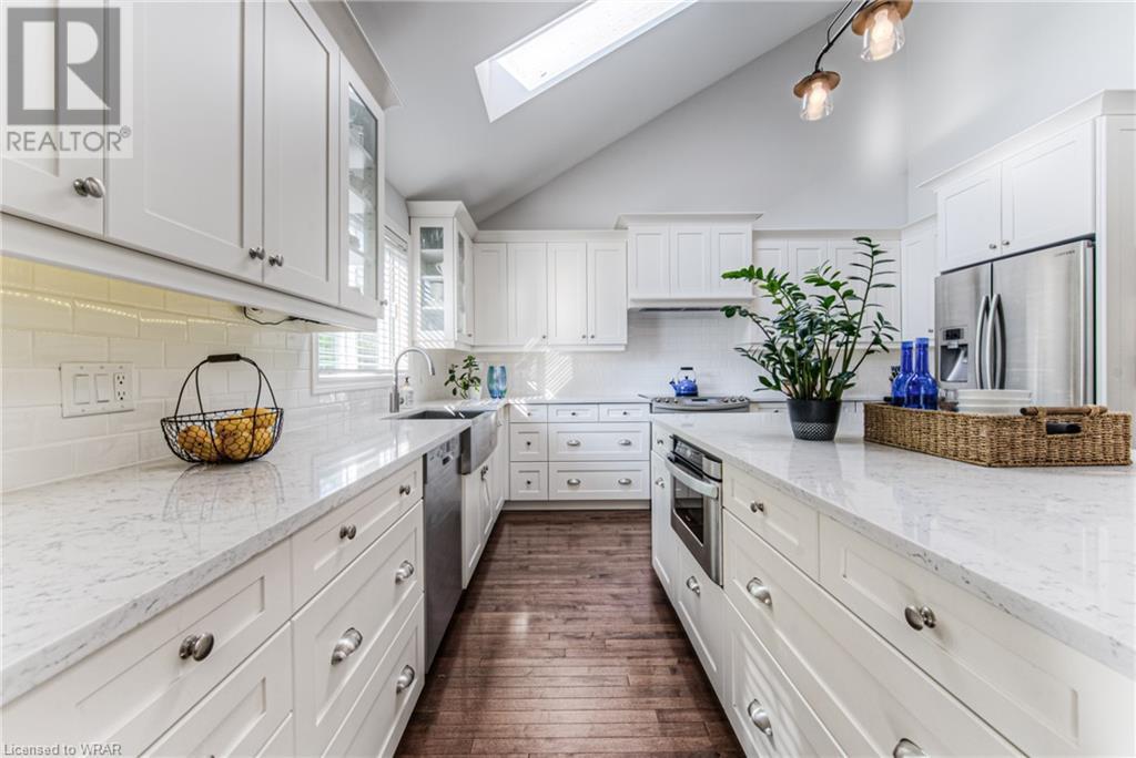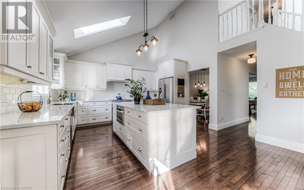 Located in Waterloo's Desirable Family-Friendly Neighborhood of Westvale! Welcome to 528 Westfield Drive! With almost 3,000 sqft of living space and walk out basement this fantastic open concept 4 bed 3 bath home is waiting for you. Curb appeal at its finest with the well maintained front yard and garden. The main floor is flooded with natural light and flows seamlessly from space to space offering breezy living. You will notice the beautiful hardwood floors throughout. The foyer leads into the living and dining area making this area perfect for hosting. A few steps further is the stunning updated high end kitchen featuring tons of cabinet space, island, stainless steel appliances, quartz countertops, chic subway tiled backsplash and skylight! The family room has a beautiful focal point with the gas fire place. Sliding doors from the living area lead you to the large deck that has stair access to the backyard. Completing the main floor is the laundry room and 2 piece bath. The upper level features a massive primary retreat with enormous walk in closet, and 4 piece ensuite. 2 other generously sized bedrooms and 4 piece family bath complete this level. The Lower level has that WOW factor with fully finished rec room laminate flooring and walk out to the back yard. Steps away from Waterloo Medical Centre, the Boardwalk shopping plaza with lots of restaurants and a variety of stores. Easy access to the highway, bus stops, steps away from school, and parks. Book your showing Today! (id:22211)