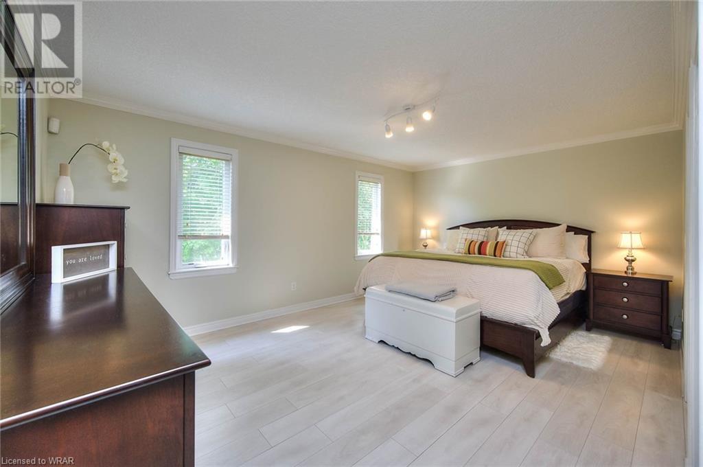 Beautiful, bright and spacious all brick bungalow situated on a lovely, private, mature property in North Waterloo adjacent to Laurel Creek Conservation area! This highly sought after all bungalow court is surrounded by parks, forest, walking trails and a lake with recreational facilities. This professionally maintained 4 bedroom 3 bath with ensuite, and walk in closet home is open concept with vaulted ceilings. The spacious sunny eat in kitchen with island, quartz counter tops and an abundance of cabinets opens up to a deck and BBQ area. The many recent upgrades include: newer roof, garage door, water softener , toilets, bathroom vanity and custom designed all glass entrance way. Carpet free main floor. A bright and inviting living, home office & bedroom area on lower level is complimented by a walkout allowing for multi generational families to enjoy this amazing home to its fullest potential. Gas and electric fireplaces, beautiful porch and backyard patio both with landscaped views, ac, jetted tub and so much more add to the charm of this amazing home. Backyard is a 'naturalization' area with maintenance free ground cover started this spring and will be full coverage by next spring. Close to many amenities including shopping mall, bus routes, groceries, schools, market, universities, restaurants, and much more. Roof 2019 with 50 year timberline shingles. (id:22211)