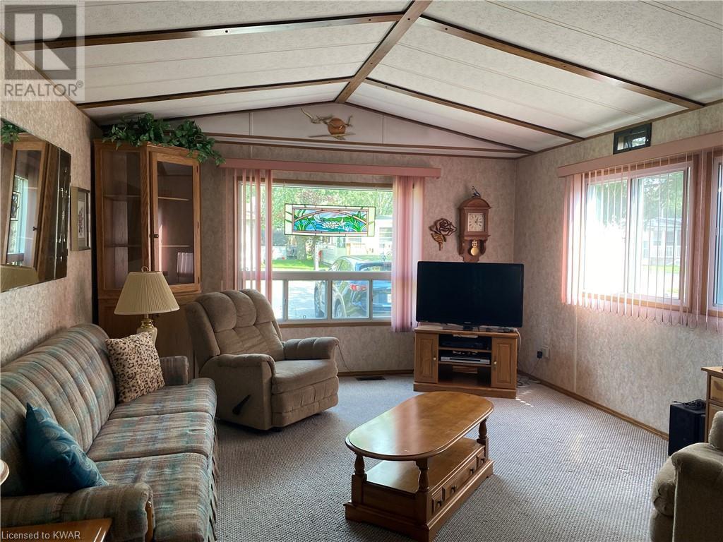 Welcome to Green Acres Park- Your home away from home! Located in North Waterloo and backing onto the Laurel Creek Conservation Area, this park is highly sought after and offers so many amenities. Enjoy the swimming pool, hot tubs, playground, gardens, outdoor games, indoor games, catch and release fishing pond and so many activities! This fantastic modular bungalow home offers one floor of living space, which makes transitioning from space to space a breeze. The two bedrooms are ample space for you and your guests and within such great proximity to local shopping, farmers ,market and recreation in Waterloo, you will never tire of things to do! This seasonal park (10 months) is incredibly well managed and maintained- come see for yourself and start planning your home away from home! (id:22211)