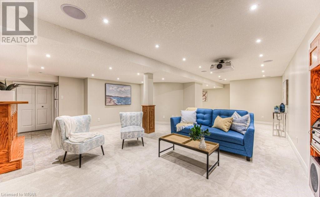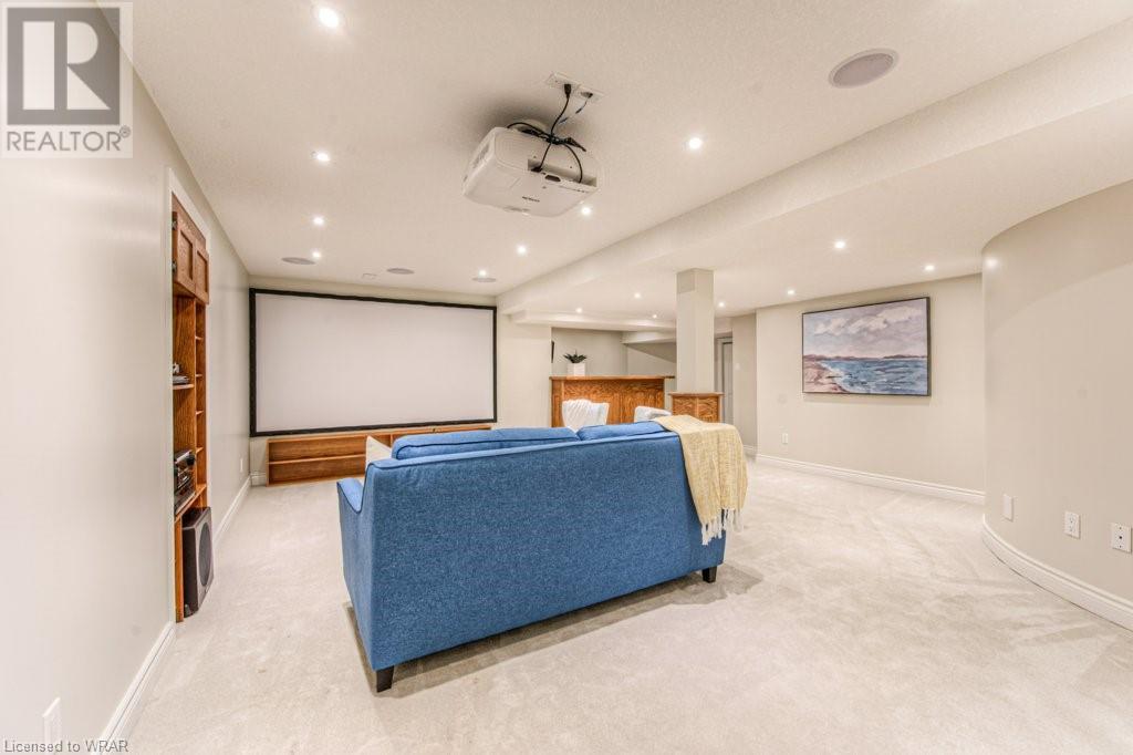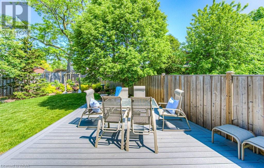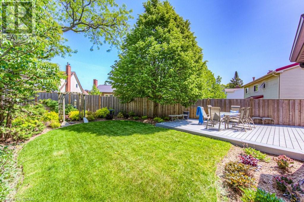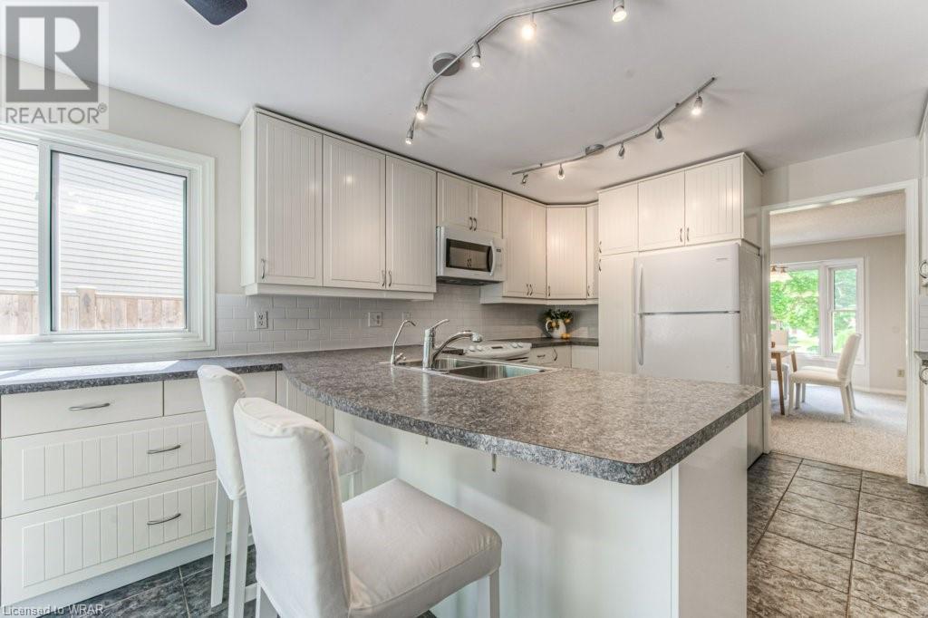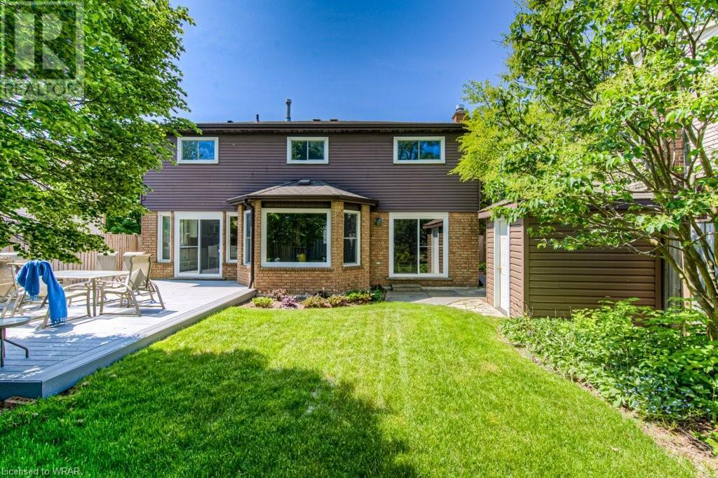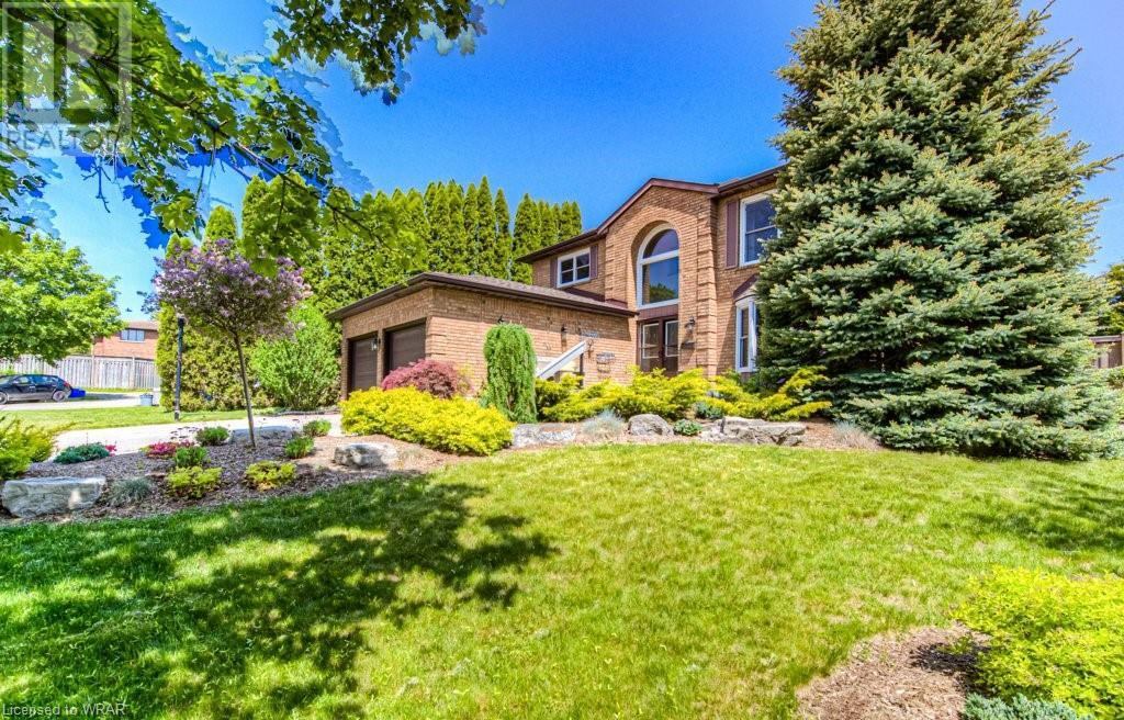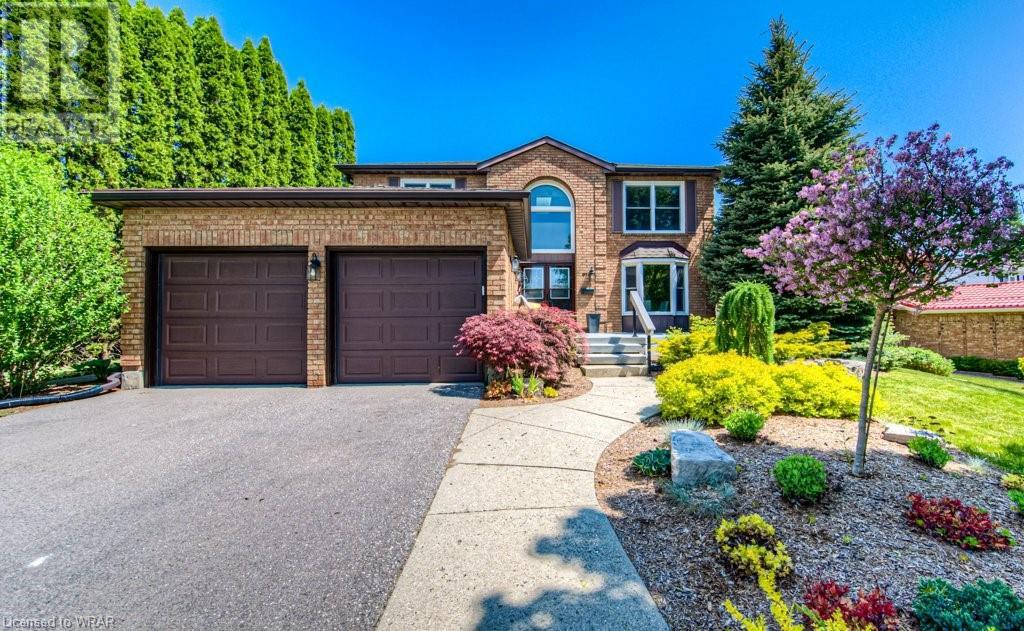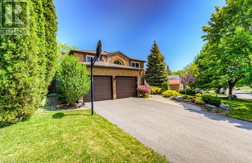Westvale Family Home! This 2,484 square foot 4 bedroom home sits on a quiet crescent in a family friendly Waterloo neighbourhood. Incredible natural light abounds as you walk in to the main foyer with a circular staircase and tile entrance. The main floor layouts boasts a family room with gas fireplace, formal dining room, sunken living/great room with hardwood floors, main floor laundry, and a spacious eat in kitchen with tile floor, breakfast bar and sliders out to your composite deck and fenced backyard. Plenty of room upstairs with a large primary bedroom and renovated ensuite bath with Italian porcelain tile, rain shower head and more! Downstairs you'll find the newly updated rec room with an incredible home theatre set up including 4K projector and static screen. Have a drink or sit and visit with friends at your home bar! Plenty of storage in the basement. Other features include a gas line to BBQ, backyard storage shed, parking for 4 cars in the driveway (plus 2 in the garage), and updated garage doors. (id:22211)