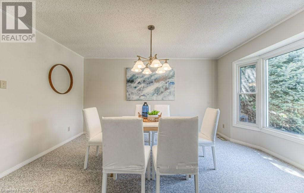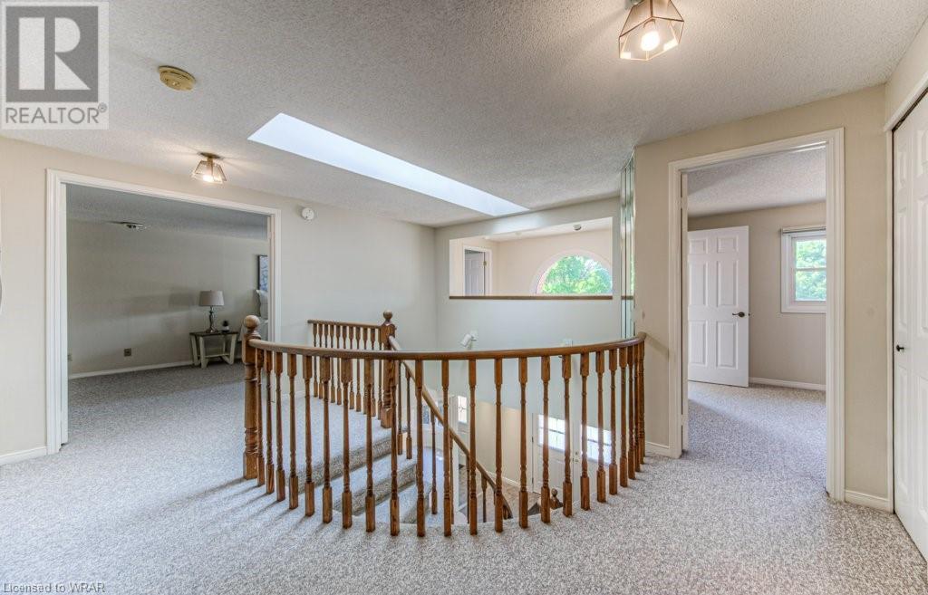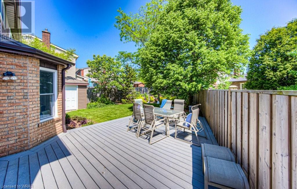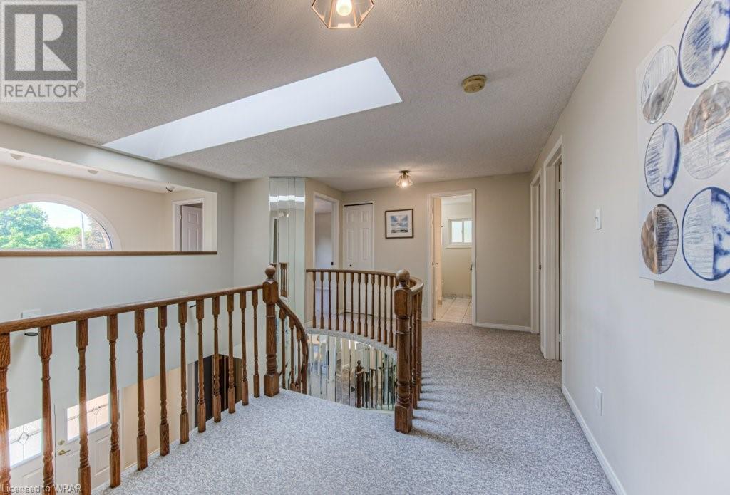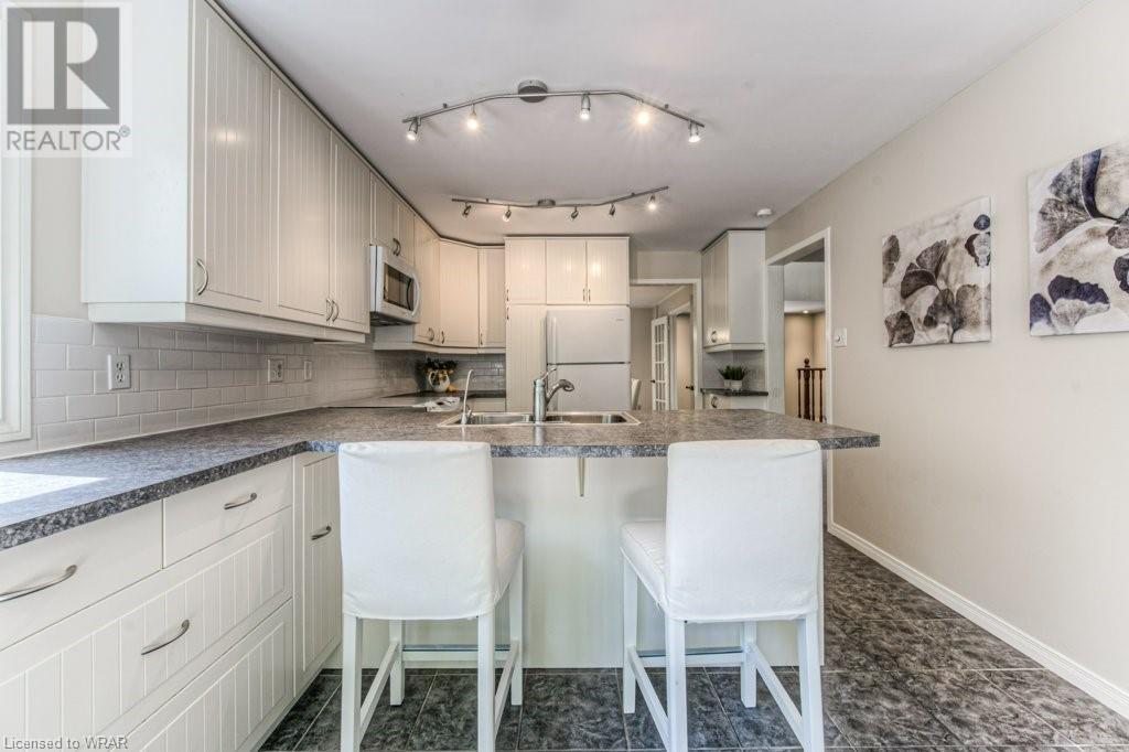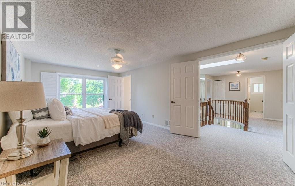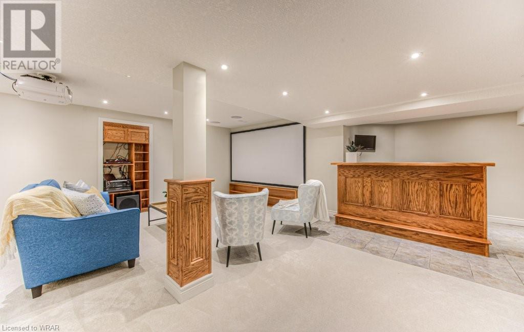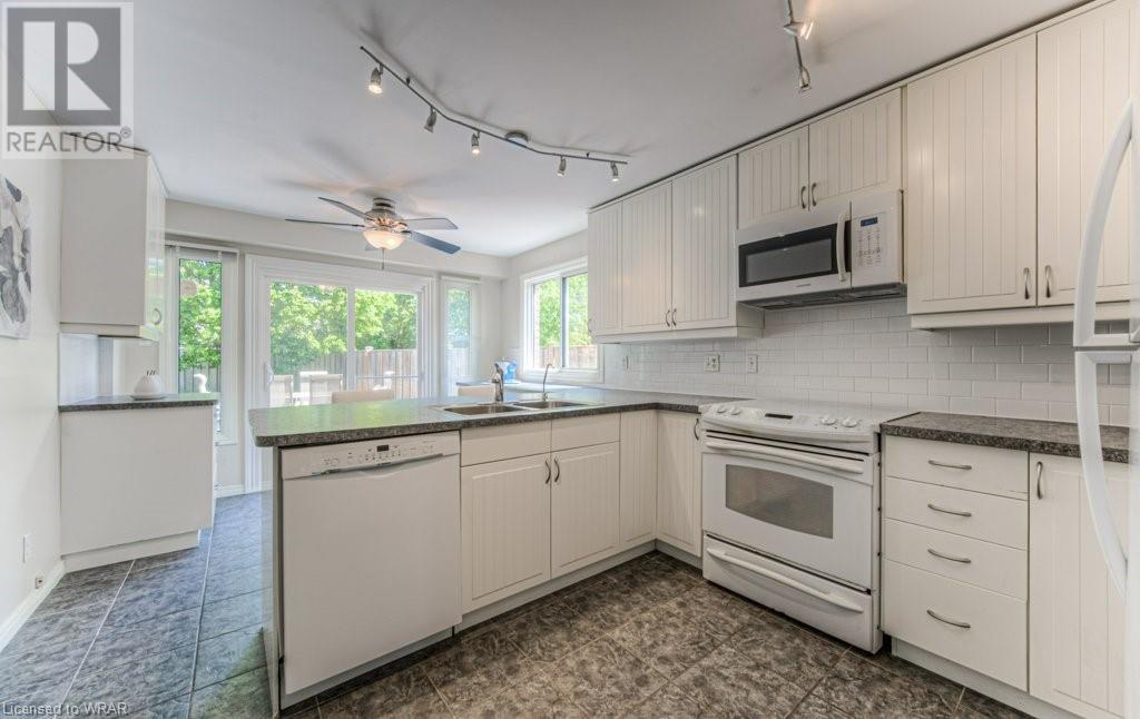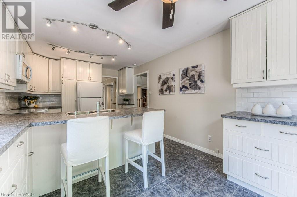 Westvale Family Home! This 2,484 square foot 4 bedroom home sits on a quiet crescent in a family friendly Waterloo neighbourhood. Incredible natural light abounds as you walk in to the main foyer with a circular staircase and tile entrance. The main floor layouts boasts a family room with gas fireplace, formal dining room, sunken living/great room with hardwood floors, main floor laundry, and a spacious eat in kitchen with tile floor, breakfast bar and sliders out to your composite deck and fenced backyard. Plenty of room upstairs with a large primary bedroom and renovated ensuite bath with Italian porcelain tile, rain shower head and more! Downstairs you'll find the newly updated rec room with an incredible home theatre set up including 4K projector and static screen. Have a drink or sit and visit with friends at your home bar! Plenty of storage in the basement. Other features include a gas line to BBQ, backyard storage shed, parking for 4 cars in the driveway (plus 2 in the garage), and updated garage doors. (id:22211)